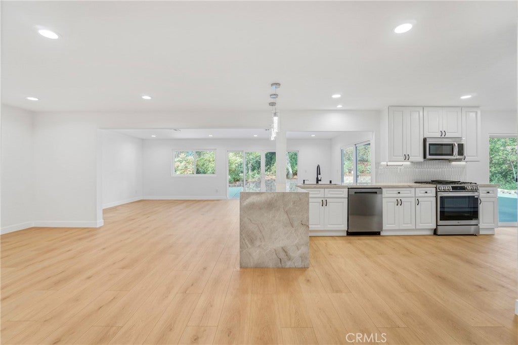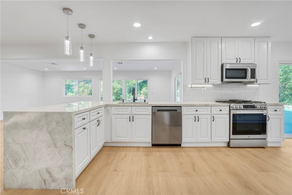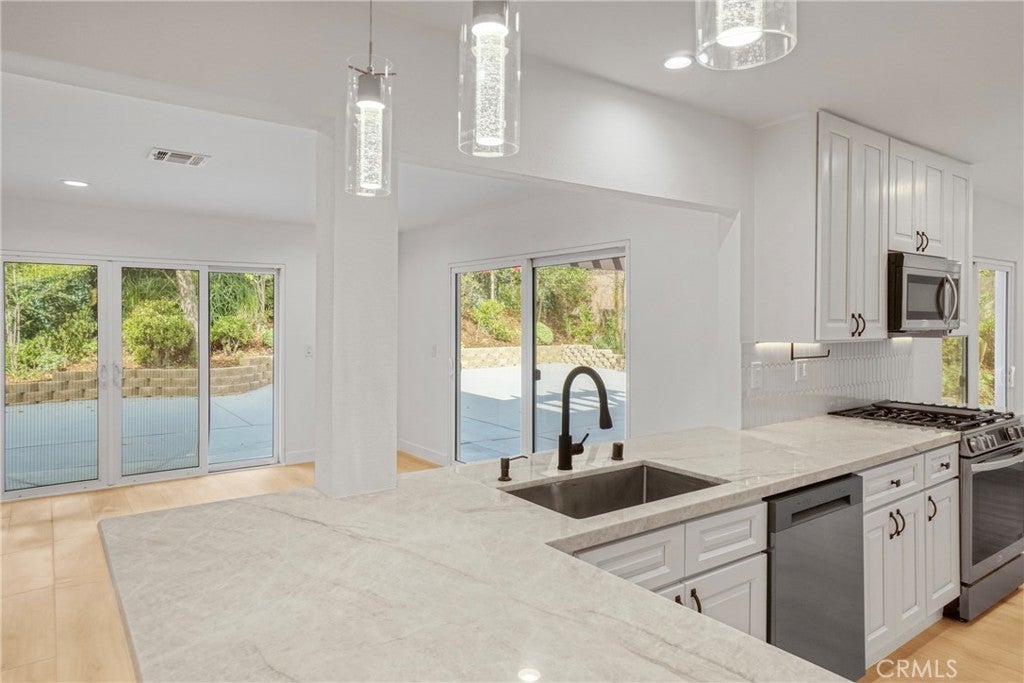 Move-in ready and fully renovated with an open floor plan and nearly 2,800 sq ft of thoughtfully redesigned living space, this Agoura Hills home offers exceptional flexibility for today’s lifestyle. A highly desirable first-floor bedroom with its own full bathroom provides ideal convenience for guests, multi-generational living, or a private office setup. Located in a quiet, established neighborhood near top-rated schools, the home combines modern upgrades with everyday functionality and long-term value. High ceilings and abundant natural light create a bright, inviting atmosphere throughout. The upgraded kitchen with contemporary finishes and premium appliances flows seamlessly into spacious living and dining areas designed for entertaining. Upstairs, the generous primary suite offers a private retreat with a remodeled bath, while additional bedrooms provide versatility for family or creative space. The landscaped yard creates a serene outdoor living setting perfect for gatherings or quiet evenings at home. Close to parks, hiking trails, shopping, and award-winning schools, this turnkey property presents a rare opportunity in one of Agoura Hills most desirable communities.