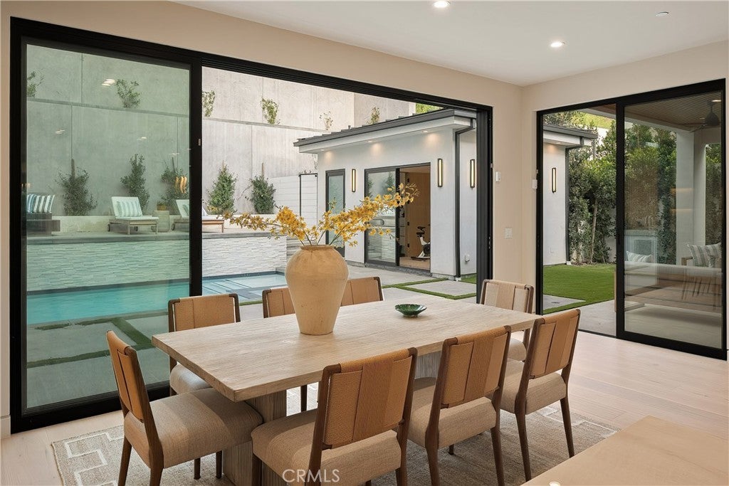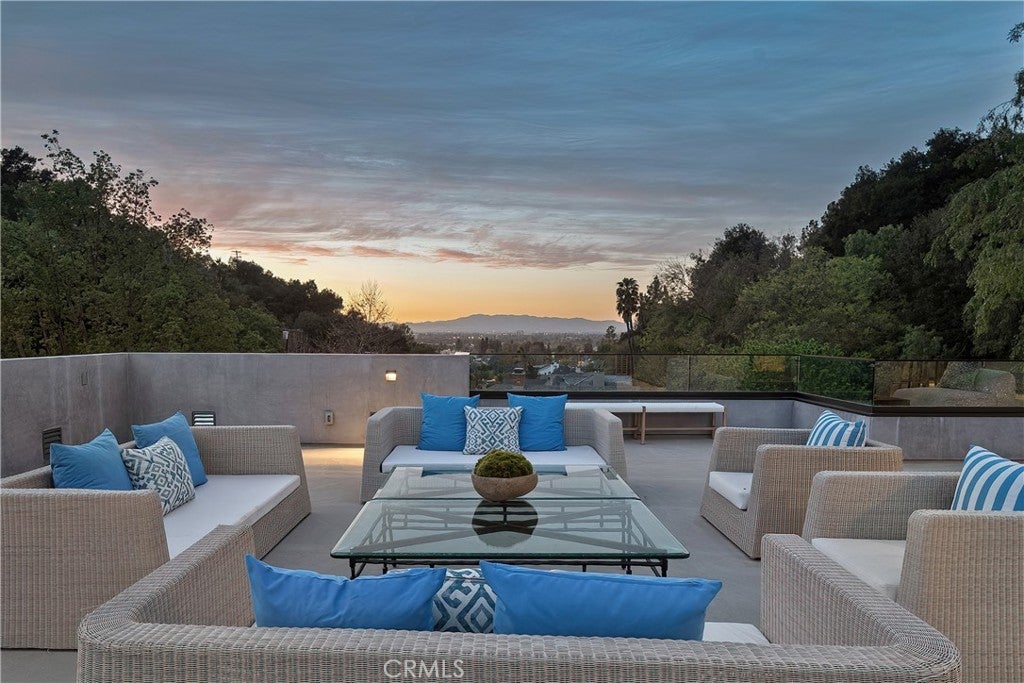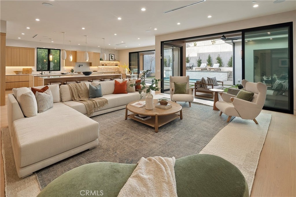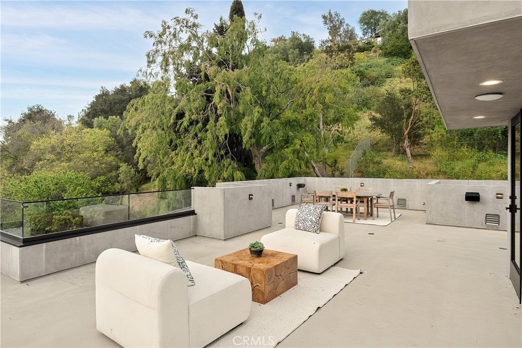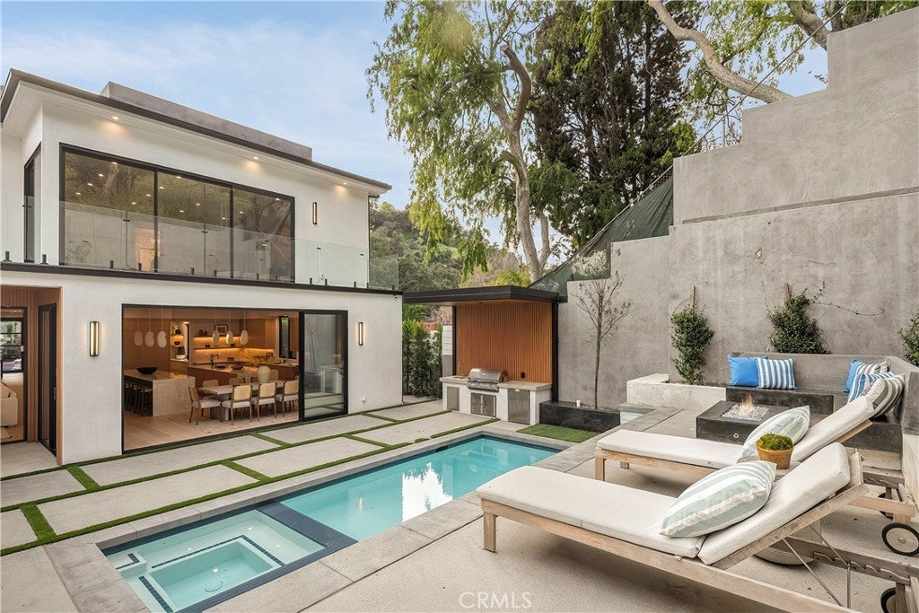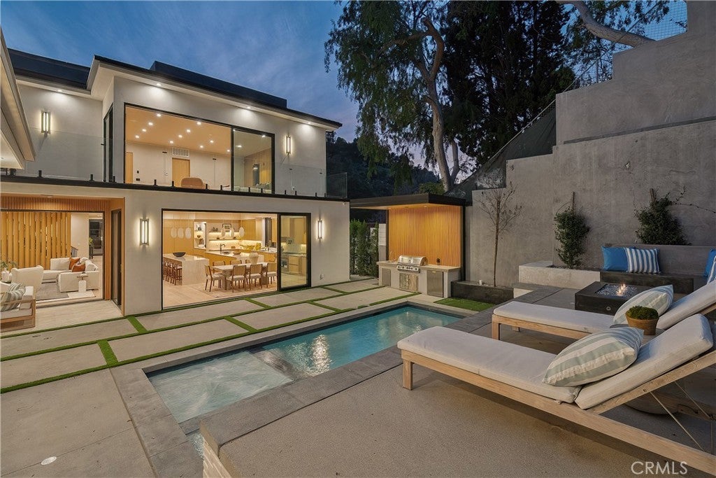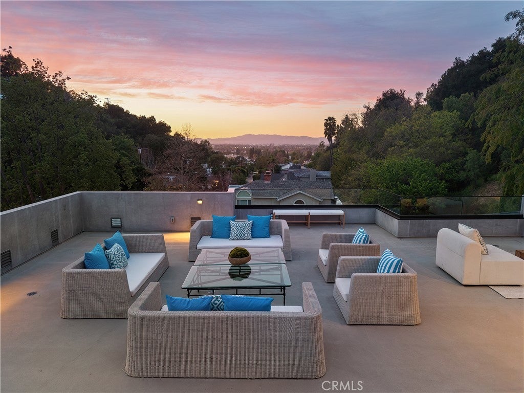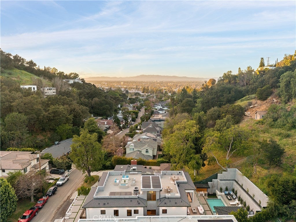 Tucked away on a quiet cul-de-sac in the hills of Studio City, this newly constructed estate boasts a detached guest house and expansive rooftop patio with dramatic views of the Valley. Designed for modern living, the bright and airy open-concept floor plan is accentuated by lofty ceilings and wide-plank white oak floors that flow seamlessly throughout. At the heart of the home, a chef’s kitchen impresses with top-of-the-line Thermador appliances, two oversized waterfall islands, a sun drenched breakfast nook and butler’s pantry complemented by a separate walk-in pantry. The adjoining family room is flooded with natural light from the oversized sliding glass doors that open to create a seamless indoor-outdoor living experience. Designed for year-round entertaining, the backyard feels like a private resort. The space is highlighted by a sparkling pool and spa, fully equipped outdoor kitchen and covered lounge area. Completing the main level is a spacious formal living and dining room, ensuite bedroom, chic powder bathroom and direct access to the two-car garage. Upstairs, there's a dedicated laundry room and five generously sized ensuite bedrooms, including an expansive primary suite that features a private balcony, dual walk-in closets and a sumptuous bathroom, complete with a soaking tub, oversized rainfall shower, double vanity and smart toilet. Crowning the residence is a 1,700+ sq. ft. rooftop patio with its own outdoor kitchen and views that will take your breath away. A detached guest house with a full bathroom offers a versatile space perfect for guests, multigenerational living, a home office, gym or studio. Additional features include a state-of-the-art smart home and security system, built-in speakers, smooth Venetian plaster walls and extensive custom woodwork. This prime South of the Boulevard location is within the coveted Dixie Canyon School District, walking distance from Harvard-Westlake and the Sportsman's Lodge. Residents also enjoy easy access to Fryman Canyon’s hiking trails, trendy restaurants, boutique shops and so much more.