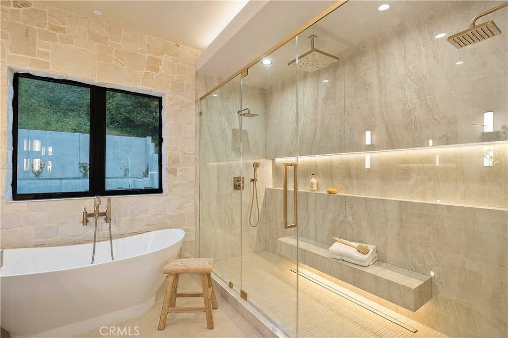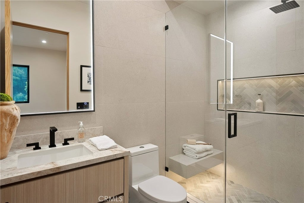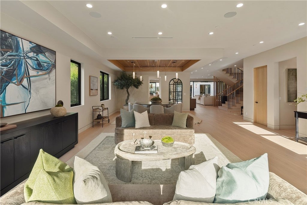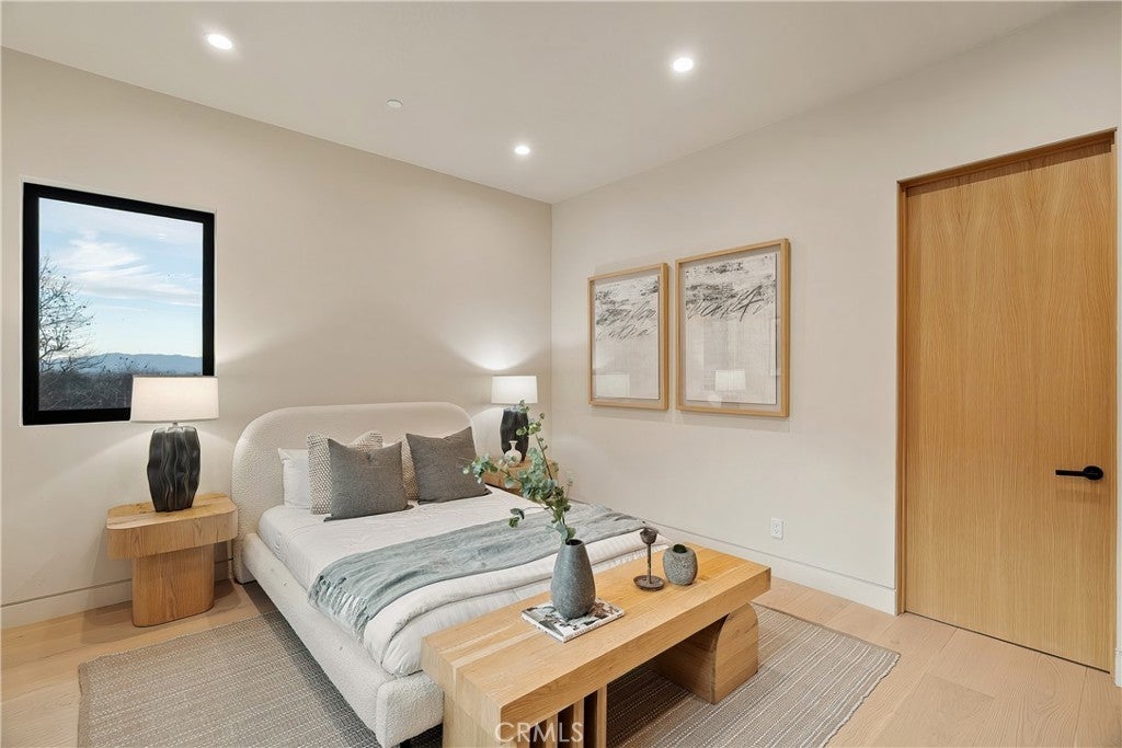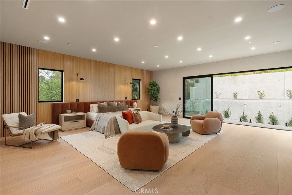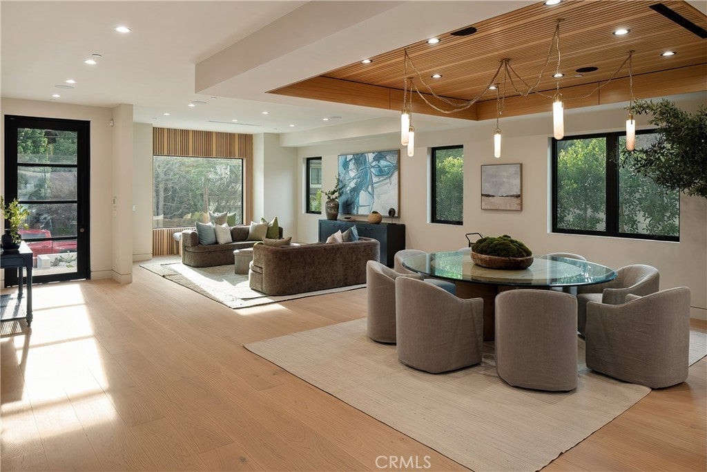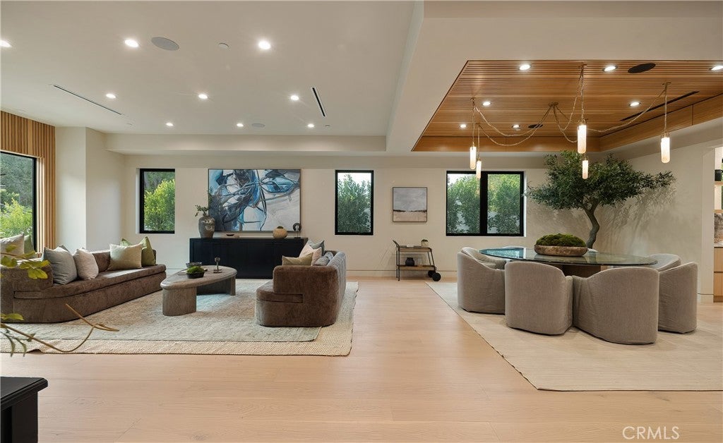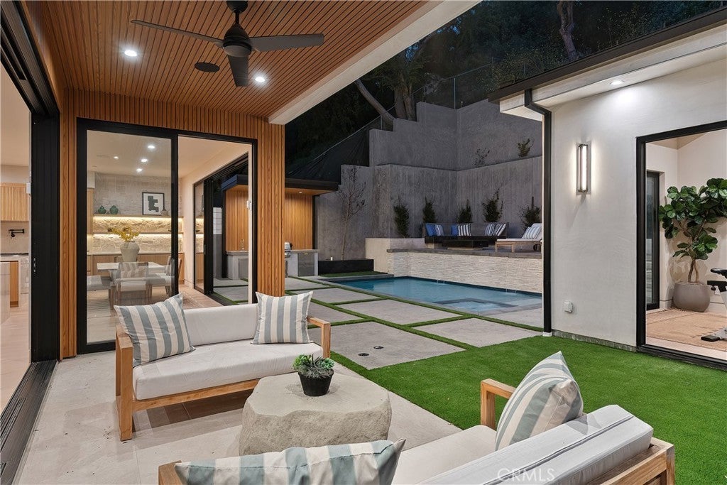 Tucked away on a quiet cul-de-sac in the hills of Studio City, this newly constructed estate boasts a detached guest house and expansive rooftop patio with dramatic views of the Valley. Designed for modern living, the bright and airy open-concept floor plan is accentuated by lofty ceilings and wide-plank white oak floors that flow seamlessly throughout. At the heart of the home, a chef’s kitchen impresses with top-of-the-line Thermador appliances, two oversized waterfall islands, a sun drenched breakfast nook and butler’s pantry complemented by a separate walk-in pantry. The adjoining family room is flooded with natural light from the oversized sliding glass doors that open to create a seamless indoor-outdoor living experience. Designed for year-round entertaining, the backyard feels like a private resort. The space is highlighted by a sparkling pool and spa, fully equipped outdoor kitchen and covered lounge area. Completing the main level is a spacious formal living and dining room, ensuite bedroom, chic powder bathroom and direct access to the two-car garage. Upstairs, there's a dedicated laundry room and five generously sized ensuite bedrooms, including an expansive primary suite that features a private balcony, dual walk-in closets and a sumptuous bathroom, complete with a soaking tub, oversized rainfall shower, double vanity and smart toilet. Crowning the residence is a 1,700+ sq. ft. rooftop patio with its own outdoor kitchen and views that will take your breath away. A detached guest house with a full bathroom offers a versatile space perfect for guests, multigenerational living, a home office, gym or studio. Additional features include a state-of-the-art smart home and security system, built-in speakers, smooth Venetian plaster walls and extensive custom woodwork. This prime South of the Boulevard location is within the coveted Dixie Canyon School District, walking distance from Harvard-Westlake and the Sportsman's Lodge. Residents also enjoy easy access to Fryman Canyon’s hiking trails, trendy restaurants, boutique shops and so much more.