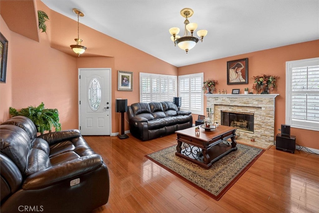 Enjoy peaceful Stevenson Ranch living with a charming Single-family home in a cul-de-sac with 3 bedrooms plus flexible 4th room ( perfect for an extra bedroom, office or home gym), 2 updated bathrooms hardwood floors through out this beautiful home and carpets in bedrooms. . The open kitchen has granite counters with stainless appliances and center island, plenty cabinets and a dining area. There is Plantation shutters , ceiling fans , Recess lights cozy fireplace in the living room . Down the hall you have the Laundry room that provides access direct to the garage and the extra room . The master bedroom has direct access to the back yard has a spacious walk in closet. Stunning backyard oasis featuring a covered porche, mature trees and a natural hillside for ultimate privacy. Low HOA fees , close to parks and Valencia amenities ideal for family or entertainment.