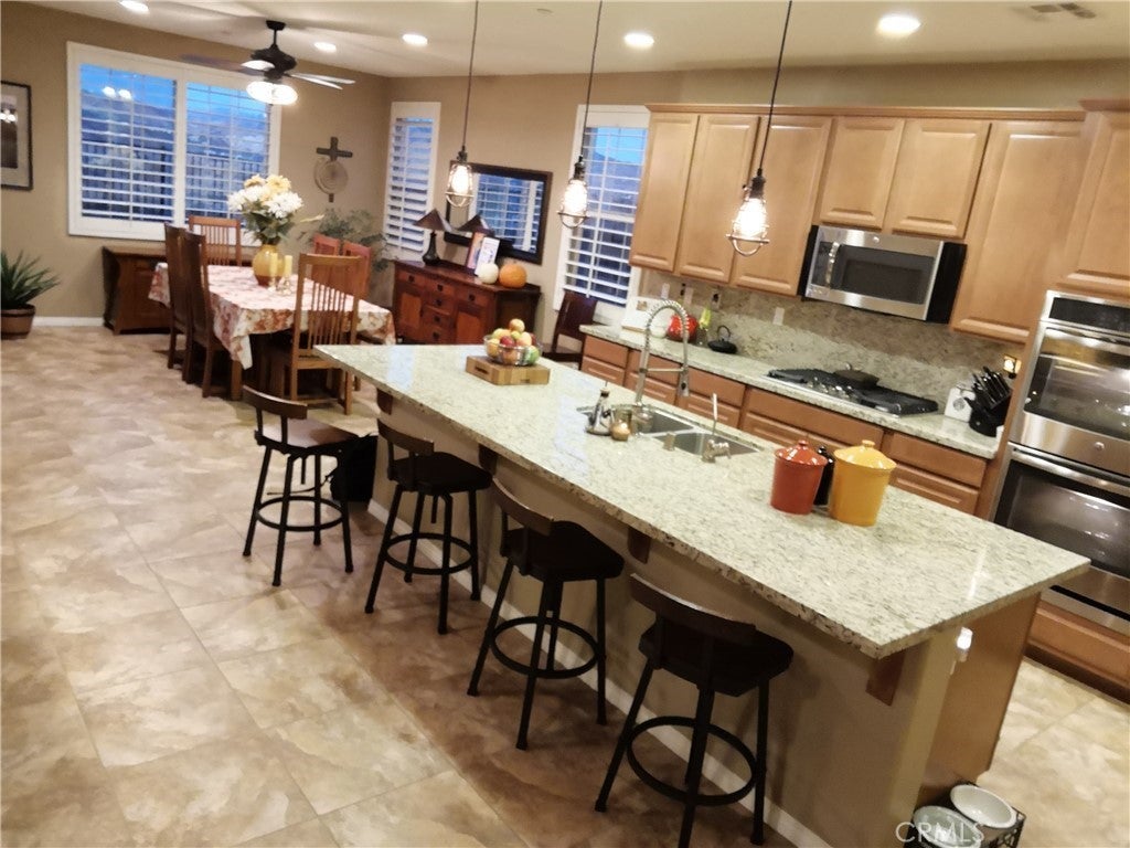 The most magnificent view home in all of Valencia's West Hills neighborhood. This 4-bedroom, 3-bathroom home has a large loft with room for an office, family room, master bedroom with walk-in closet, impressive entry with a 20-foot ceiling, a HUGE covered patio, and an amazing back yard that is perfect for outdoor living. This home has been beautifully upgraded. Upgrades include gorgeous designer tile on the ground floor, stack stone entryway, upgraded wood flooring on the top floor, energy-efficient ceiling fans, window coverings, high-end light fixtures throughout, gorgeous views. Leased Solar panels for money and energy savings. The backyard is perfect for catching Valencia’s 4th of July fireworks, mature landscaping. This home is a short walk to the prestigious West Creek Academy in a gated community with paseos, 3 swimming pools, and a new playground.