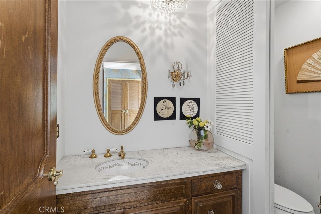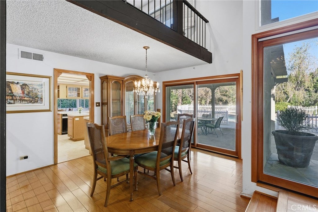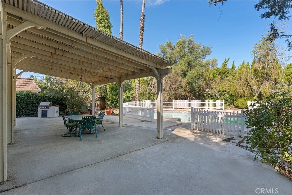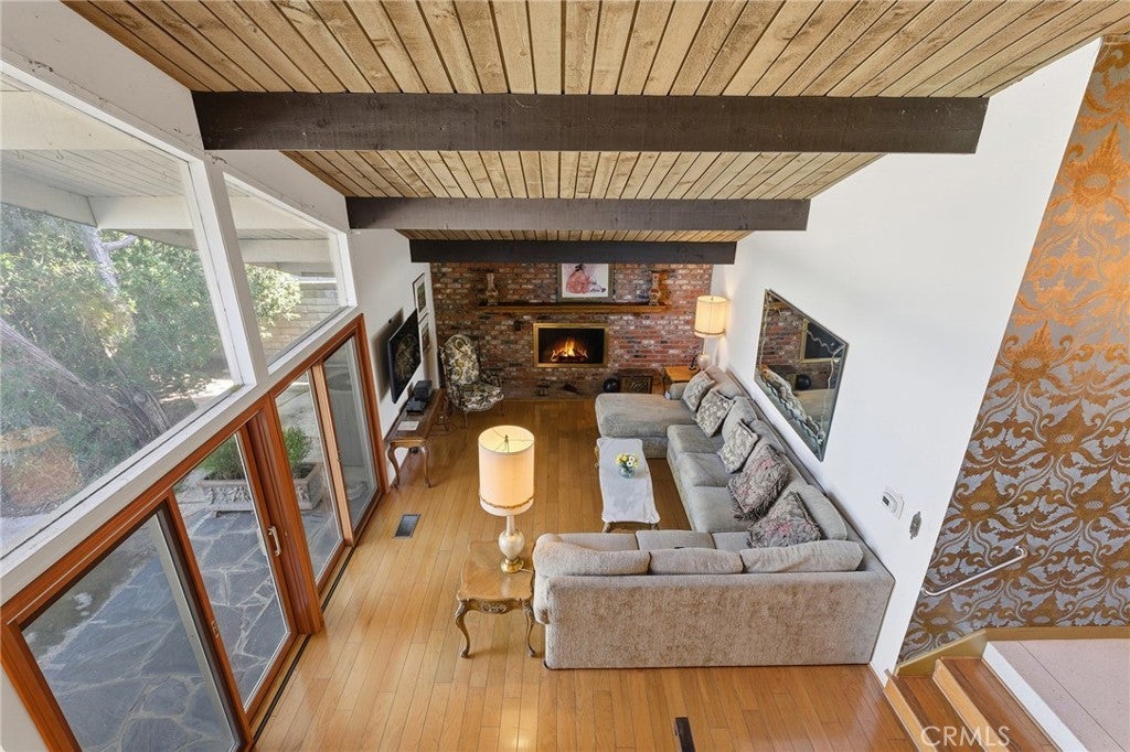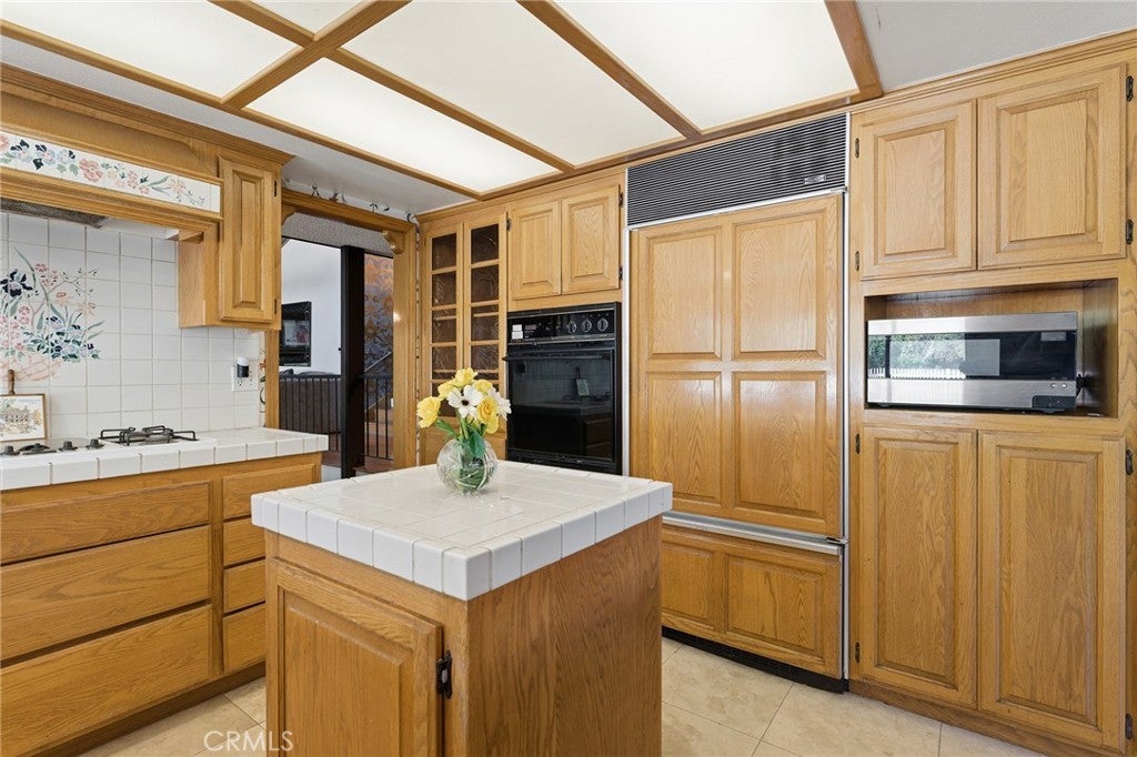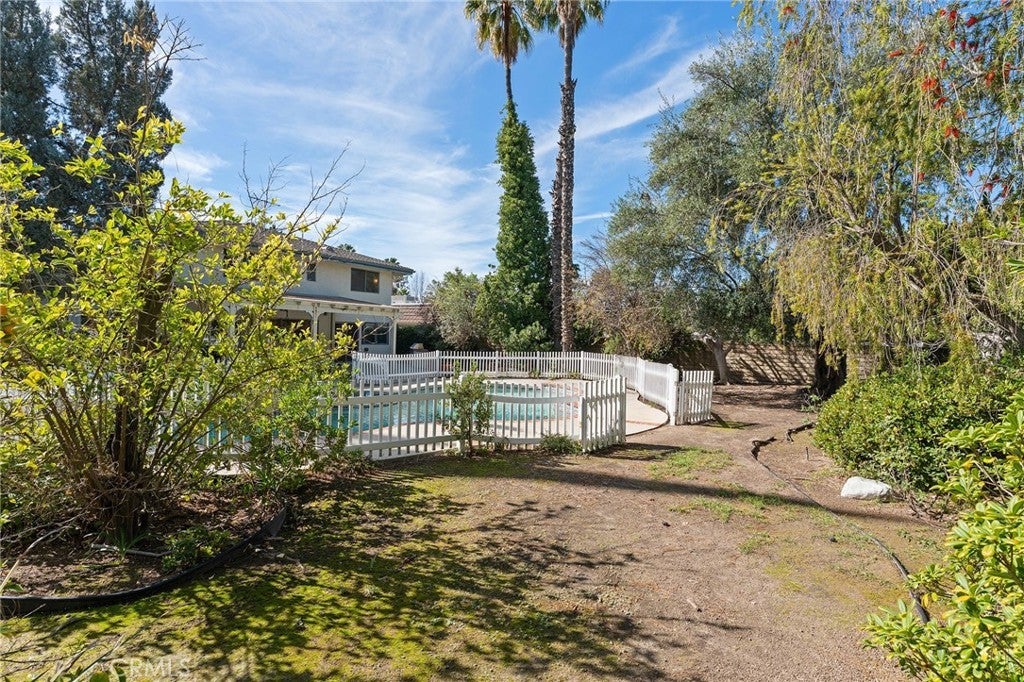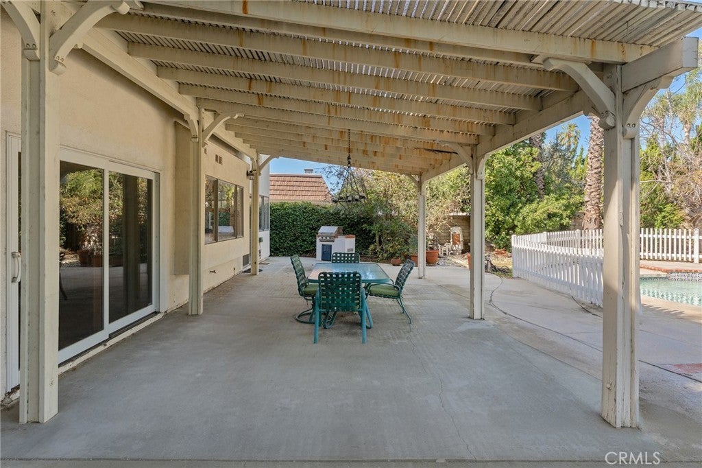 Incredible opportunity to purchase a Mid-Century timepiece offered on the market for the first time in almost 50 years. Located on a quiet cul-de-sac West of Valley Circle, the sprawling property sits on an impressive 11,000+ SF flat lot, with one of the largest usable backyards in the neighborhood. Wide frontage is adorned with mature trees, lush landscaping, and driveway that leads to a 3-car attached garage. A tiled covered front porch with original double front doors opens to a grand entry foyer with original terrazzo tiled flooring, coat closet, and guest powder bathroom. The formal living room boasts gorgeous vaulted wood beamed tongue and groove ceilings, brick fireplace, and two sets of Pella glass sliders that open to the backyard. The formal dining room has direct kitchen access and another glass slider that opens to the covered patio. Separate family room has wood product walls, built-in bookshelves, and a stellar walk-in wood paneled wet bar with sink, wine storage, and custom built-ins. The spacious kitchen overlooks the yard and features island, peninsula, custom cabinetry, Sub Zero fridge/freezer, Thermador stovetop, double ovens, pantry space, and separate breakfast room with another slider that opens to the yard. The oversized primary suite is located on the first floor featuring large walk-in closet, original built-in desk with wardrobe closets, and private en-suite bathroom with dual sinks, walk-in shower, and separate roman soaking tub. Upstairs you will three additional well appointed bedrooms plus bonus loft that overlooks the living room with built-in bookshelves making it the ideal flex space for office or den. One of the secondary bedrooms has an en-suite bathroom and the other two share a large hall bath. There is also a laundry room with direct access to the 3-car garage with great storage. The entertainer’s backyard boasts freeform pool & spa, covered patio, BBQ center, full growth olive tree, mature palms, variety of of fruit trees including fig/pomegranate/lemon, and an expansive area that extends beyond the pool with endless possibilities including guest house/court/etc. Adjacent to dining/shopping at the Westfield Mall/Village, The Calabasas Commons, Warner Center, & zoned for award-winning El Camino & Hale charter schools.