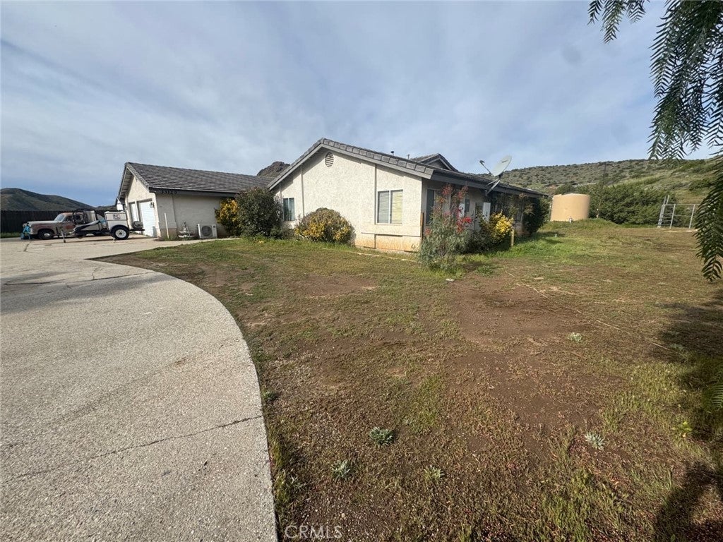 Located near Agua Dulce, this single-family home sits on approximately 5 acres of mostly flat, usable land and offers a functional floor plan with generous living space. The home features a large primary bedroom with en-suite bath and sliding door access to the backyard. The kitchen includes granite countertops and an island that opens to the family room. There is a formal dining area with built-in cabinetry, three additional bedrooms, and a total of 2.5 bathrooms. The property also includes a 3-car garage, circular driveway, playground equipment, outbuildings, a shed/workshop, and a shipping container. The home is served by a well and a newer concrete septic tank. Access is mostly paved with a short gravel portion leading to the property.