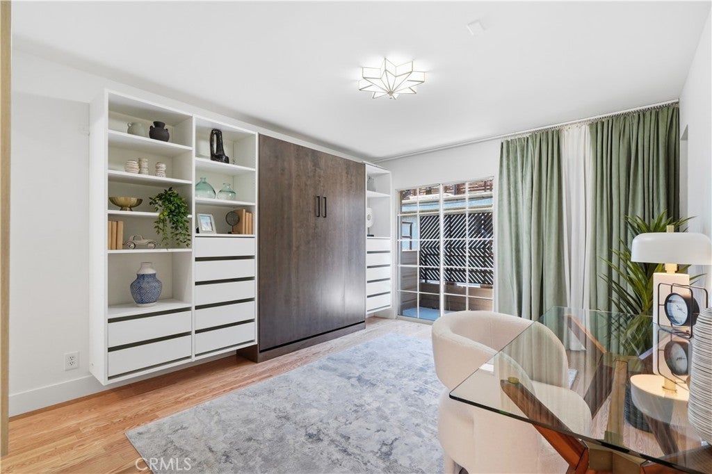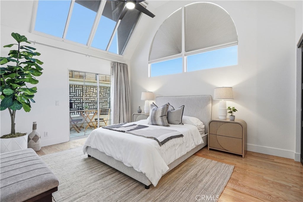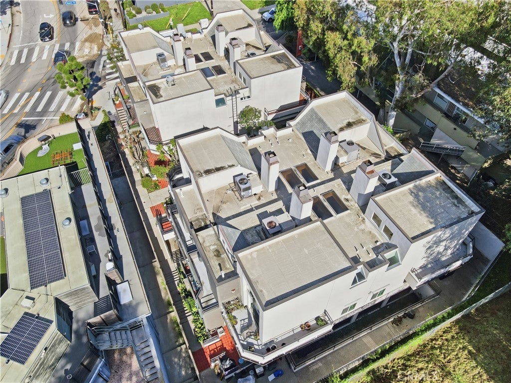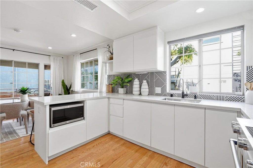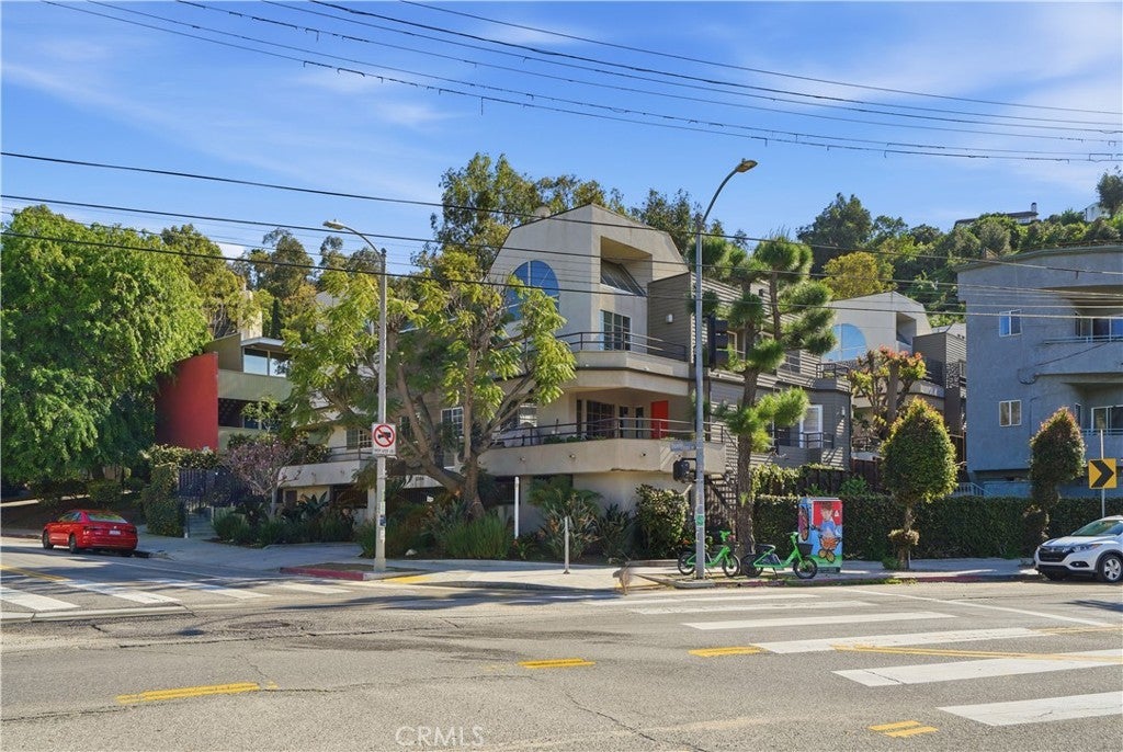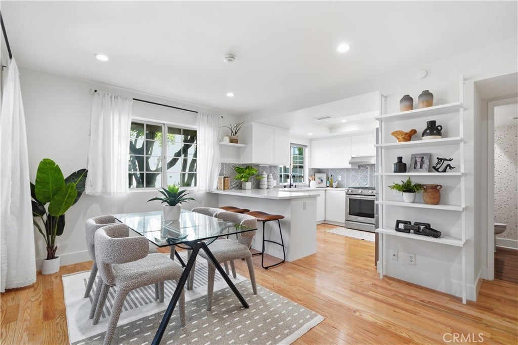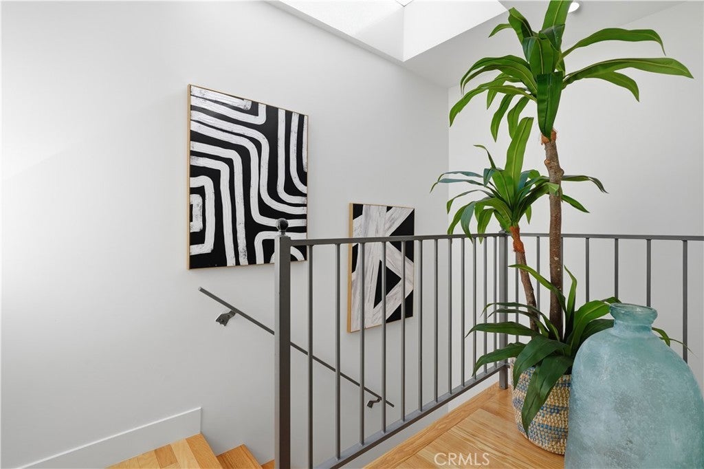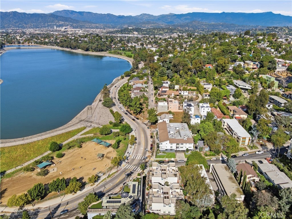 Ideally positioned across from Silver Lake Park & Recreation, Silver Lake Dog Park, and Silver Lake Meadows, this upgraded corner residence places you in the heart of one of LA’s most dynamic neighborhoods. Just moments from neighborhood cafés, dining, boutiques, and major freeways — with convenient access to Dodger Stadium, Hollywood Blvd, and Downtown LA — the location is as compelling as the home itself. Inside, an airy open-concept layout welcomes you with warmth and natural light. The living area centers around a cozy gas fireplace and flows seamlessly into the dining area, where sliding doors open to your patios — creating an inviting space for both everyday living and effortless entertaining. The kitchen has been thoughtfully updated with quartz countertops and a breakfast bar, sleek European-style white cabinetry, stainless steel appliances, an integrated dishwasher, updated sink and faucet, and a bold geometric backsplash. There is also a power room downstairs with its designated washer and dryer space. As you step upstairs, natural light pours in through skylights and expansive windows, illuminating the stairway that leads to two private bedroom suites. The primary suite features soaring vaulted ceilings, large windows, two spacious closets, roller shades, and access to a private wraparound balcony with reservoir views. Its en suite bath showcases dual sinks, updated vanities, modern fixtures, and stylish custom finishes. The secondary suite also offers two closets, its own updated modern restroom, and access to its own outdoor balcony. Additional features include recessed lighting throughout, fresh paint, recess lighting, updated baseboards, crystal door hardware, a modern tempered-glass front door with secure code lock, a newer water heater, and two side-by-side parking spaces with substantial storage are located directly below the unit. Situated in a well-maintained, gated 8-unit community with guest parking and secure common areas, this home offers the perfect blend of modern comfort, thoughtful upgrades, and unbeatable Silver Lake lifestyle living.