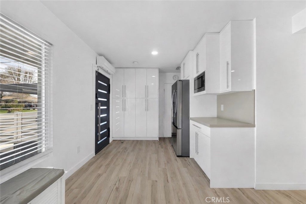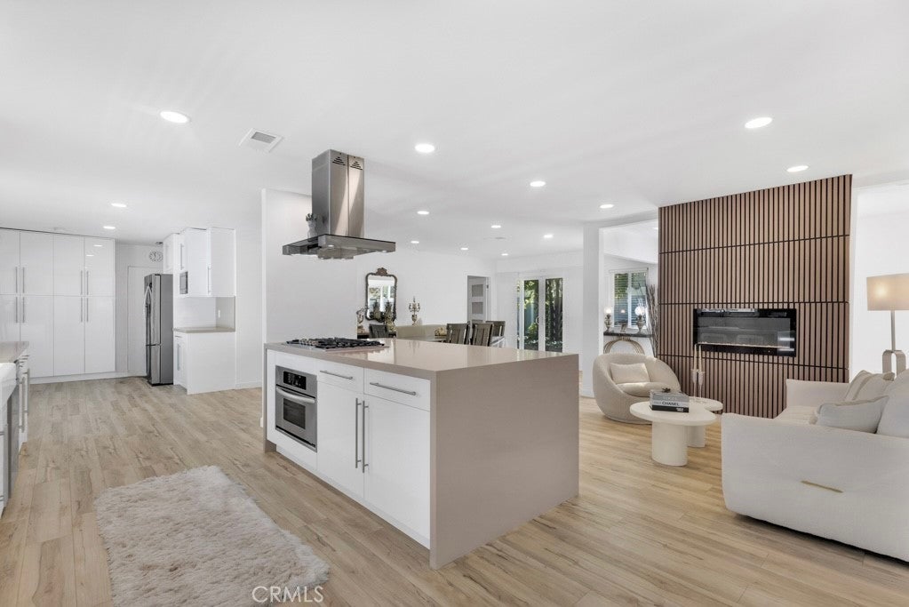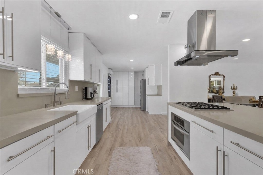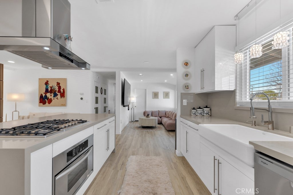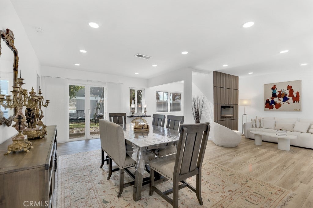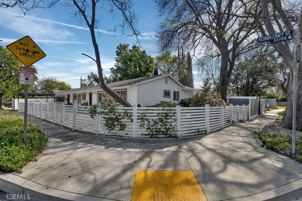 Welcome to this beautifully updated single-story home on a 7,499 sq ft corner lot in a quiet West Hills neighborhood. The interior features stylish laminate flooring throughout, recessed lighting, smooth ceilings, and abundant natural light. The updated kitchen showcases a large center island with waterfall-style countertops, modern cabinetry, a built-in gas cooktop with stainless steel hood, and stainless steel appliances. The open-concept layout flows seamlessly into the dining and living areas, ideal for everyday living and entertaining. The living area is highlighted by a striking modern electric fireplace with a custom accent wall, creating a warm and inviting focal point. The primary suite offers a comfortable and spacious setting with an en-suite bathroom featuring modern finishes and a walk-in shower. Additional bedrooms are well-sized and versatile, with updated secondary bathrooms. The private backyard features mature trees, low-maintenance landscaping, and a covered patio perfect for year-round enjoyment. The property includes a two-car garage, a covered front parking area equipped with an electric vehicle charger, and a gated rear parking area with an electric opener, offering excellent flexibility for RV or additional secured parking. Additionally, the property has an ADU permit approved by the city, providing a valuable opportunity for future expansion or additional living space. Conveniently located near parks, shopping, dining, and major routes, this move-in-ready home offers modern living in an established West Hills setting.
