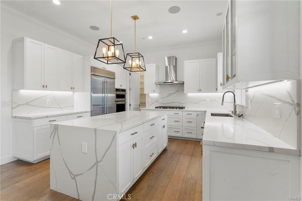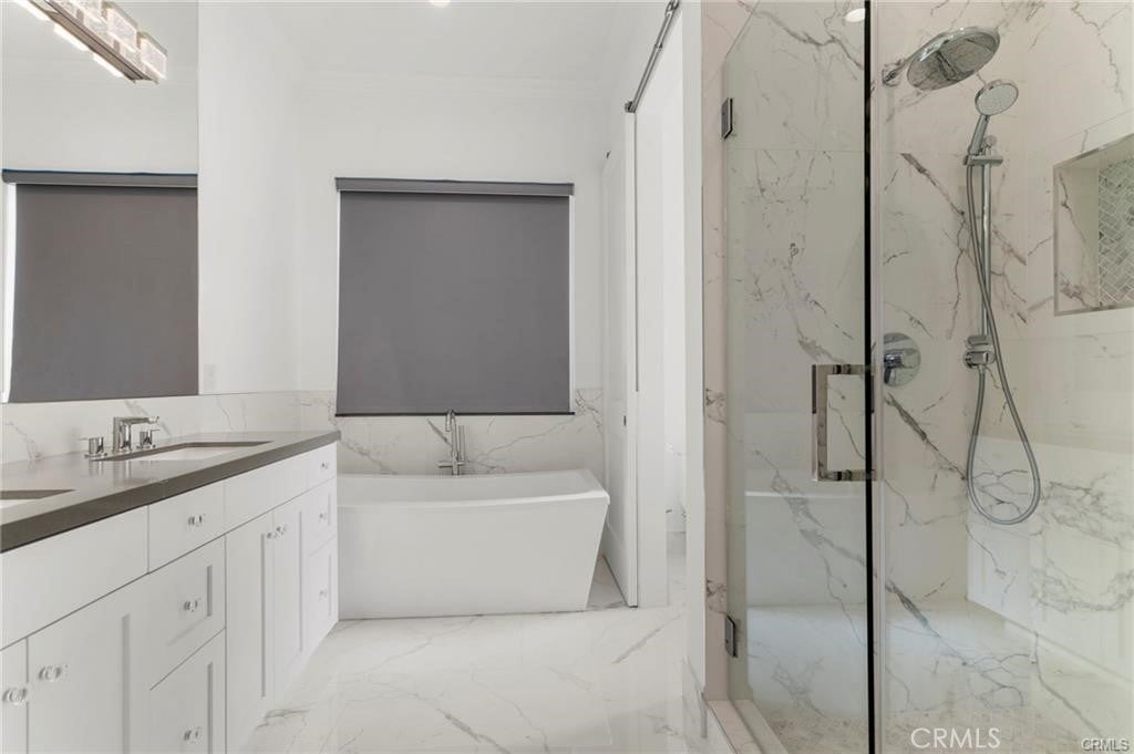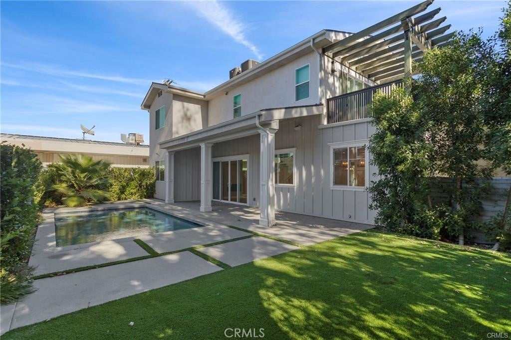 This amazing 3000 sq foot, 5 bedroom, 4 ½ bathroom, gated South of the Blvd home was built in 2020. Included in this open floorplan entertainers’ home is a chef’s kitchen with a large island, stainless steel appliances, a built-in refrigerator and large pantry. On the first level you have 2 bedrooms that share a Jack & Jill bathroom. On the 2nd level you have a total of 3 bedrooms, the primary suite, as well as 2 additional bedrooms both with ensuite bathrooms and walk-in closets. The primary bedroom has 2 walk-in closets, a spa-like bathroom with a soaking tub and a large private balcony. The resort style backyard boast a Saltwater pool, jacuzzi, BBQ island as well as a firepit. This property is within minutes of the 101 freeway and all the fine dining and shops of Ventura Blvd. There are 2 homes on this lot (completely separate access) and they can be rented together. The other home 5535 Vanalden Ave is a 1200 sq foot 2 bedroom, 2 bathroom ADU house.