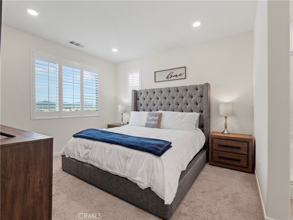 Spacious and practically new, stunning FivePoint home showcasing breathtaking views from the primary living areas and bedrooms. A thoughtfully designed multi-level layout with solar and a desirable main-level bedroom and full bath with sliding glass door leading to the patio, perfectly positioned to capture incredible views—ideal for guests, extended family, or a private office. The second level highlights the heart of the home, featuring a beautifully appointed kitchen and family room designed to maximize natural light and scenery. The chef’s kitchen offers a large center island that opens seamlessly to the living area, stainless steel appliances, a walk-in pantry, abundant cabinetry, and generous counter space. The third level features an expansive primary suite, creating a true retreat with lovely views. The spa-inspired ensuite includes a soaking tub, glass-enclosed walk-in shower, dual sinks, and a spacious walk-in closet. Two additional bedrooms share a convenient Jack-and-Jill bathroom, and a centrally located laundry area adds everyday convenience. Throughout the home, you’ll appreciate high ceilings, recessed lighting, and beautiful luxury vinyl plank flooring. Additional highlights include a two-car attached garage and a prime location just minutes from the 5 Freeway, Highway 126, Six Flags Magic Mountain, shopping, dining, and all that Valencia has to offer. FivePoint residents enjoy resort-style amenities including weekly farmers markets, pools with cabanas, outdoor barbecues, playgrounds, community gardens, scenic walking and golf cart trails, parks, and stunning mountain views. Don’t miss this exceptional opportunity to own a beautifully upgraded home in one of Valencia’s most sought-after communities!