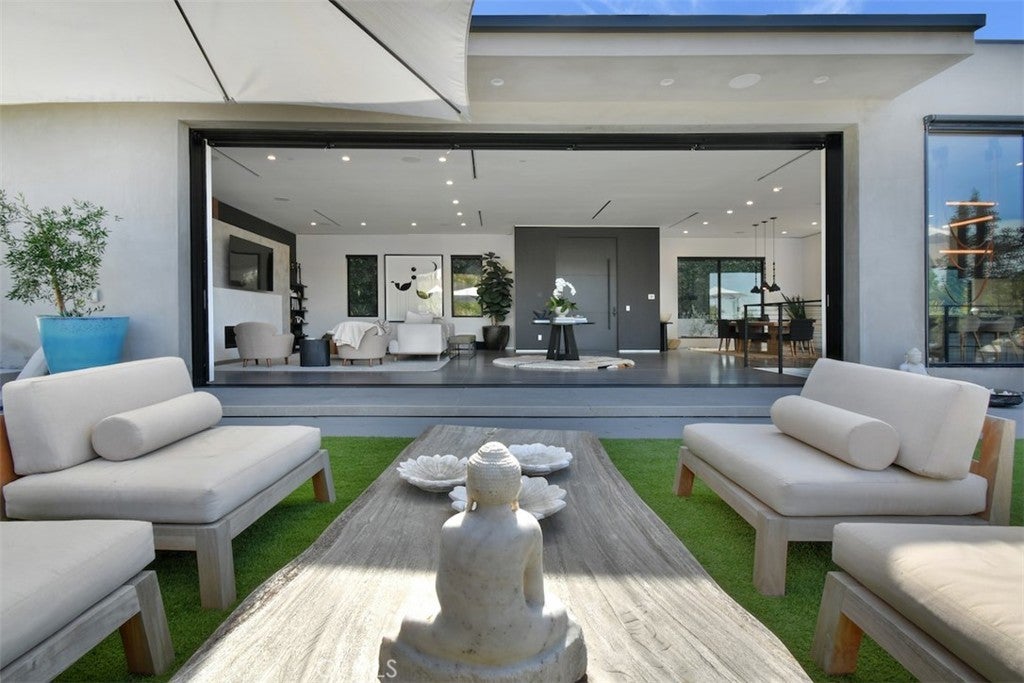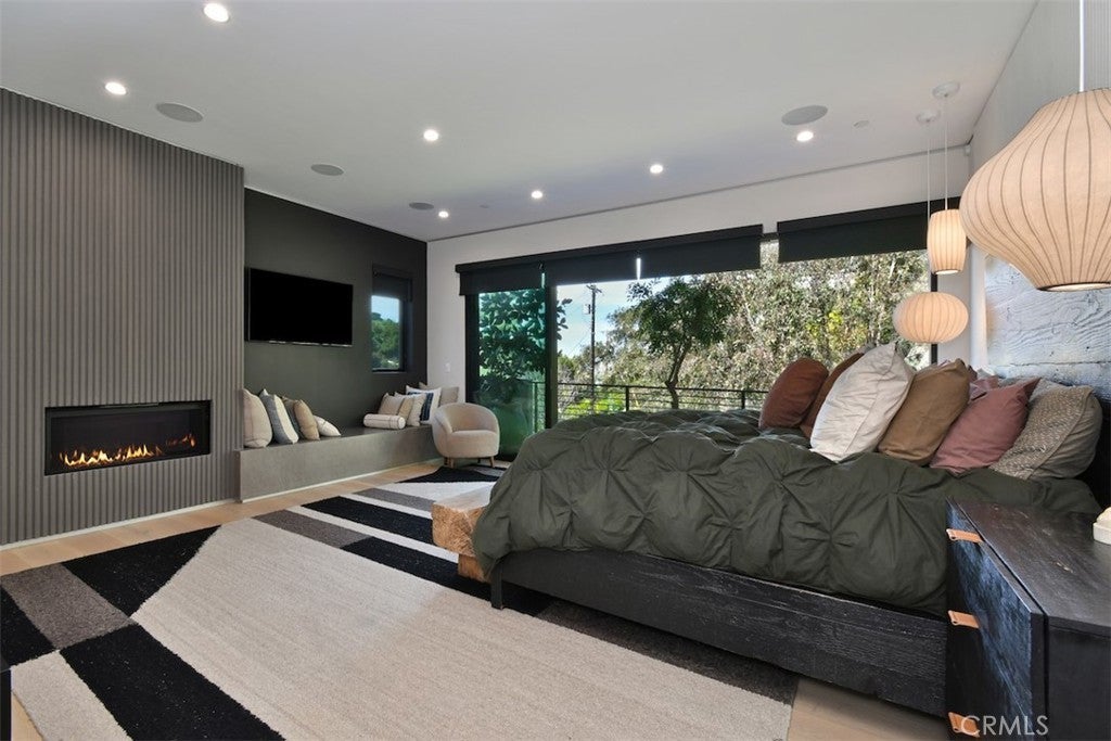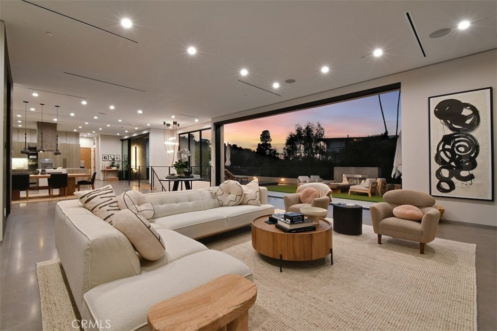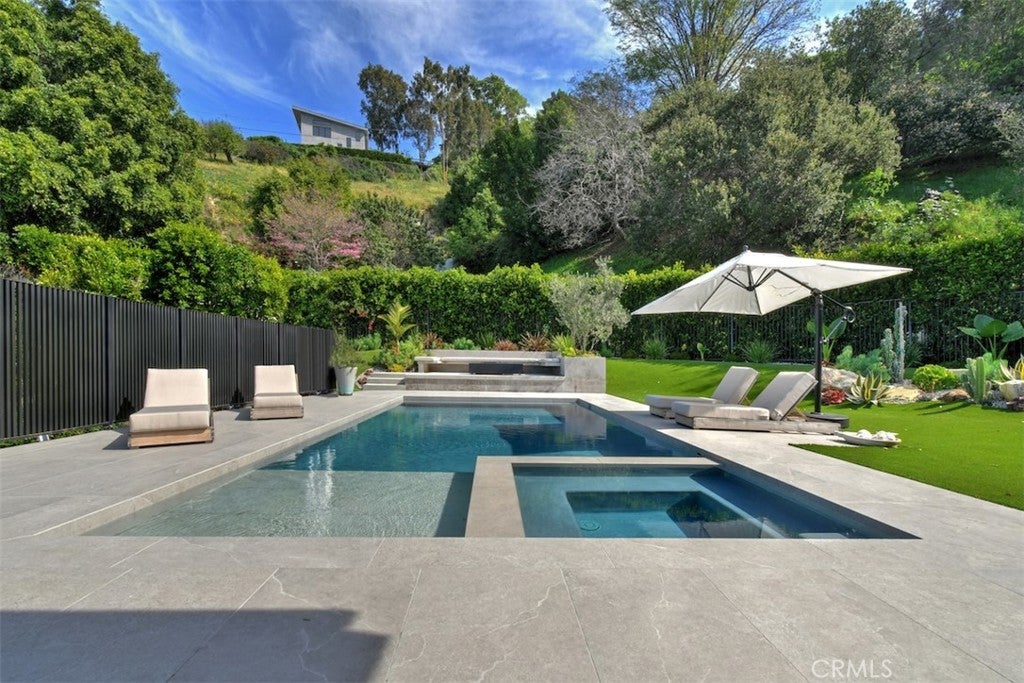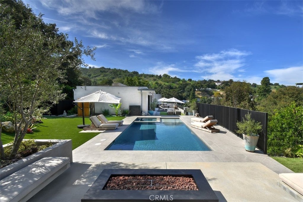 Prime Location South of the Blvd this Stunning home designed for seamless indoor-outdoor living, featuring approximately 1,500 sq ft of beautifully designed outdoor entertaining space with views from every room.This newer development features 4-bedroom, 4.5-bathroom home showcases sophisticated modern architecture with expansive sliding glass walls that open to multiple outdoor lounge and dining areas. The open-concept main level with it's natural light features a dramatic living space, designer kitchen with a large center island and high-end appliances, and a spacious dining area perfect for entertaining. Walls of glass create a seamless transition to the outdoor patios, filling the home with natural light and surrounding hillside views. All four bedrooms are privately situated on the lower level, each with its own ensuite bathroom for comfort and privacy. The luxurious primary suite offers a fireplace, spa-inspired bathroom with soaking tub and oversized shower, and an expansive dream custom walk-in closet. The resort-style backyard is designed for relaxation and entertaining with a sparkling pool and spa, built-in BBQ area, multiple lounge terraces, and two outdoor fireplaces with seating areas. Surrounded by lush landscaping and scenic hillside views, the outdoor spaces provide both privacy and tranquility. Experience a modern retreat offering architectural style, luxurious amenities, and exceptional California indoor-outdoor living. A Must see!