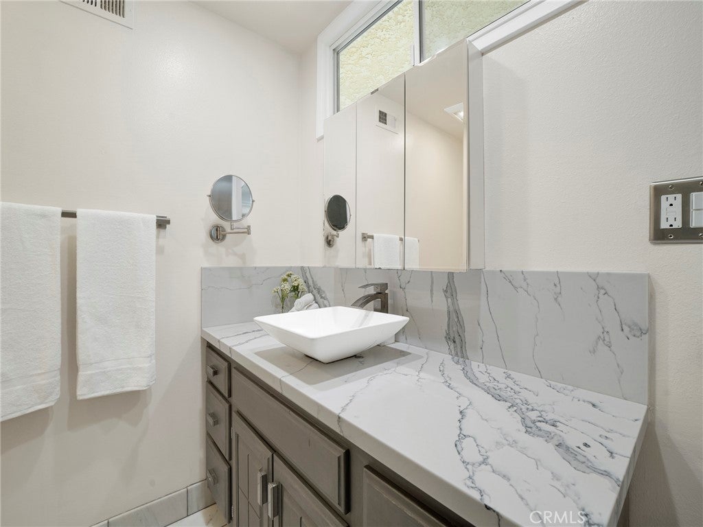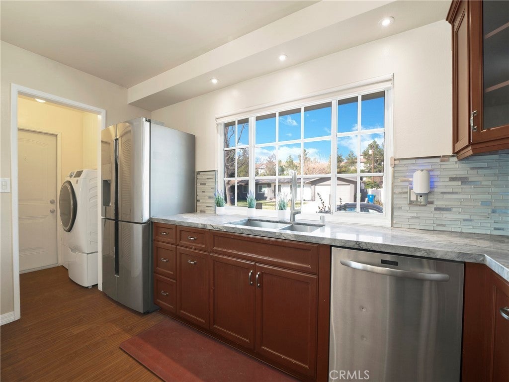 Discover comfort, style, and exceptional living at 23040 Burton St. in West Hills. This inviting, single story 3-bedroom, 2-bath home offers 1412 square feet of well designed space on a generous 7451 square foot corner lot with oversized detached garage. Upon arrival, you’re greeted by incredible curb appeal. As you enter, you’ll appreciate the bright and airy living room, enhanced by abundant natural light and a seamless layout perfectly connecting the living room, dining area and kitchen. Catching your eye next is the open beam ceilings in a large, updated kitchen complete with quartzite counters, stainless appliances, custom cabinets, adjacent laundry room and direct access to a magnificent backyard. Down the hall, the primary suite features an updated bathroom, beautiful light and ample closet space, while two nicely sized additional bedrooms share a renovated full bathroom. Outside a beautifully landscaped backyard with large patio offers the perfect space for gatherings, barbecues, or peaceful evenings. Energy conscious updates include Milgard double-pane windows, new roof, EV charging and owned solar panels. Located near shopping, restaurants, and local businesses in a prime West Hills location with highly rated public and private schools. This is a wonderful place to call home!