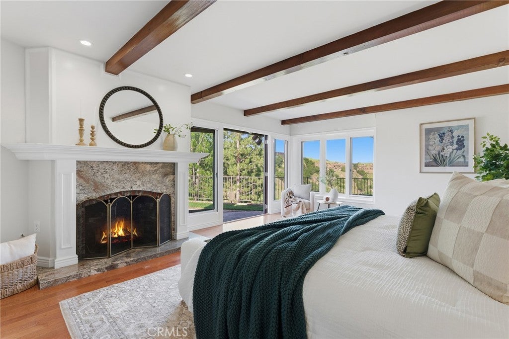 Beamed Ceilings, Wet Bar, Separate/Formal Dining Room, Eat-in Kitchen, High Ceilings, Open Floorplan, Recessed Lighting, Bar, All Bedrooms Down, Bedroom on Main Level, Main Level Primary, Primary Suite, Walk-In Closet(s)