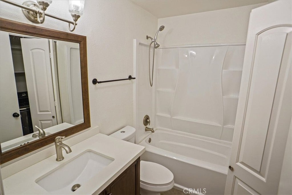 Desirable American Beauty Condominium. No Mello Roos Taxes. Beautifully upgraded 2 bedroom, 2 bath plus loft offering comfortable living space and a 2-car tandem garage. This second-floor unit enjoys no upstairs neighbors and overlooks a wide, lush greenbelt. The remodeled kitchen features premium cabinetry, upgraded counters, stainless steel sink, modern appliances including microwave and dishwasher, included refrigerator, and a charming garden window that brings in natural light. Vaulted ceilings enhance the open living area, creating an airy and inviting atmosphere. The primary suite includes a remodeled full ensuite bath and spacious closet. Spacious second bedroom and hall bath that has been tastefully renovated. Inside laundry includes full-size LG washer and dryer. The versatile loft is accessed by a traditional staircase (not spiral) and can function as an office, gym, media room, or additional guest space. The private balcony offers peaceful greenbelt views — perfect for morning coffee or evening relaxation. Additional upgrades include smart thermostat, newer FAU and A/C system. HOA amenities include multiple pools, play areas, and greenbelts. Conveniently located near shopping, dining, and freeway access.