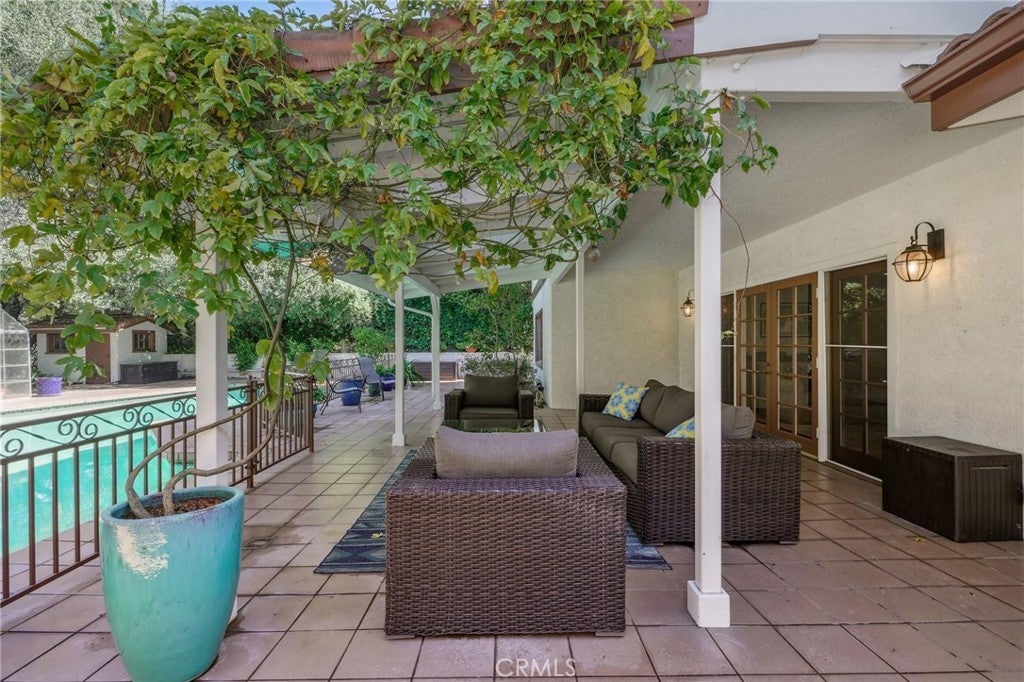 Beautiful, spacious home in the Sherman Oaks hills. The formal entry leads to a large living room with a cozy fireplace. The family and living rooms both open to the very private back yard. There is a formal dining room that can accommodate large gatherings. The chef’s kitchen has been redone and features stainless steel appliances including a 6 burner Wolf cooktop, a Wolf oven with convection, an oversized refrigerator and freezer, quartzite counters and a lovely built in breakfast area. There are 3 bedrooms, 2 ½ bathrooms and a laundry area on the first floor. The primary suite is on the second floor and includes a large bedroom with fireplace, an en-suite bath, 2 walk-in closets, and has an enclosed balcony overlooking the yard. The home has hardwood floors, recessed lighting, plantation shutters and ample cabinet and closet space. In the backyard there is a fenced-in pool, tiled patio with covered seating area, a large outdoor dining space and a greenhouse making this beautiful home perfect for entertaining indoors and out. The home is conveniently located with easy access to the Westside and the San Fernando Valley.