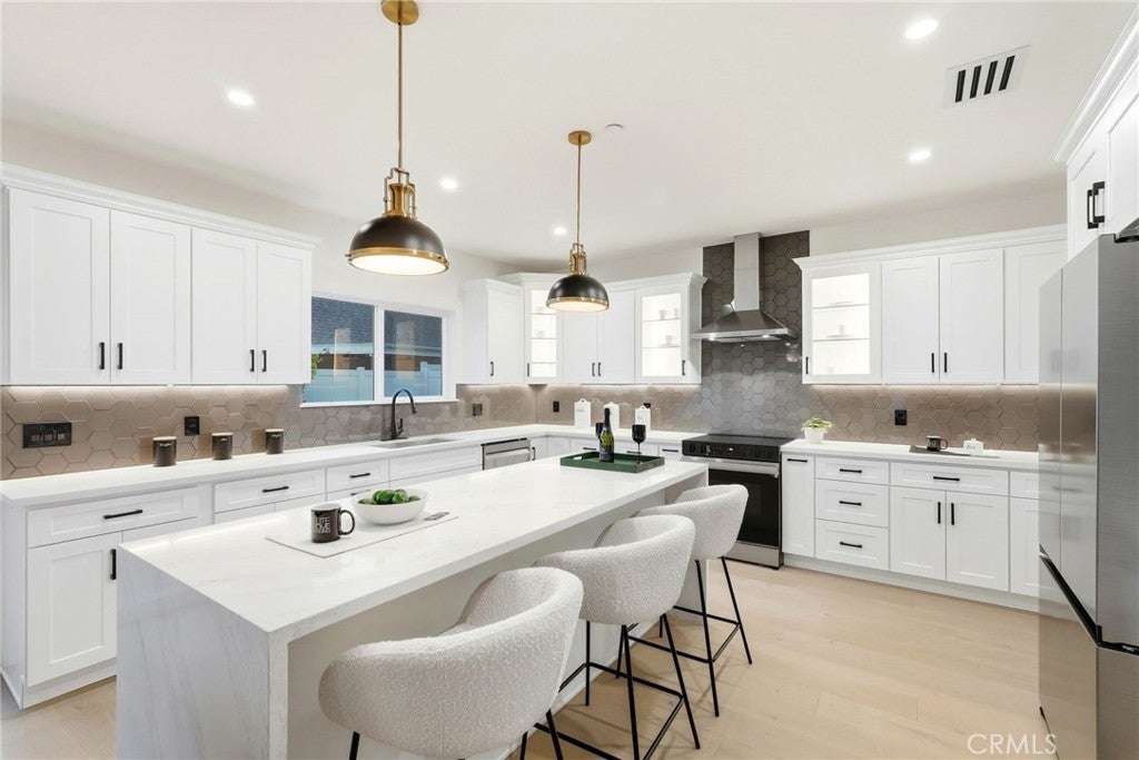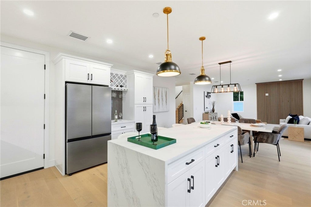 New Construction — Backyard Shown in Renderings! Welcome to this beautifully designed, move-in-ready 5-bedroom, 3-bathroom home offering 2,545 sq. ft. of modern living space in the desirable community of Sylmar. With easy access to the 5, 405, 210, and 118 freeways, commuting throughout the San Fernando Valley and greater Los Angeles is simple and convenient. Inside, you’ll find a bright open floor plan with soaring ceilings, abundant natural light, and engineered wood flooring throughout. The living room features a striking dark wood accent wall, adding warmth and contemporary style. The gourmet kitchen is designed to impress, showcasing quartz countertops, stainless steel appliances, sleek white cabinetry with black hardware, elegant gold-accented fixtures, and a unique honeycomb wine bar—perfect for entertaining. A custom steel front door makes a bold first impression, and every finish has been thoughtfully selected to reflect modern elegance and comfort. Enjoy a private, landscaped backyard (shown in renderings) with new grass and a dedicated patio area ideal for outdoor dining or relaxing evenings. The two-car garage offers added convenience and storage. The seller is willing to obtain permits for a 1BD/1BA ADU conversion in the garage, providing excellent potential for additional living space or rental income. Located within the Los Angeles Unified School District and near El Dorado Avenue Elementary School, Olive Vista Middle School, and San Fernando Senior High School, this home offers comfort, style, and convenience in one exceptional package.