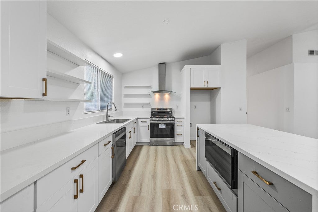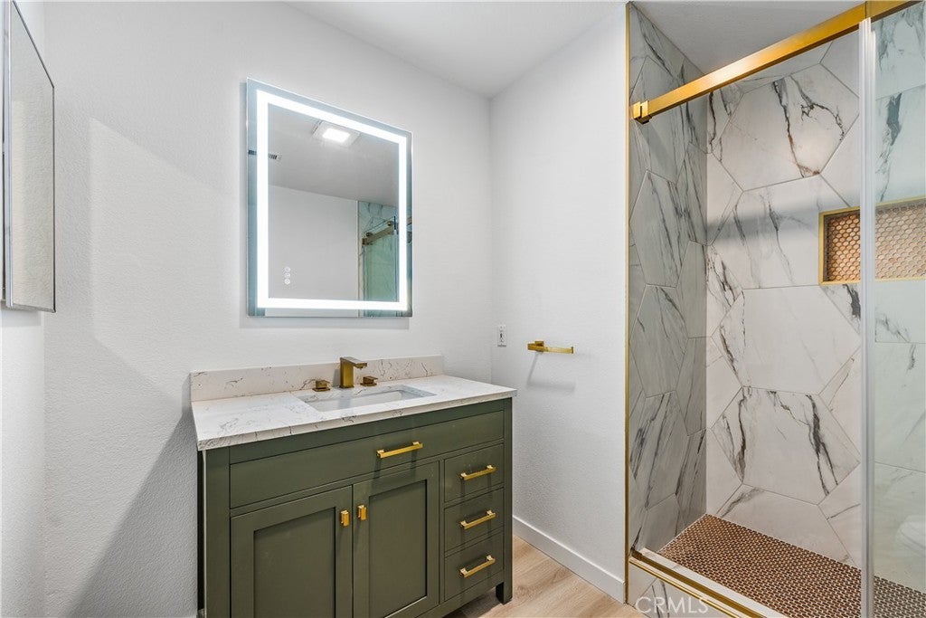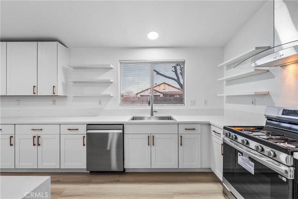 Experience refined living in this fully renovated 4-bedroom, 2-bathroom home in Rosamond. Designed with sophistication in mind, this residence showcases a stunning chef’s kitchen featuring quartz countertops, a dramatic waterfall-edge island wrapped in matching stone, custom built-in microwave, designer range hood, and brand-new appliances. The bathrooms offer spa-inspired finishes with elegant bronze fixtures and custom tile work. The primary suite is a true retreat, complete with floating dual vanities and upgraded walk-in closet fixtures for modern convenience. Brand-new luxury vinyl plank flooring, fresh paint, and all-new fixtures create a cohesive, upscale feel throughout. A restored roof and new garage door add lasting value, while the clean front and back yards provide a polished exterior setting. Ideally located just off Rosamond Blvd with quick access to the 14 Freeway — perfect for commuters and aerospace professionals. Move-in ready and beautifully upgraded.