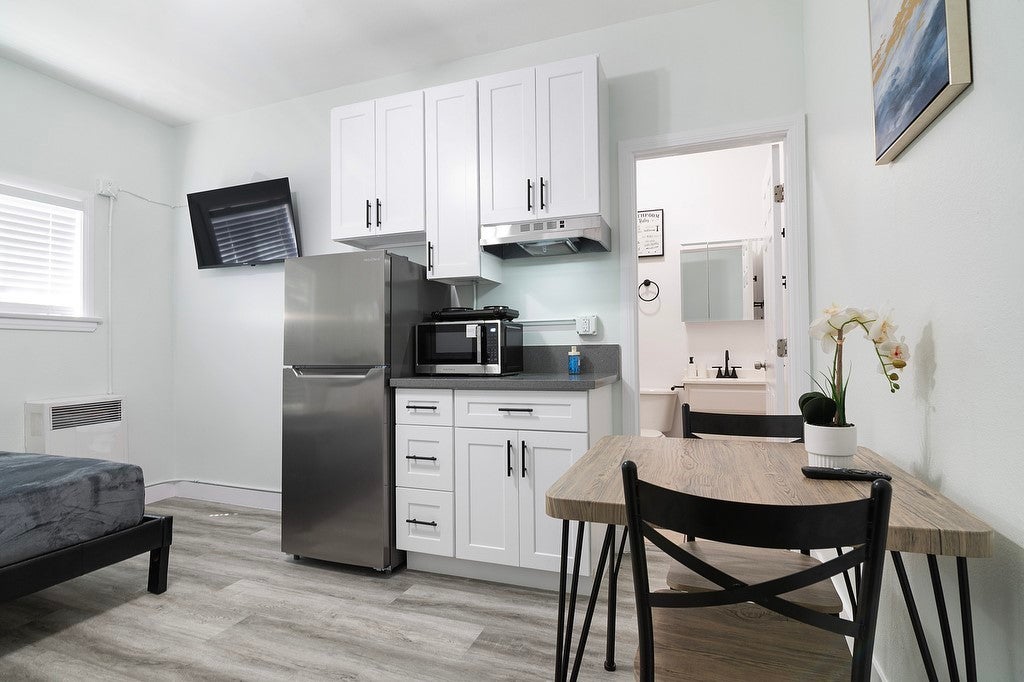 Microwave, Refrigerator, Water Heater, Electric Cooktop