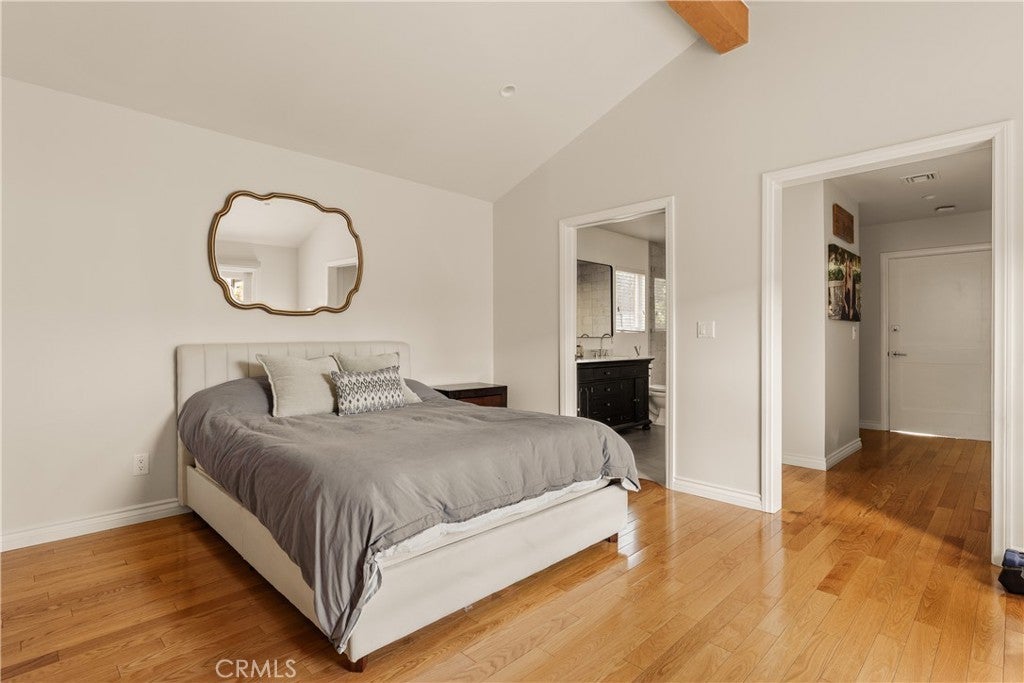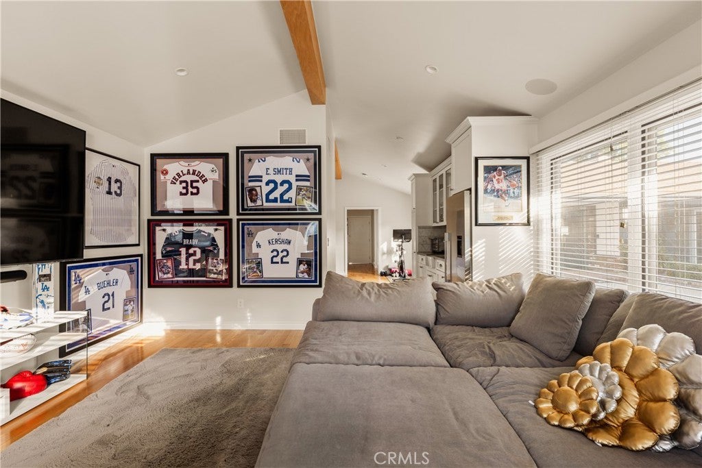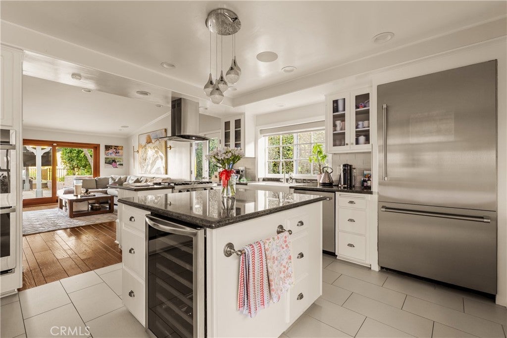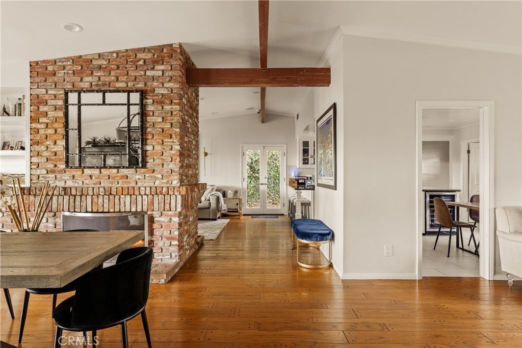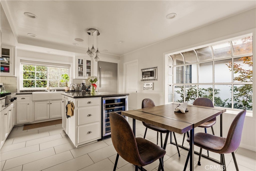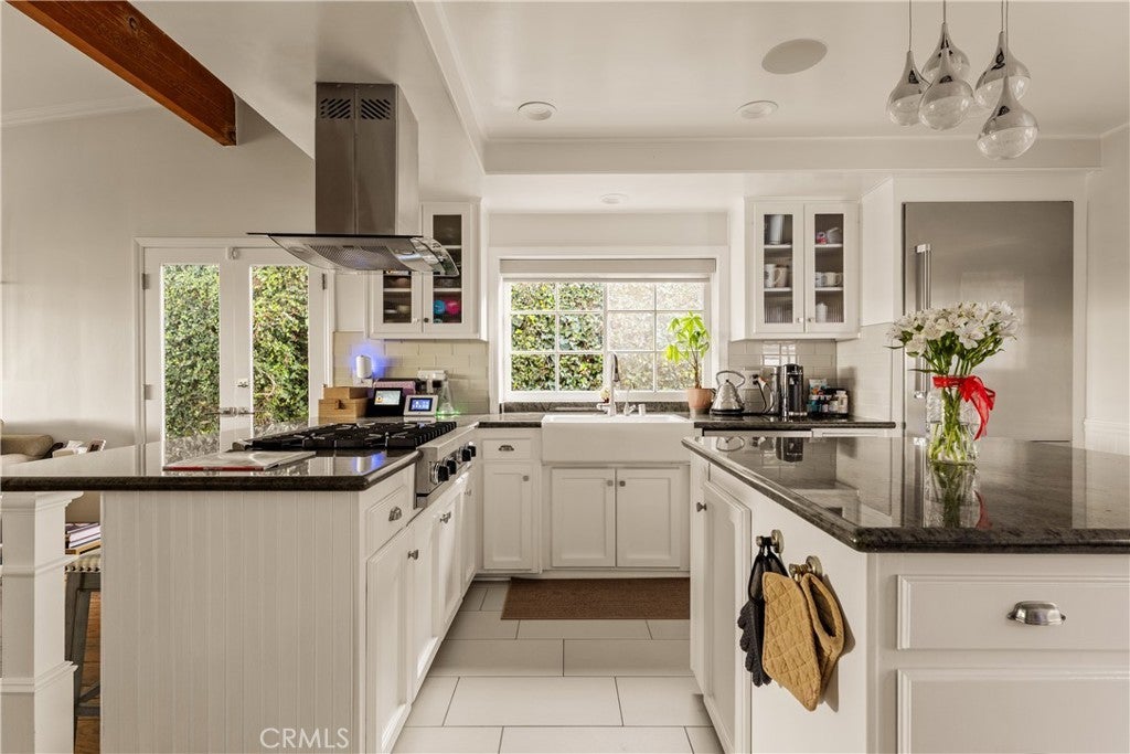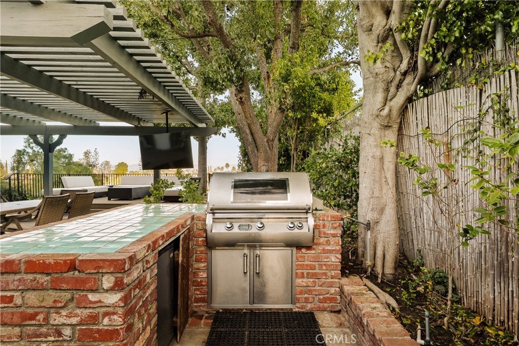 Stunning single-level 4-bedroom, 3.5-bath home offering approximately 3,000 square feet of refined, comfortable living space, ideally situated south of Ventura Blvd on a quiet Woodland Hills cul-de-sac. Filled with natural light and designed for both warmth and functionality, this private residence features vaulted wood-beam ceilings, recessed lighting, built-in speakers, and a charming fireplace anchoring the spacious living and dining areas. The formal dining room flows seamlessly into the family room and kitchen, creating an effortless layout perfect for everyday living and elevated entertaining. The generous island kitchen serves as the heart of the home, offering excellent workspace and storage with granite counters, stainless steel appliances, a Thermador refrigerator, Viking range, wine cooler, and new double ovens — plus a cozy breakfast area overlooking the backyard. The spacious primary suite is a peaceful retreat, while a versatile in-law suite offers a private entrance, walk-in closet, sitting area, convenient kitchenette, and its own en-suite bath with dual vanities and a marble walk-in shower, creating a spa-like experience. The backyard is an entertainer’s paradise with serene views, a sparkling saltwater pebble-tech pool and spa (updated with new tile and pavers), a pergola, a built-in BBQ with refrigerator, and a custom deck designed to capture beautiful mountain vistas. Located minutes from Warner Center, Calabasas shopping and dining, and highly sought-after Woodland Hills Elementary Charter for Enriched Studies school district.