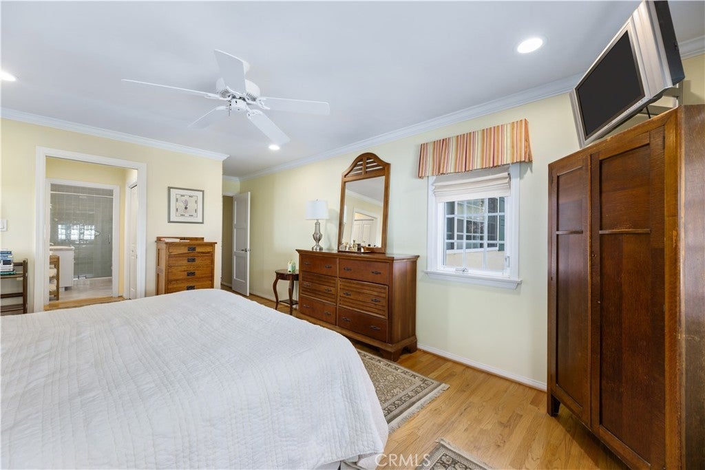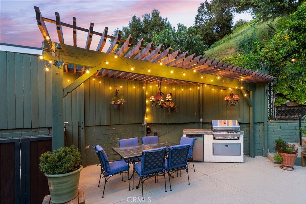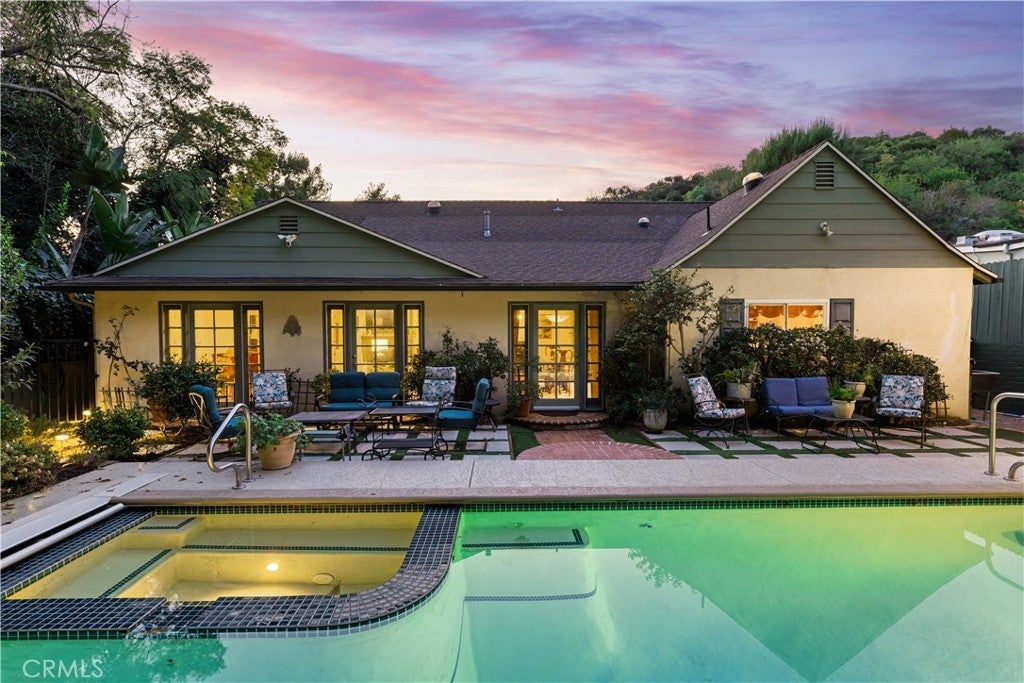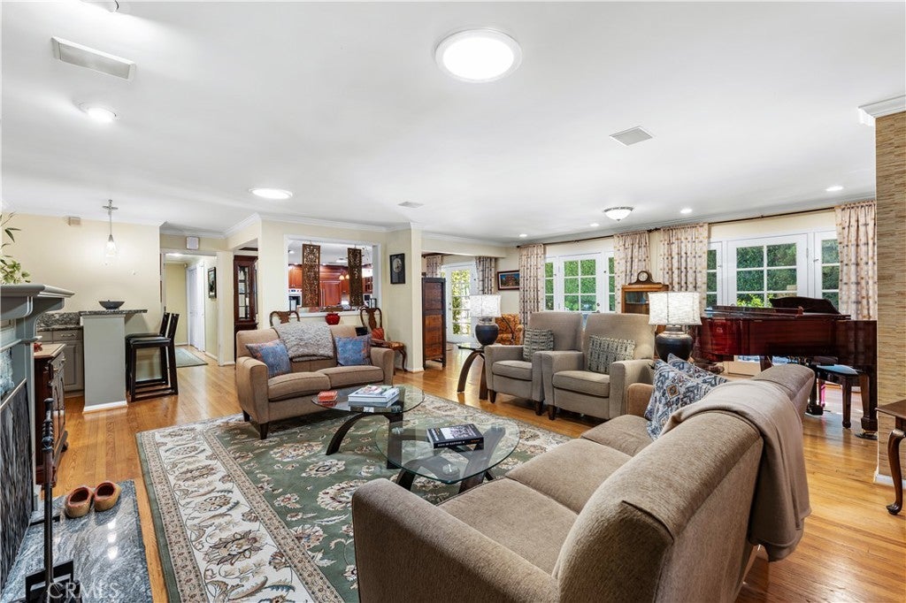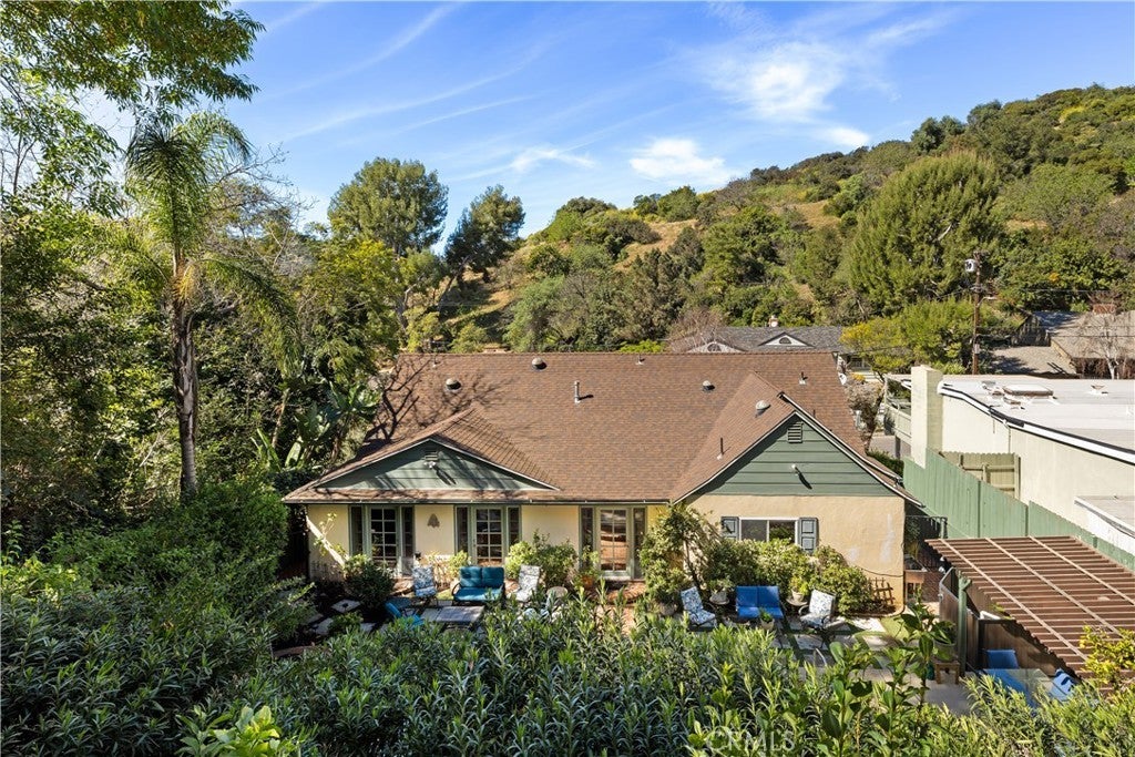 Nestled in the serene hills of Studio City, this pool home offers a perfect blend of traditional elegance and modern California living. Situated in the desirable Carpenter Avenue Charter School boundaries, this 2,305-square-foot residence features three spacious bedrooms and three bathrooms, all meticulously maintained and designed for both comfort and style. The home’s prime location on a dead-end street ensures minimal traffic and enhanced privacy, while its elevated position and lush landscaping provide immediate curb appeal, anchored by a charming brick staircase and a spacious attached garage. The heart of the home is an expansive living area characterized by warm wood floors, elegant crown molding, and an abundance of natural light streaming through large windows and skylights. A handsome stone fireplace serves as a focal point in the family room, creating a cozy atmosphere for gatherings, while multiple sets of French doors invite you to enjoy the seamless indoor-outdoor flow that defines the Southern California lifestyle. The gourmet kitchen is a chef's dream, boasting rich wood cabinetry, granite countertops, a large center island with integrated seating, and professional-grade stainless steel appliances including a built-in double oven and wine refrigeration. The private quarters are thoughtfully arranged, featuring a primary suite that acts as a true sanctuary with its own walk-in closet corridor and a spa-like ensuite bathroom. Outside, the backyard serves as a multi-leveled private oasis centered around a sparkling swimming pool and surrounded by mature foliage for ultimate seclusion. Beyond the poolside patio, a magnificent terraced deck leads to elevated sitting areas designed to capture breathtaking views of the surrounding hills, offering the perfect spot for sunset cocktails or morning coffee. Combining hilltop tranquility with easy access to the vibrant dining and shopping of Ventura Boulevard, this home represents a rare opportunity in a premier neighborhood.