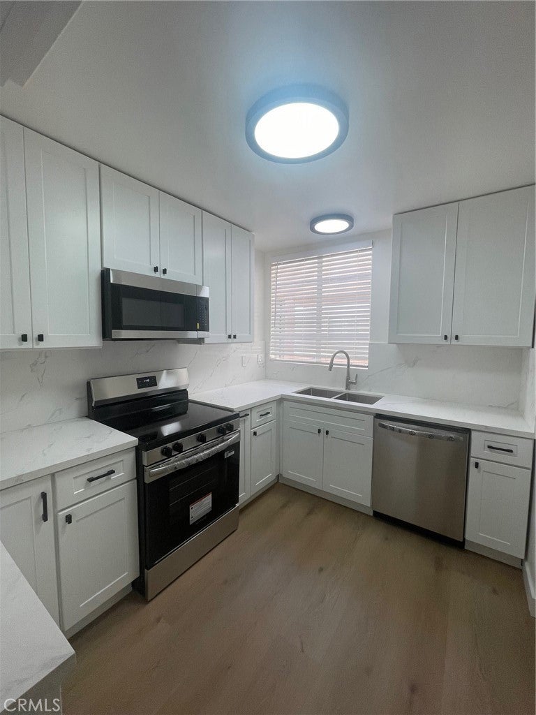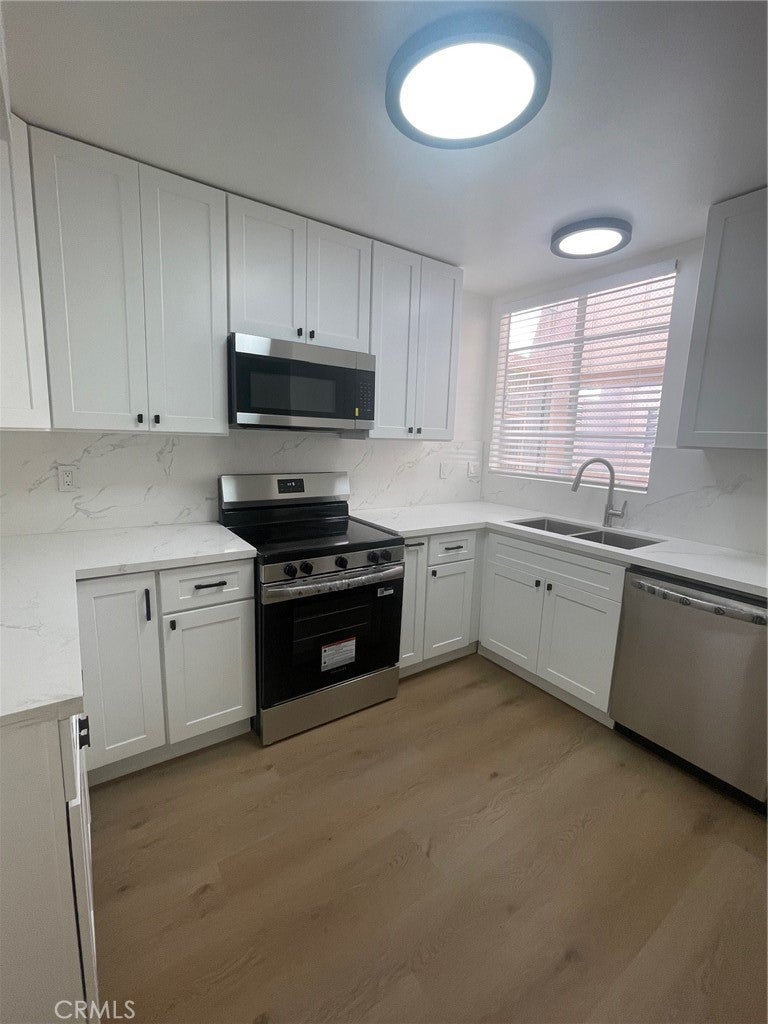 Here is your opportunity to live in a for a fully remodeled 2-bedroom, 2-bathroom condominium located within walking distance of Ventura Boulevard in Encino. This unit features an excellent floor plan with bedrooms situated on opposite sides of the condo for added privacy. The property has undergone an extensive remodel, which includes brand new flooring and fresh paint throughout, smooth ceilings with recessed lighting, new closet doors and light fixtures. The updated kitchen is equipped with stainless steel appliances, and the bathrooms feature new vanities. Additionally, the unit is fitted with a brand new AC/heating system and new sliding windows that lead to a private balcony. The condo is situated in a very quiet section of the building, well positioned away from the street.