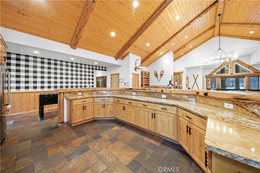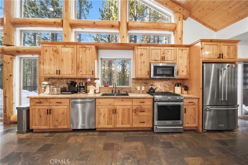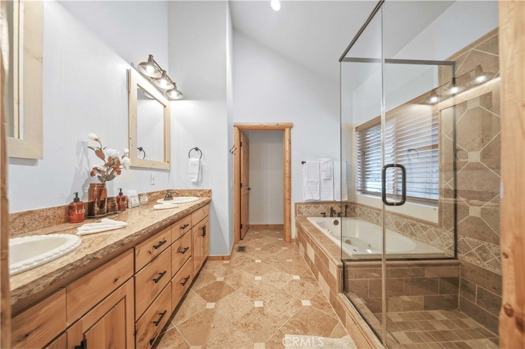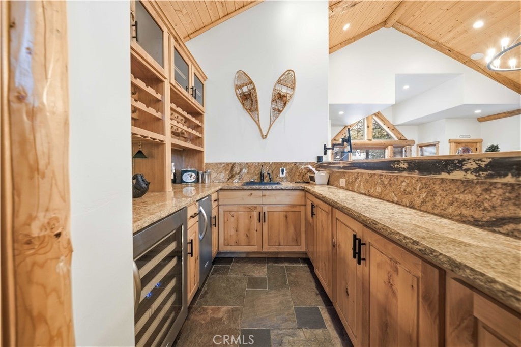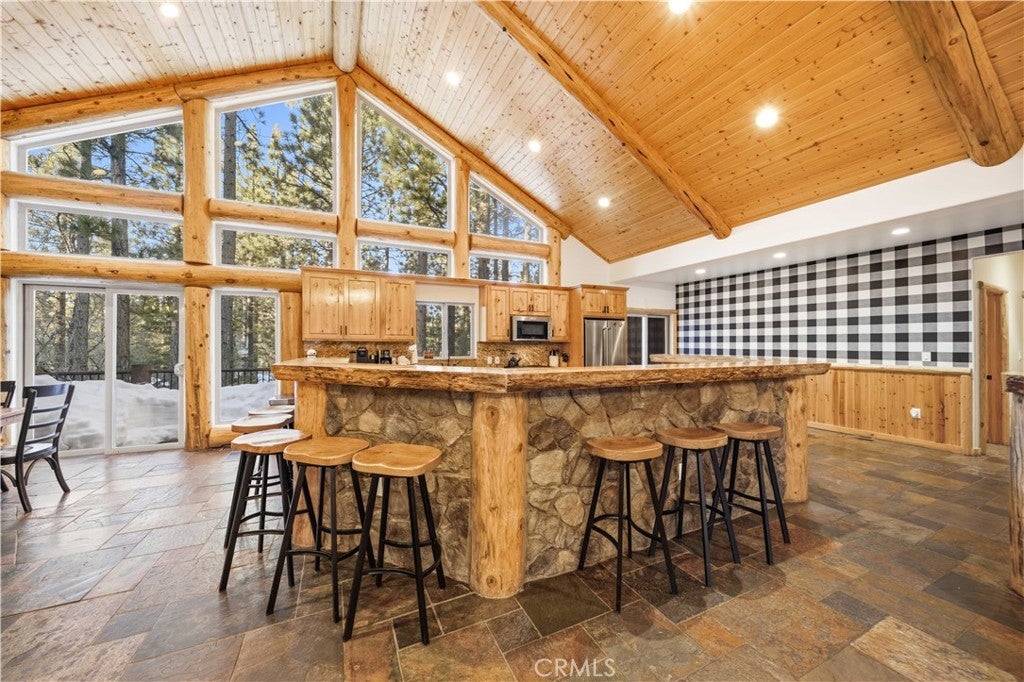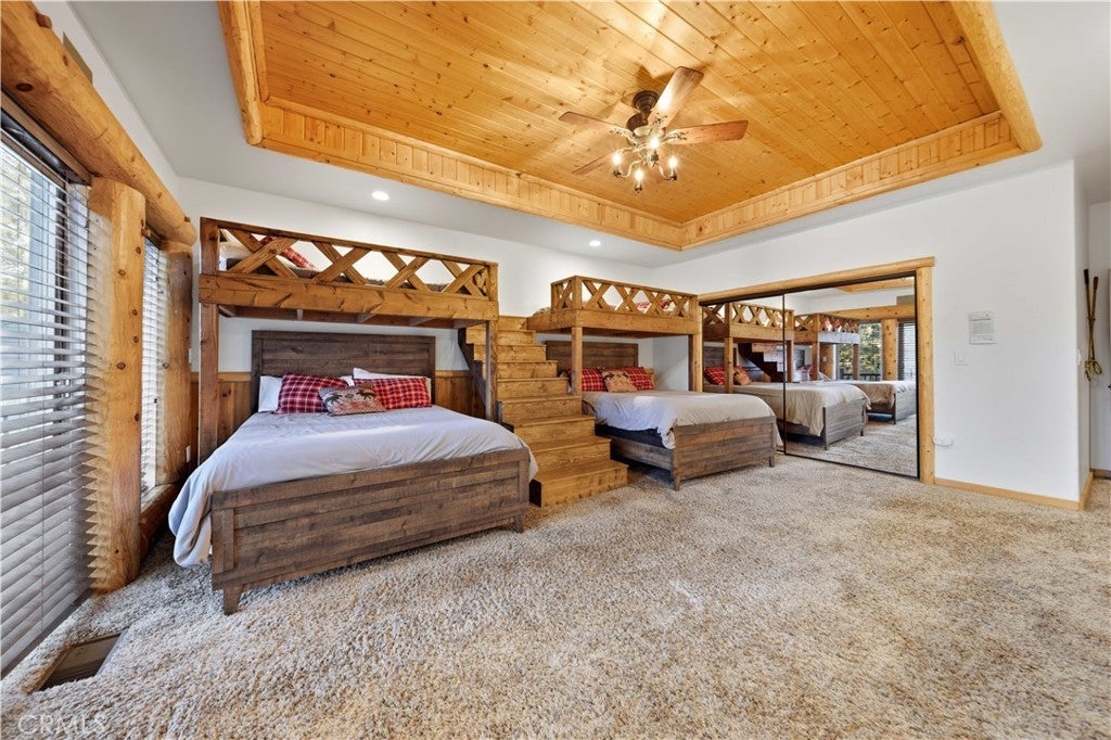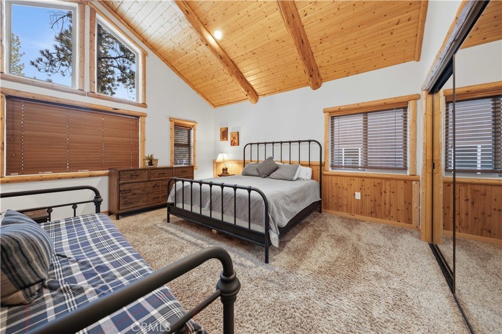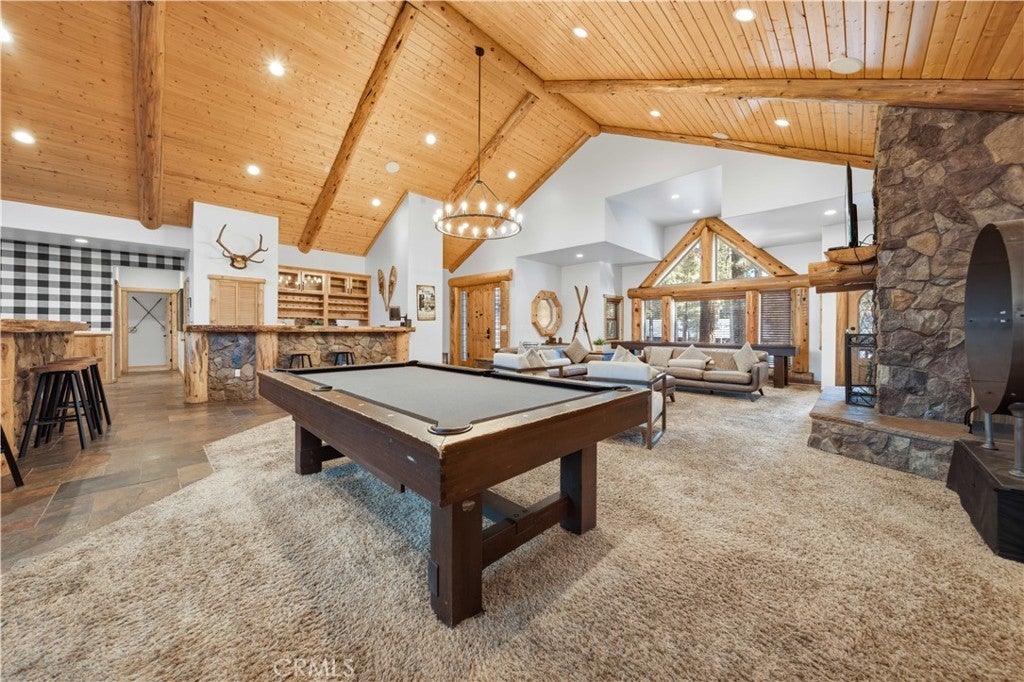 Stunning views from this one-of-a-kind log style home located in one of Big Bear Lake's most coveted areas. This home offers a prime position between both major ski resorts - Nestled in upscale Heavenly Valley Estates, the home sits just ~4-minute drive to Snow Summit and 5-minute drive to Bear Mountain. Few Big Bear locations offer this effortless access to both resorts in one stay. Quiet, private, forested luxury setting in an exclusive neighborhood - Heavenly Valley Estates features custom homes on large lots (this one: 0.35 acres) with sylvan privacy, mature trees, and underground utilities (no overhead power poles spoiling views). It delivers a peaceful upscale escape with photogenic, high-end curb appeal featuring a log-home style, expansive redwood deck with hot tub, and pristine mountain-forest backdrop. The open floorplan is perfect for entertaining and hosting, featuring a spacious living room with a fireplace that connects to the dining area, kitchen and bar. The entertainer's kitchen features a large center island with ample seating and extensive counter space. There are 4 bedroom and 3.5 bathrooms. Three of the bedrooms are luxurious suites, each with its own bathroom and closet. An additional bunk room is located above the garage. Outside you will find an expansive red wood deck where you can relax in the hot tub or entertain guests while enjoying the fresh mountain air. There is an attached 3 car garage with ample parking. This property is a highly sought after vacation rental with strong revenue history - The area (and this exact home when previously rented) supports large groups (sleeps 16 comfortably), 5-star reviews, and $90K+ annual gross in a high-demand pocket. Central-yet-quiet positioning drives better year-round occupancy than slope-distant or overly touristy zones, with easier management due to short drives for cleaners/owners. Guest-friendly logistics & parking - plus proximity to free Big Bear trolleys/shuttles to resorts and town. Guests rave about hassle-free arrivals/departures-unlike congested Village or lakefront areas with tight parking and traffic during peak seasons. This location combines the best of both worlds-world-class winter ski access + effortless summer lake/Village fun-in a serene, upscale pocket that supports premium pricing and high occupancy with lower "guest friction" than busier or more remote Big Bear spots. It's a turnkey performer for anyone targeting Southern California's ski-and-lake vacation market.