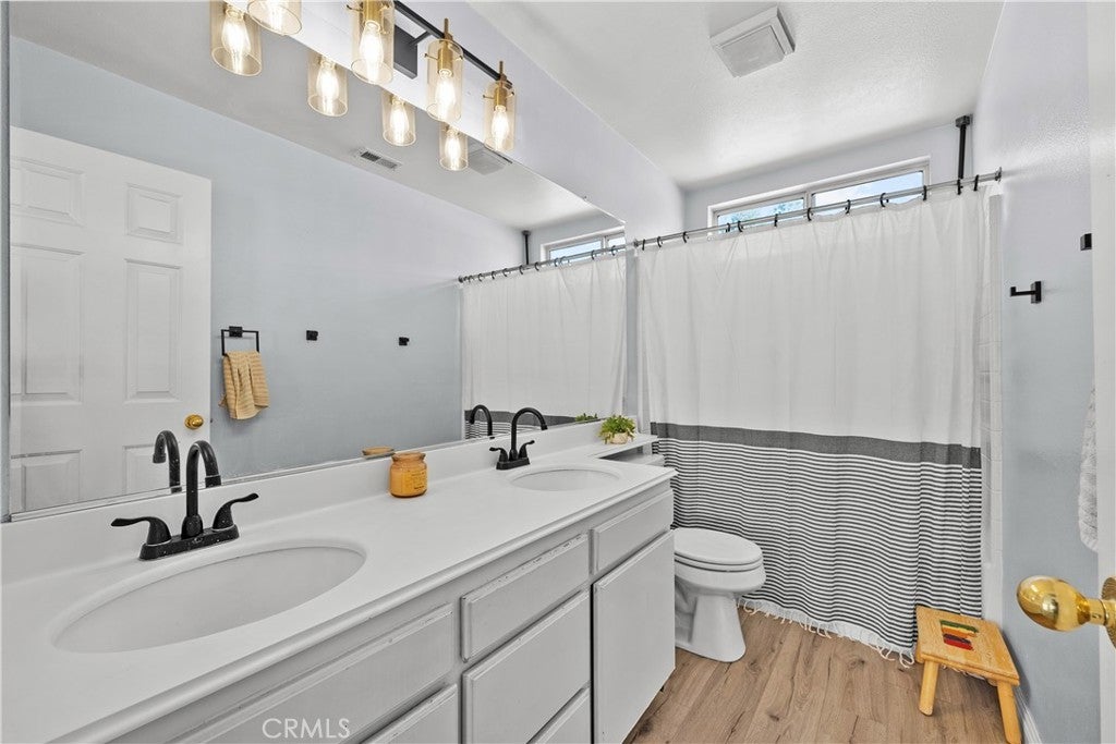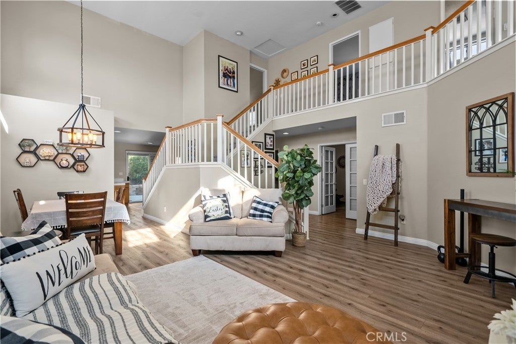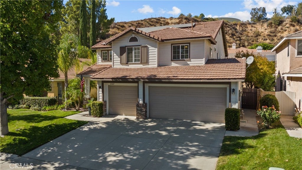 Discover the perfect blend of comfort, style, and smart living in this beautifully upgraded 4-bedroom + loft, 3-bath home located in the highly sought-after California Bluffs community of Santa Clarita. From the moment you enter through the impressive double doors, you’re greeted by soaring ceilings, a sweeping double-sided staircase, custom paint, upgraded moldings, and newer luxury vinyl flooring—all enhanced by abundant natural light pouring through oversized windows. This home immediately makes a statement. Designed for both everyday living and entertaining, the open-concept floor plan flows effortlessly into a spacious family room featuring a cozy stone fireplace. The kitchen overlooks the living space and offers oak-style cabinetry, tile countertops, a center island, recessed lighting, and custom finishes—perfect for gathering with family and friends. Upstairs features new plush carpet,, the versatile loft provides endless possibilities—create a home office, theater room, gym, or play area tailored to your lifestyle. The expansive primary suite is a true retreat, complete with a walk-in closet and a luxurious en-suite bath featuring a soaking tub, separate shower, and oversized vanity. Two additional upstairs bedrooms offer generous space, while a convenient downstairs bedroom and full bath are ideal for guests or multigenerational living. Thoughtful upgrades provide peace of mind and efficiency, including new carpet, fresh upstairs paint, a newer roof (2021), tankless water heater, and energy-saving solar panels—bringing modern comfort and long-term value together seamlessly. The upgraded 3-car garage showcases epoxy flooring and built-in white cabinetry, offering both function and style. Enjoy resort-style amenities with access to a community pool, park, and play area. Ideally located near top-rated schools, dining, shopping, and commuter access, this home truly offers the complete package. This is more than just a home—it’s the lifestyle you’ve been waiting for.