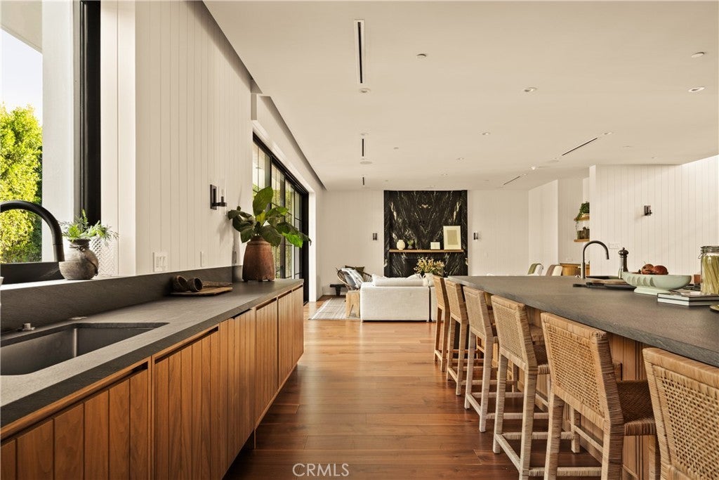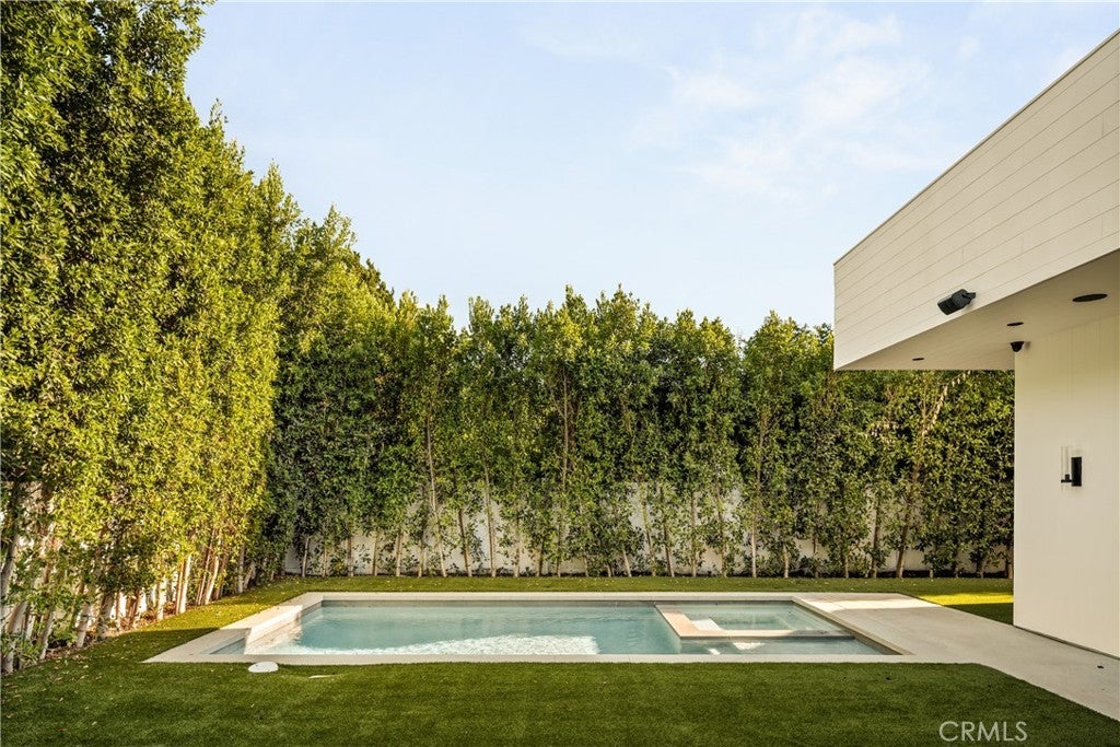 This awe-inspiring newer construction estate by JVE Development featuring refined design details by Jae Omar. Sits quietly on a cul-de-sac in the heart of Encino. A rare combination of striking architecture, thoughtful finishes, and a floor plan designed for both grand entertaining and everyday comfort, this home is the definition of modern luxury. Step inside to soaring ceilings and a seamless open layout accented with rich wood details. The living room centers around a sleek fireplace and opens through oversized disappearing pocket doors to the backyard, blurring the line between indoor and outdoor living. The custom chef’s kitchen is a true showpiece, complete with professional-grade appliances, an oversized waterfall island with seating, and a pass-through window for effortless outdoor dining. A butler’s pantry connects the kitchen to the elegant formal dining room, perfect for hosting dinner parties. Upstairs, four spacious ensuite bedrooms provide comfort and privacy. The primary suite is a true retreat, with a private balcony, wet bar, custom walk-in closet, and a spa-like bath featuring dual vanities, a soaking tub, and a glass-enclosed shower. Designed with entertaining in mind, the backyard is a private oasis: a sparkling pool and spa, cabana with kitchenette, and a lush grassy area create the perfect setting for gatherings. Additional highlights include a state-of-the-art home theater with a bonus lounge area, a main-level ensuite bedroom, smart home features, and a two-car garage. All of this in an unbeatable location, Lanai and Hesby Oaks school districts, just moments from Ventura Boulevard and Libbit Park, with easy access to the best of both the Valley and the Westside.
