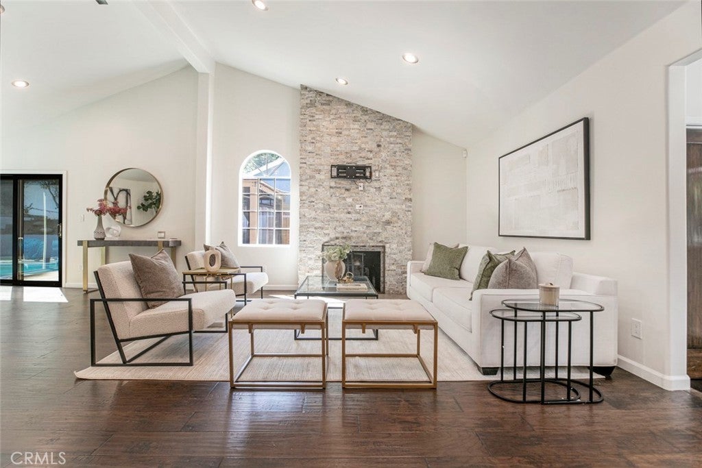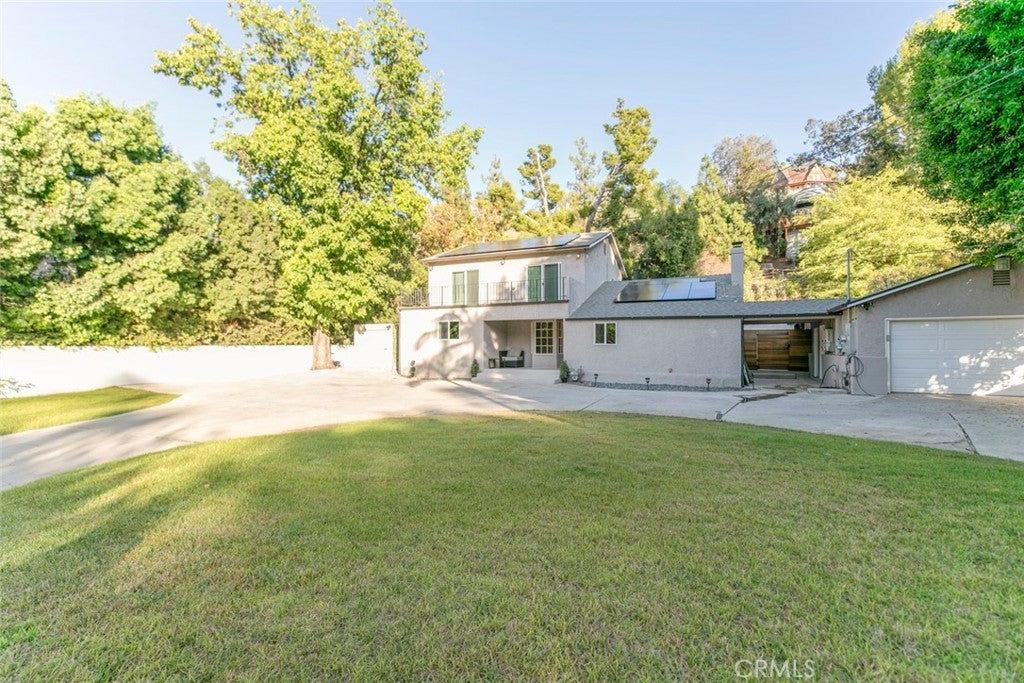 Welcome to this stunning 3-bedroom, 3r-bathroom home, offering a perfect blend of elegance, comfort, and functionality. Step inside to a grand living room with soaring cathedral ceilings and a cozy fireplace, creating the ideal setting for both relaxing and entertaining. The inviting kitchen features a charming breakfast nook, while multiple living and dining areas flow seamlessly for everyday comfort. Upstairs, one of the bedrooms opens onto a private balcony overlooking the street, providing a perfect spot to unwind. Enjoy California living at its finest in the backyard retreat, complete with a sparkling pool, spacious patio, and a beautiful wooden deck—perfect for hosting gatherings or simply enjoying the outdoors. Additional highlights include a circular driveway, gated entrance for privacy, and ample parking space. The property is also equipped with a fully paid-off solar system, offering eco-friendly living and reduced utility costs. This home combines thoughtful design with timeless appeal, making it a true standout. *Property is also available for lease.