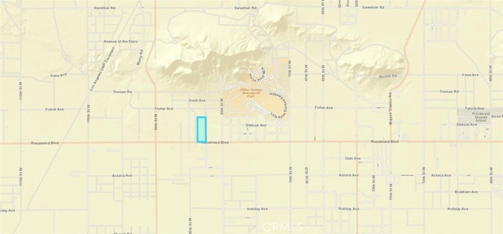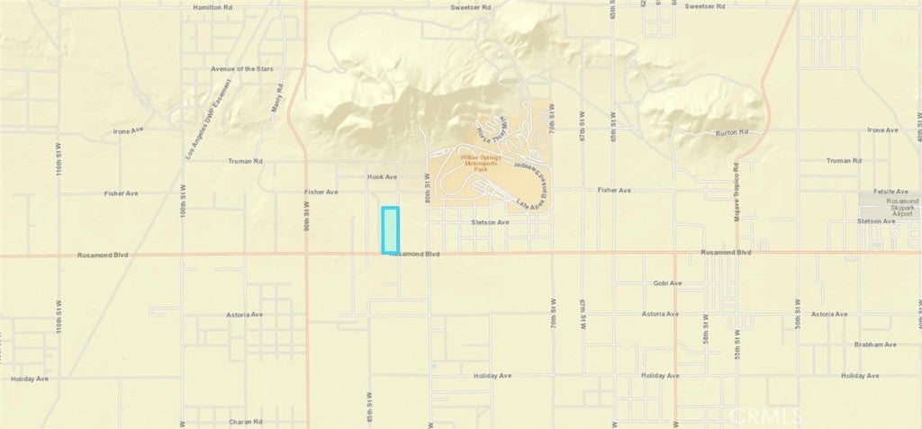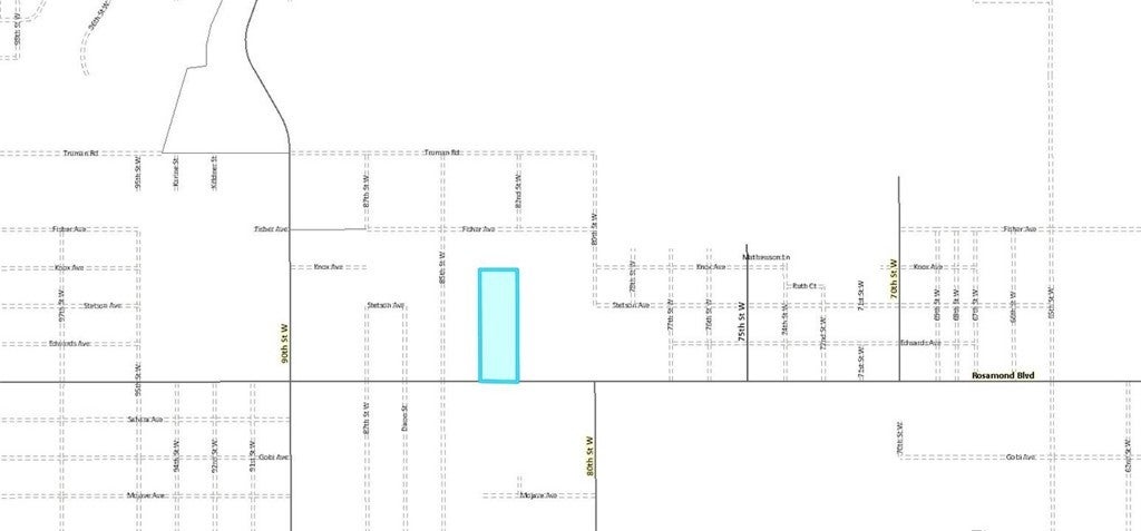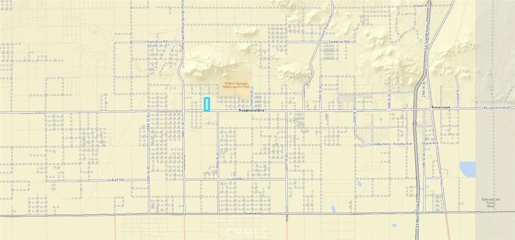 Excellent 29.55 acre parcel located on paved Rosamond Blvd near Willow Springs International Raceway in Rosamond, CA. Located on Rosamond Blvd between 82nd St W and 83rd St W this parcel has electricity fronting the property. Lots of potential with this large mostly flat lot. Hold for future use, investment, or develop and use with current county zoning.