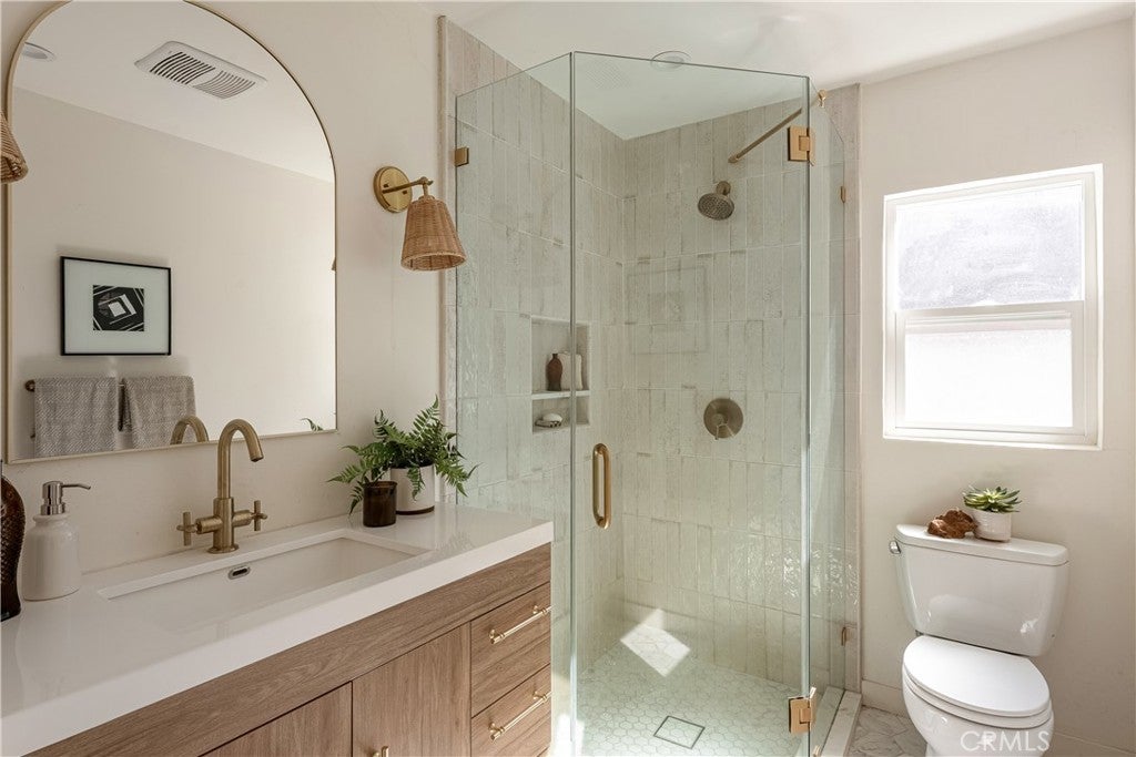 Presenting this charming 1940s three-bedroom, two-bathroom home, located just moments from Woodbridge Park and Tujunga Village. This home has been thoughtfully updated while maintaining its timeless character and architectural appeal. From the moment you step inside, you’re welcomed by a bright and airy open-concept formal living and dining area, creating a seamless flow that’s ideal for both everyday living and entertaining. Classic rounded archways add warmth and vintage charm as they guide you into the spacious family room, offering an inviting space to relax and gather. Beautiful new oak flooring runs throughout the home, complemented by fresh interior paint that enhances the natural light in every room. The bathrooms have been tastefully updated with modern finishes while still honoring the home’s original style. Step outside to your own private backyard retreat; an inviting oasis featuring a sparkling pool, generous patio space for outdoor dining and lounging, and a grassy area perfect for play or pets. Whether hosting summer gatherings or enjoying a quiet evening under the stars, this backyard offers endless possibilities. Adding even more versatility is the converted detached garage, fully insulated and equipped with a mini-split AC unit, making it comfortable year-round. This flexible space is ideal for a home office, gym, creative studio, or guest overflow. A wonderful blend of classic charm and thoughtful updates, this home offers comfort, style, and functionality both inside and out.
