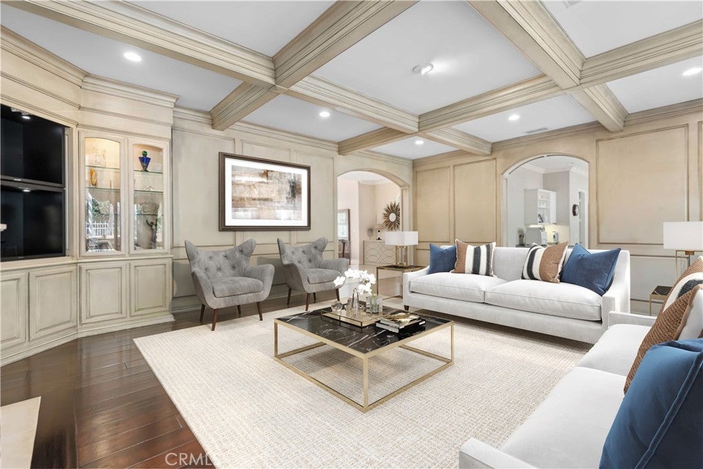 Wet Bar, Breakfast Bar, Built-in Features, Ceiling Fan(s), Crown Molding, Coffered Ceiling(s), Separate/Formal Dining Room, Eat-in Kitchen, Granite Counters, High Ceilings, Open Floorplan, Pantry, Bar, Entrance Foyer, Primary Suite, Walk-In Pantry, Walk-In Closet(s)