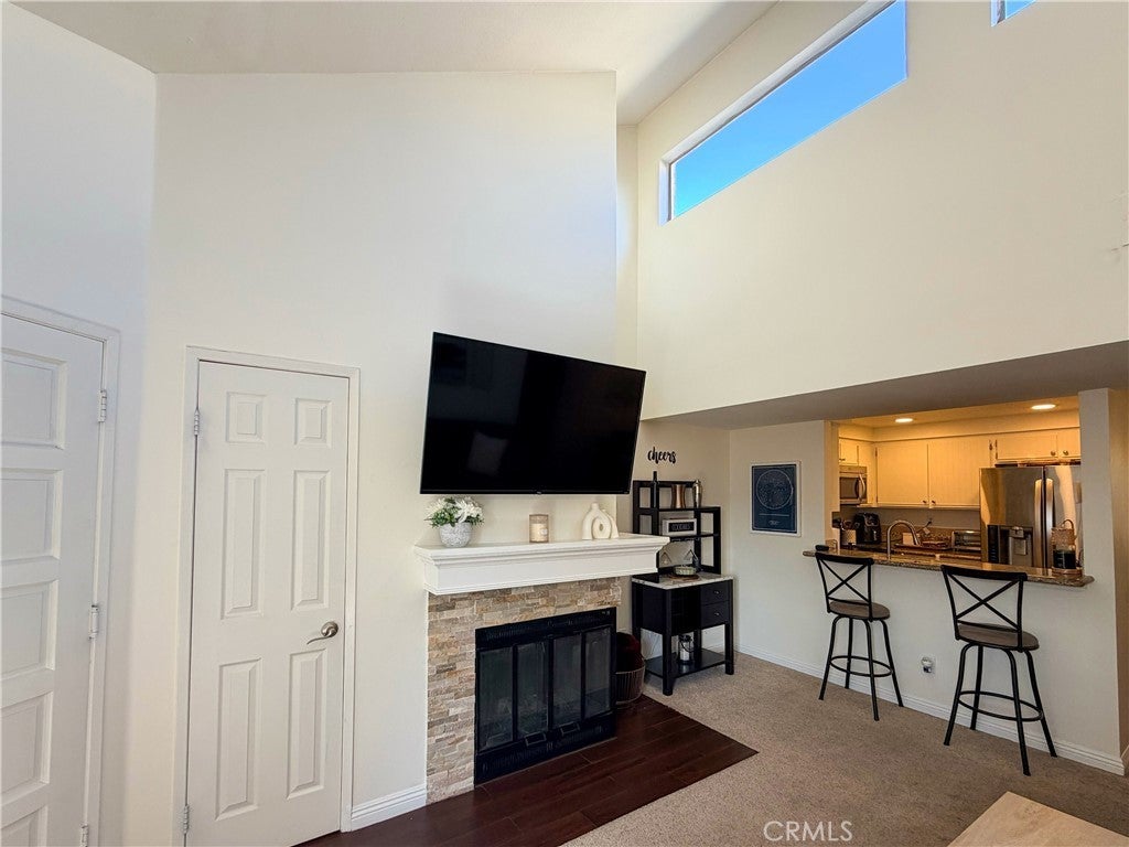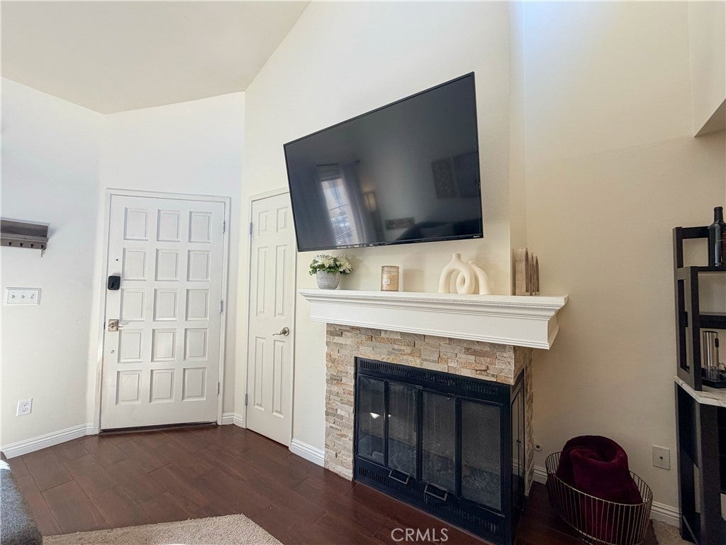 Premier location and move in ready! Charming 2-bedroom, 2-bathroom condo in a very desirable community located in the heart of Valencia. This upper unit provides a quiet atmosphere with enhanced privacy, abundant natural light and scenic views. Step into the spacious living room with vaulted ceilings, clerestory windows, stone-accented fireplace and elegant mantle that adds a cozy and elevated feel to the space. From the living room, access the unit’s own private balcony – perfect for BBQing and enjoying a relaxing morning coffee or afternoon sunset. The kitchen provides ample cabinet space, all stainless-steel appliances, upgraded granite countertops and a breakfast bar that flows into the dining room area. Unwind in the spacious master suite that features high ceilings and expansive windows that flood the space with natural light. Within the primary suite, you will find a luxurious vanity with dual sinks and upgraded countertops, a spacious walk-in closet and its own bathroom with step-in shower. The second bedroom offers a large closet with built-in organizer, extra overhead storage and views of the private balcony. The second bathroom has a shower/tub combo with plenty of cabinet space. All appliances come with the unit including a full-sized LG washer and dryer. The complex is conveniently located within walking distance of shopping, dining, scenic paseo trails, schools, parks, and Valencia Town Center. Close access to Henry Mayo Hospital, College of the Canyons, and nearby I-5 freeway. HOA fees include water, trash, beautifully maintained landscaping, and access to private pools and spas. No Mello Roos