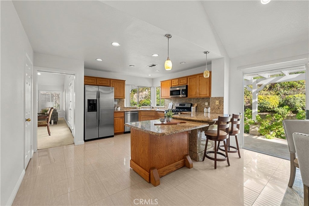 Welcome to this expanded single story home in Valencia Summit with more than 2,500 square feet of living space in one of Valencia’s most beloved neighborhoods.The floor plan offers all three bedrooms on the main level, including an expanded primary suite, along with a spacious second story addition that provides valuable extra square footage. The updated kitchen features abundant cabinetry, generous counter space, an island that can be moved, and a breakfast nook for casual meals. The formal dining opens to the main living area, allowing for easy day to day living and comfortable gatherings. The primary suite has been enlarged and includes a substantial walk in closet and an ensuite bathroom with a soaking tub, separate shower, and dual sinks. Two additional bedrooms are located downstairs, and with three bathrooms total, the home offers flexibility for guests and family. Upstairs, the oversized bonus room can serve as a game room, media space, office, gym, or combination of uses. One of the most unique elements of this home is a hidden room built into the second story. Discreet and unexpected, it has been used as a private office and would also make an ideal meditation space, study retreat, or creative hideaway. It is a special feature that adds character and function beyond the typical floor plan. French doors open to a wraparound patio and landscaped backyard designed for outdoor dining, entertaining, or simply enjoying time at home. Mature landscaping adds a sense of privacy and calm to the yard. Additional highlights include an indoor laundry room, a two car garage with a workshop area, a 220 volt outlet in the garage ideal for electric vehicle charging, and a whole house generator that provides added peace of mind during power outages. Valencia Summit is such a wonderful neighborhood. With a low HOA fee, the residents enjoy access to pools, tennis courts, pickleball, clubhouse facilities, and an extensive paseo system. The community is centrally located and provides convenient access to shopping, dining, parks, and freeway connections. All of this and no Mello Roos tax! Make an appointment to see this home today!