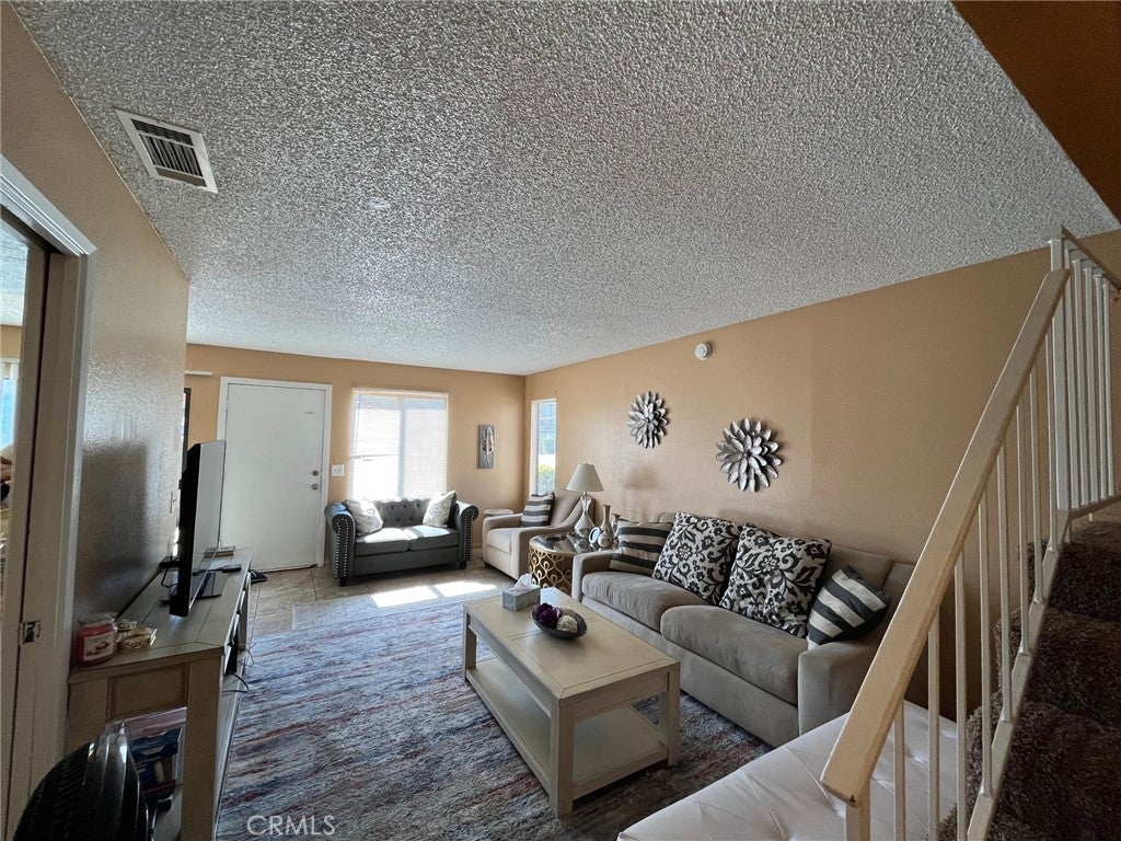 Beautiful & Bright 2 Bed & 1.5 Bath Corner unit. Open floor plan with tiled flooring throughout, kitchen equipped with refrigerator, dishwasher, eat-in bar along with an oversized living and dinning room with sliding door to front patio. Direct access to your 2-car attached garage with washer/dryer included. Upstairs are both bedrooms with beautiful breezes and a balcony off the main bedroom. Lots of sunshine, windows and closet space. Prime location. Welcome Home!