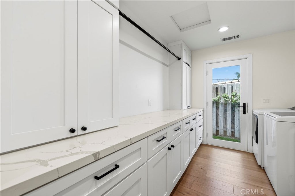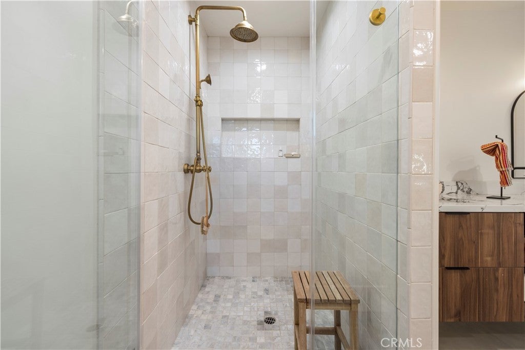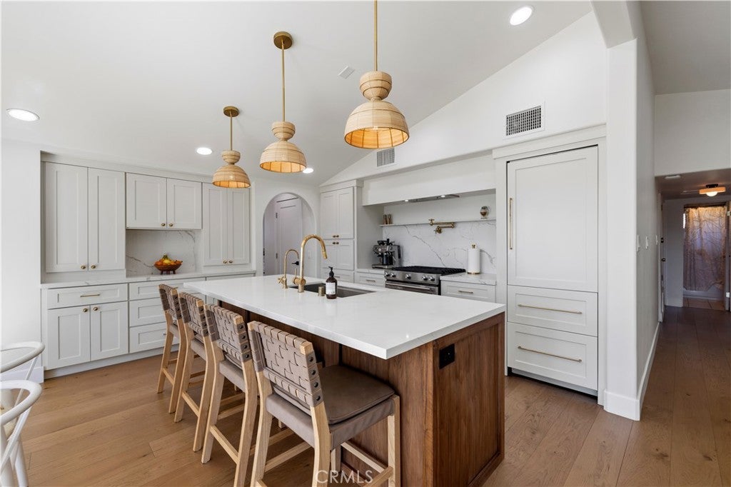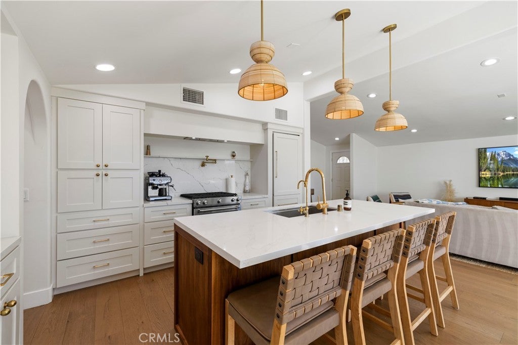 Welcome to one of the most charming streets in Santa Clarita, where the homes have character and this one clearly decided to show off. Set on a massive lot with RV parking large enough for a 40-foot RV or trailer, this property also features a nearly 1,000 sq ft permitted addition completed by a licensed contractor, creating a layout that now lives like dual primary suites. One of those primaries even offers its own separate access, opening the door for a potential income-producing setup, guest quarters, or multigenerational living. And the Santa Clarita jackpot… NO HOA and NO Mello Roos. Inside, the home has been completely reimagined with a design that feels like California Rancho meets Mid-Century cool. The massive kitchen opens directly to the living space and is anchored by white oak Italian flooring, a real walnut island, and stunning quartz countertops. The Sub-Zero refrigerator is custom paneled in wood, because even the fridge in this house understood the assignment. The home also features dual sliding doors that open wide to the backyard for true indoor-outdoor living, creating a seamless flow perfect for entertaining and enjoying the mountain views. The expanded primary suite is a retreat of its own, featuring vaulted ceilings, a large walk-in closet, and a spa-like bathroom with soaking tub and tiled shower. The layout allows excellent separation and privacy between the suites. The laundry room was added during the expansion and includes a large pantry, abundant storage, custom wood cabinetry, and designer paint. Major upgrades include all new electrical with upgraded panel and room for 220V, a new sewer line for the addition running to the street, wired indoor and outdoor speakers, and hardwired WiFi for TVs. The roof is only two years old, and the kitchen ceiling has been raised and vaulted, bringing incredible light and volume into the main living space. Additional details include reverse osmosis filtration through an antique lacquered brass faucet, a powered garage with electric door, breezeway access, and outdoor storage. The original primary suite also features an updated shower. The oversized lot offers endless possibilities. Outdoor water and gas lines are already in place for a future outdoor shower, fire pit, or entertaining space. Add a pool, host unforgettable gatherings, park the toys, or simply relax and enjoy the mountain views. Homes like this aren’t just updated… they’re completely reimagined.