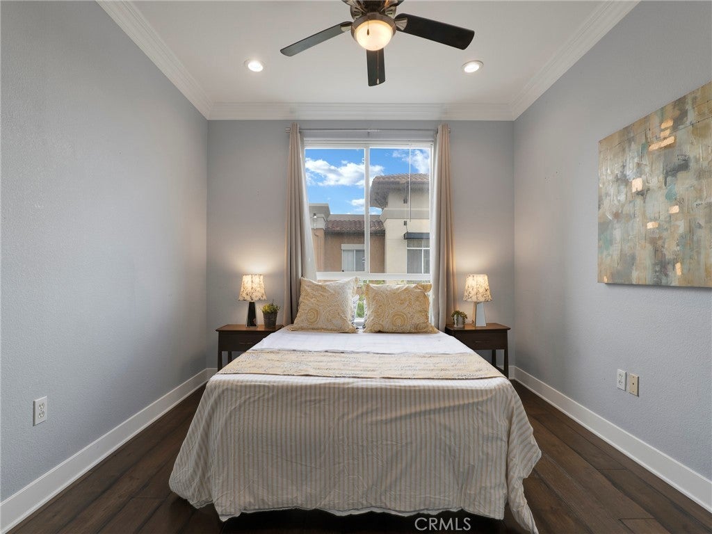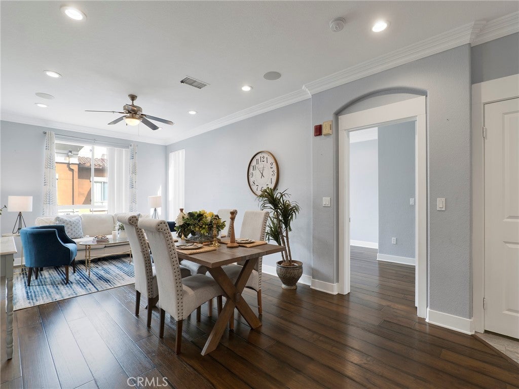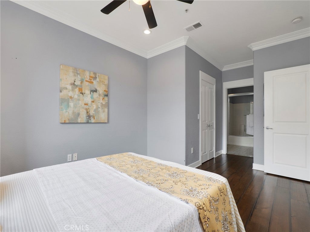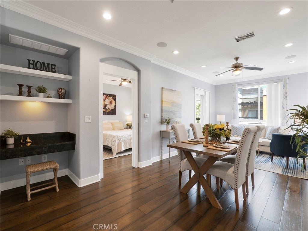 Welcome to this beautifully maintained 2-bedroom, 2-bathroom condo located in the heart of Valencia’s highly desirable Town Center community. This thoughtfully designed home offers an ideal layout with bedrooms on opposite wings, providing excellent privacy for residents or guests. Step inside to a warm and inviting living space where a well-appointed kitchen seamlessly flows into the living room—perfect for both everyday living and entertaining. The kitchen is designed for functionality and comfort, creating a welcoming hub of the home. Recessed lighting throughout enhances the bright, modern feel. Enjoy your own private outdoor patio—an ideal spot for morning coffee or evening relaxation. Additional highlights include two designated covered parking spaces conveniently located side-by-side. Situated just moments from premier shopping, dining, and entertainment, this location offers unbeatable convenience with easy access to both the 5 and 14 freeways. A fantastic opportunity to own in one of Santa Clarita’s most walkable and vibrant areas. FHA approved complex