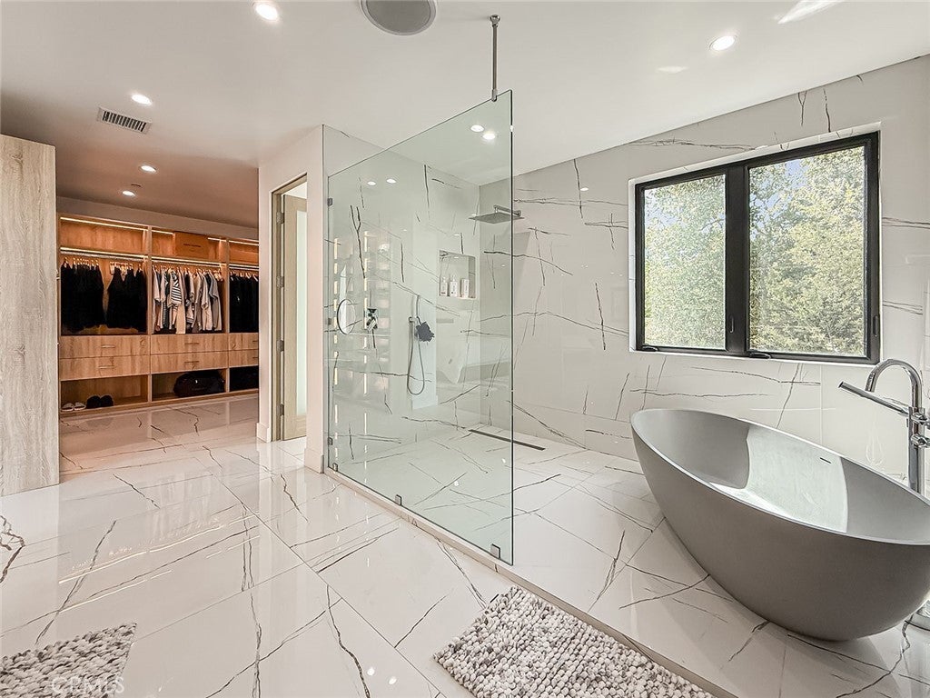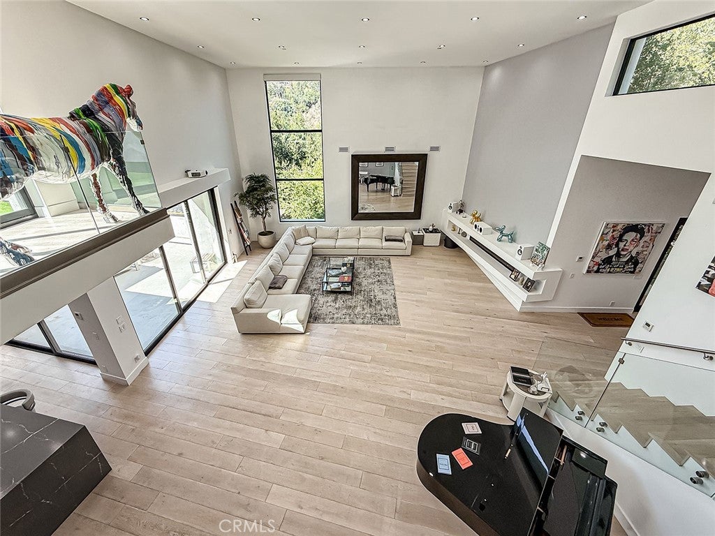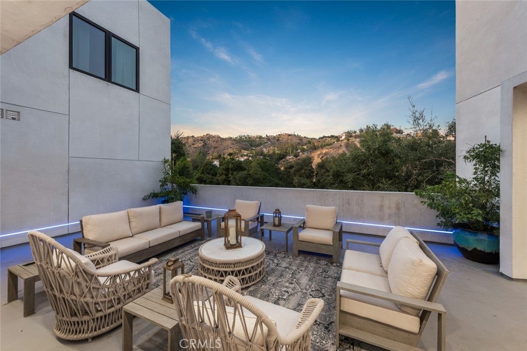 Located within the prestigious guard-gated community of Bell Canyon, this striking newer construction contemporary estate is defined by dramatic open living spaces, soaring ceilings, and seamless indoor-outdoor living. Set on approximately 3.37 acres, the residence spans roughly 6,300 square feet and offers six bedrooms and seven bathrooms surrounded by breathtaking canyon views. The main entrance opens directly to the central living level where expansive open-concept spaces create the heart of the home. The dramatic living room and chef’s kitchen feature oversized glass pocket doors that fully retract to a large outdoor patio, creating seamless indoor-outdoor living and an ideal setting for entertaining while capturing the beauty of the surrounding hillsides. The dining area includes an elegant wine cellar for display and storage. Above the living room, a dramatic mezzanine game lounge overlooks the great room below, adding both architectural interest and additional entertaining space. This level also features a laundry room and a private hallway leading to three spacious bedroom suites, each with its own bathroom. The home is equipped with integrated speakers throughout as well as a security system with cameras. Below the main living level is an oversized flexible space currently designed as a private gym, ideal for fitness, an office, guest suite, or additional bedroom with its own exterior access. Above the living level, the upper floor features the spacious primary suite with a private balcony capturing beautiful canyon views, along with another bedroom with its own bathroom. An elevator services all three interior floors. The rooftop level offers a spectacular private retreat with multiple lounge areas, turf, pool, and jacuzzi overlooking the surrounding hillsides and open canyon landscape. Residents of Bell Canyon enjoy 24-hour guard-gated security, a wealth of community amenities, including miles of hiking and horseback riding trails, tennis courts, pickleball courts, and a fitness center. Beyond the gates, the community is ideally located with easy access to shopping, dining, entertainment, and top-rated schools. And for those who love the coast, the beautiful beaches of Malibu are just a 30-minute drive away. Available furnished and also offered for sale.