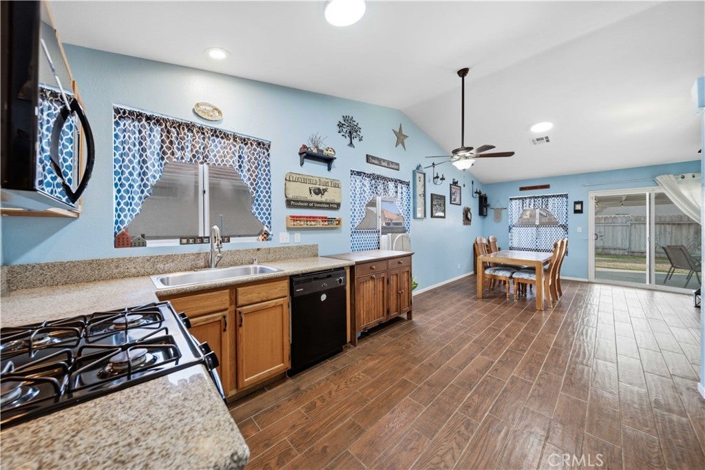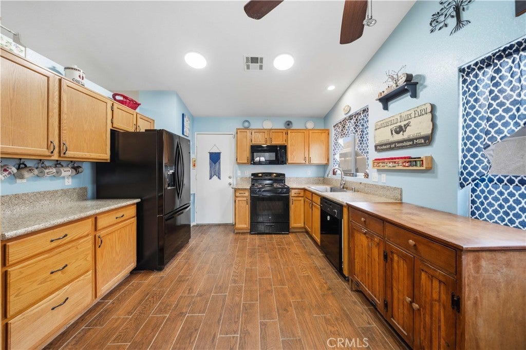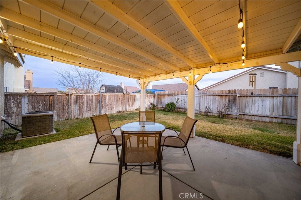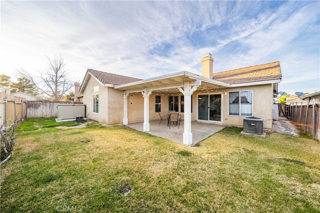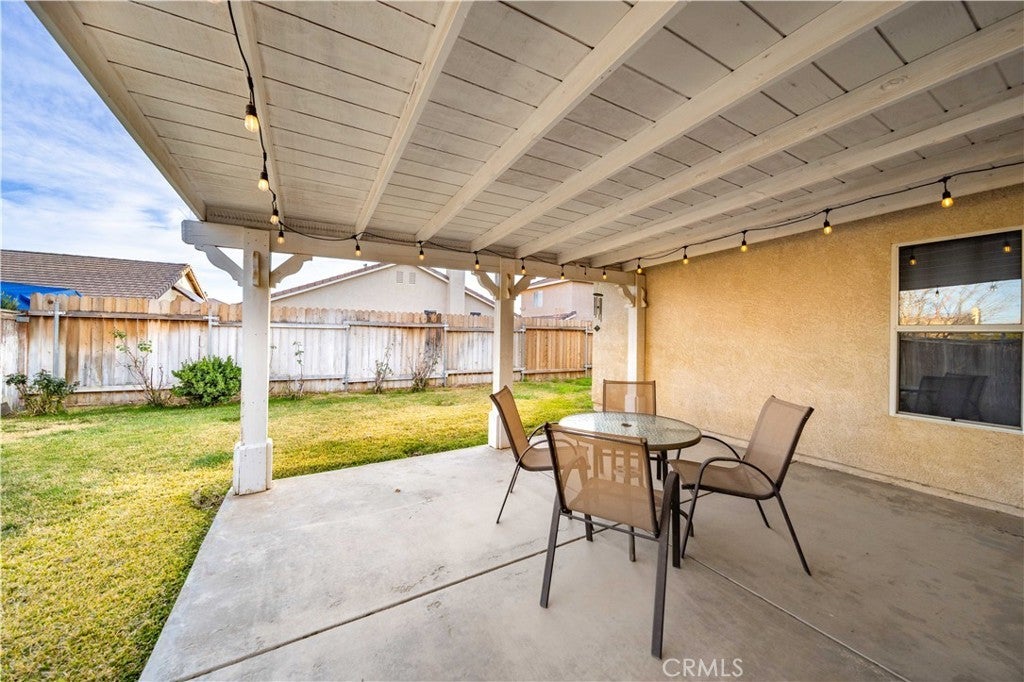 Beautiful single story home located in West Rosamond. This property has gorgeous curb appeal, featuring a landscaped front yard and a covered front porch. Inside you will find a spacious living room. The kitchen features black appliances, access to the garage and ample cabinet space. The dining room connects to the kitchen, which is perfect for entertaining. The dining room also features a fireplace and a sliding glass door leading to the rear yard. The primary bedroom is spacious, featuring double-door entry, a walk-in closet, and a regular closet, and an attached bathroom. The primary bathroom features a dual sink vanity and a beautiful tile shower. There are 3 additional bedrooms and a guest bathroom. The rear yard is landscaped with a covered patio. Lastly, there is a 2 car garage with a new insulated garage door, new opener & LED lighting. This house is a MUST see!