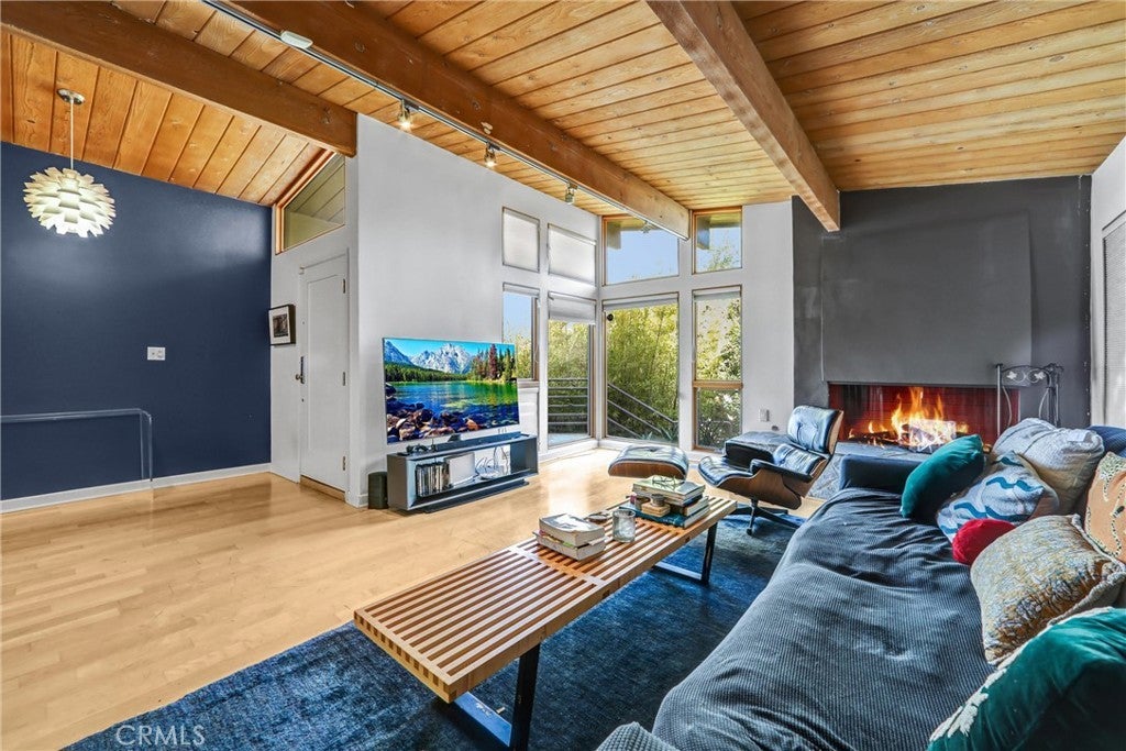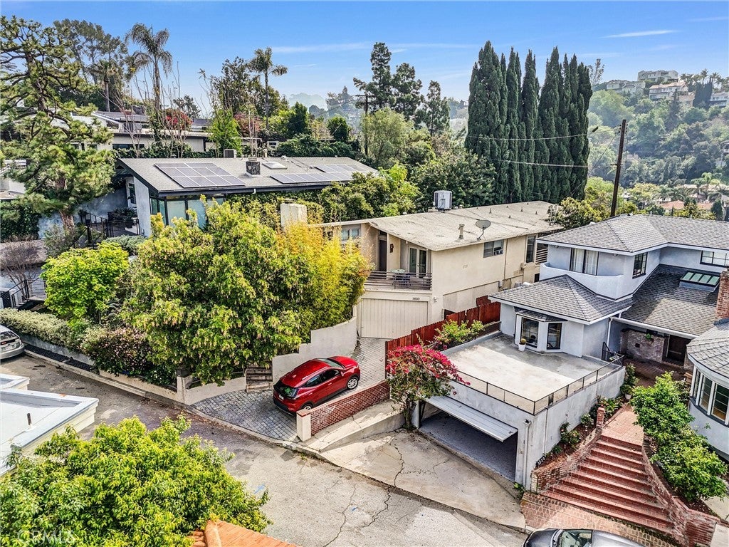 Here's your opportunity to live up in the hills of The Silver Triangle, one of the most coveted neighborhoods in Los Angeles and the valley. Stunning mountain and canyon views just off of Laurel Canyon. Welcome to this three bedroom, three bath home that features over 2250 square feet of living area. The terrific open flowing floorplan is an entertainer's delight. Step into this light and bright home with walls of glass...all natural openness! The recently redone gourmet kitchen features impeccable quartz counters, a five gas burner cooktop with Zephyr vented hood, KitchenAid oven and microwave, LG dishwasher, and designer self closing drawers and doors. Enjoy your breakfast or light meal on the bar separating the dining area. The spacious living room features vaulted wood beamed ceilings, a stone faced wood burning fireplace and flowing solid hardwood floors. Wow...those floor to ceiling windows with custom window treatments gives such great detailing. All bedrooms are on the main level and the primary features a great deck that opens and looks out to the Laurel Canyon...amazing. The lower level bonus/family/studio is really special with it's gorgeous stone tile flooring throughout. This great room steps out to the resort-like pebble-tec pool and space...gorgeous canyon views from here as well. There is a private bath and the laundry room is down there...could be a great guest suite as well. The HVAC is controlled by Nest settings. There is a private security system is in place. Tankless water heater. This home sits in the highly desired Carpenter Charter and Walter Reed School districts. Easy access into the studios and easy to get over to the westside. Minutes to the boulevard. Such a quiet and pristine neighborhood. Great opportunity to call this one home!