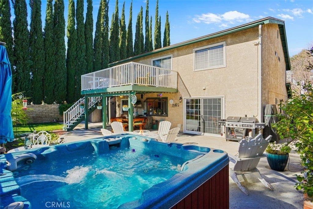 Panoramic View!!! Beautiful 4 bedroom 2.5 bath home located in the popular Citation Homes with low HOA and No Mello Roos.Pride of Ownership as you enter this turn key home to enjoy. The living room is open and spacious and has vaulted ceiling with a beautiful fireplace that accents the room. Formal dining area opens to living room which is perfect for entertaining.The kitchen is light and bright with upgraded cabinets granite countertops and appliances. The garden window brings in natural light as you enjoy the beautiful view. Surfs is up in the den off the kitchen. This is a great room for a game area or a sitting or tv room.The downstairs bathroom has a custom vanity with granite countertop and a beach theme . The laundry room area has direct access to the two car garage. The gracious upgraded staircase with rod iron decor takes you to the second level of this beautiful home. As you go up the stairs the first bedroom on the left is spacious with vaulted ceilings and has direct access out to a large spacious deck to enjoy the panoramic view. The deck is perfect for entertaining or lounging. The secondary bedrooms all have ceiling fans with fabulous views out the windows. The secondary newer full bathroom is upgraded with custom tile and stone inset with glass doors and upgraded vanity. The primary bedroom is spacious with a walk in closet and a new ceiling fan. The newer bathroom with custom tile and custom inset stone with a walk in shower and upgraded shower head and sliding barn door with opaque glass .The beautiful vanity has two sinks and new vanity mirror that lights up and has a heating element in it also. Home features wood laminate flooring and neutral carpeting, ring doorbell, nest thermostat, smart garage door opener, whole house fan. The back yard is a wonderful place to entertain with the gorgeous view and the covered patio has pull down shades on all sides and a ceiling fan with a flat screen tv to watch movies or games. The upstairs deck has a staircase down to the patio for all the entertaining you can use both up and downstairs for summertime fun! The spa is perfect to relax as you look up at the trees and enjoy the nice breeze and the sounds of the waterfall for a relaxing experience. There is a spacious side yard has 2 sheds for extra storage plus newer laminate gates. The home is in an HOA that offers basketball, tennis, and pickle ball courts plus a tot lot and park area. Home is near Central Park enjoy free summer concerts.