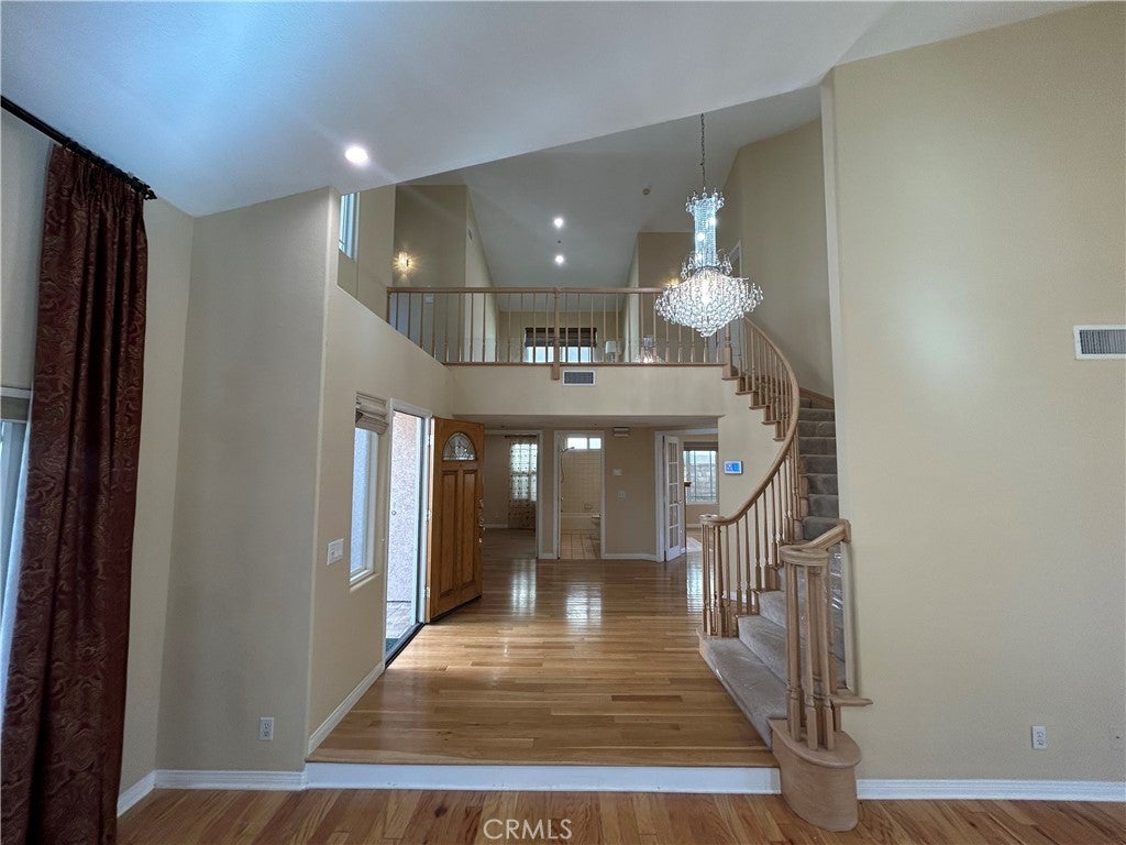 Located in the desirable Chateau Springs community of Agoura Hills, this Mediterranean-style two-story residence built in 1989 offers approximately 3,318 square feet of well-designed living space on a 6,616-square-foot lot, combining comfort, architectural character, and scenic surroundings. The home features four bedrooms and three bathrooms, including a convenient main-level bedroom ideal for guests, multigenerational living, or a private office. A spacious upstairs loft/bonus room with soaring ceilings provides flexible living space perfect for a media room, den, office, or additional family lounge. Inside, the home showcases newly refinished hardwood flooring complemented by elegant tile, while the upper level offers plush wall-to-wall carpeting. High ceilings, statement chandeliers, and French doors enhance the light-filled living areas, while a fireplace and wet bar create inviting spaces for relaxing and entertaining. The remodeled kitchen features granite countertops, a center island, and updated finishes, offering both style and functionality for everyday living and gatherings. A Samsung washer and dryer are also included for added convenience. Step outside to a private backyard retreat with a sparkling swimming pool, safety fencing, and an adjacent patio designed for outdoor entertaining. A balcony provides additional space to relax while enjoying mountain views. Additional highlights include a three-car garage with parking for up to six vehicles plus street parking, dual-zone air conditioning with two AC units, and a classic stucco Mediterranean exterior. Ideally situated near Forest Cove Park, shopping, dining, and within the award-winning Las Virgenes School District, this home offers an exceptional opportunity to enjoy the lifestyle and natural beauty that make Agoura Hills so sought after. Some Pets Ok. Tenant to verify all information including school enrollment eligibility. Welcome Home.