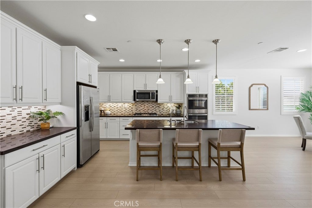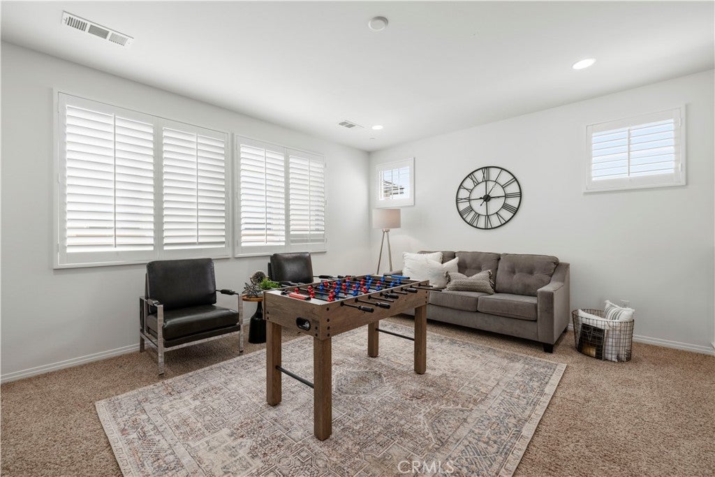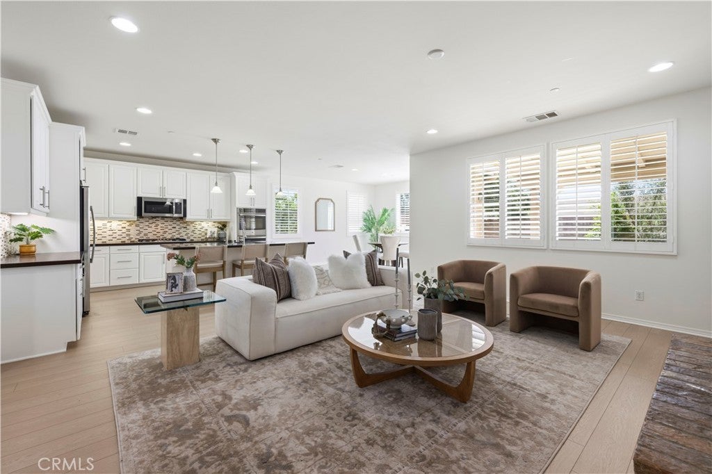 Experience the perfect blend of sustainability and style in this updated River Village residence. Boasting owned Tesla Solar and no Mello-Roos, this home offers a rare single-story living feel with an expansive, flexible layout. The interior shines with plenty of natural light, fresh paint, plantation shutters, and new luxury flooring. The heart of the home is an open-concept chef’s kitchen featuring an oversized center island flowing seamlessly into a family room with cozy fireplace and breakfast nook leading outside. The thoughtful floor plan places the primary suite and two additional bedrooms on the main level, creating an easy, accessible flow. The upstairs serves as a versatile retreat with an additional bedroom, full bathroom, large loft and bonus room—offer the ultimate setup for a home office, media room, or guest wing. Outside, the private backyard is ready for weekend gatherings with its built-in BBQ and shaded patio. Located in the highly desirable River Village community, which offers a beautiful pool, spa, clubhouse, and a large park. Conveniently situated near top-rated schools, shopping, dining and with easy access to both the 5 and 14 freeways. Don’t miss this fantastic opportunity!