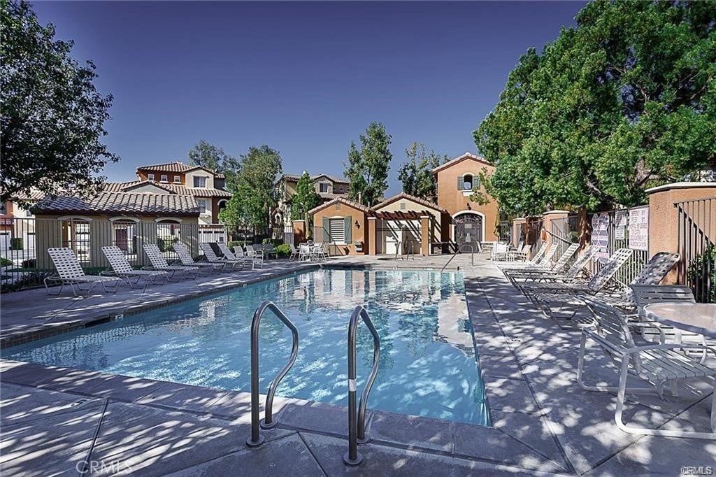 Enjoy elevated living in the highly desirable Valencia Village Walk community! Perfectly positioned in one of the most desirable locations in the complex. This beautifully upgraded 2-bedroom, 2.5-bath tri-level townhouse offers scenic views of the landscaped hillside with no front neighbors, creating a rare sense of privacy and tranquility. Step inside to a bright & inviting interior filled with natural light and tasteful upgrades, including travertine flooring, plush upgraded carpeting, mirrored wardrobes, and a spacious walk-in closet. The stylish gourmet kitchen features granite countertops, a full tile backsplash, stainless steel appliances, recessed lighting, elegant white cabinetry with decorative hardware, and a convenient breakfast bar—perfect for both everyday living and entertaining. The kitchen flows effortlessly into the dining and living areas, where large windows showcase lush greenery, and the welcoming living room features a raised hearth fireplace and sliding doors leading to your private patio. Ideal for relaxing evenings or weekend gatherings. A thoughtfully designed mid-level study nook with a built-in desk and cabinetry provides the perfect work-from-home space. Upstairs, both spacious bedrooms feature ceiling fans and private en-suite bathrooms with granite countertops, offering comfort and privacy for residents and guests alike. The upstairs laundry room adds everyday convenience. Additional highlights include direct access to a full-size two-car garage with extra storage space. Residents of Village Walk enjoy resort-style amenities, including a sparkling pool, relaxing spa, and direct access to scenic Paseo walking and biking trails. Ideally located just minutes from the I-5 freeway, award-winning schools, premier shopping, dining, and entertainment, this home offers the perfect blend of comfort, convenience, and lifestyle. Move-in ready and available soon—don’t miss the opportunity to live in one of Valencia’s most sought-after communities!