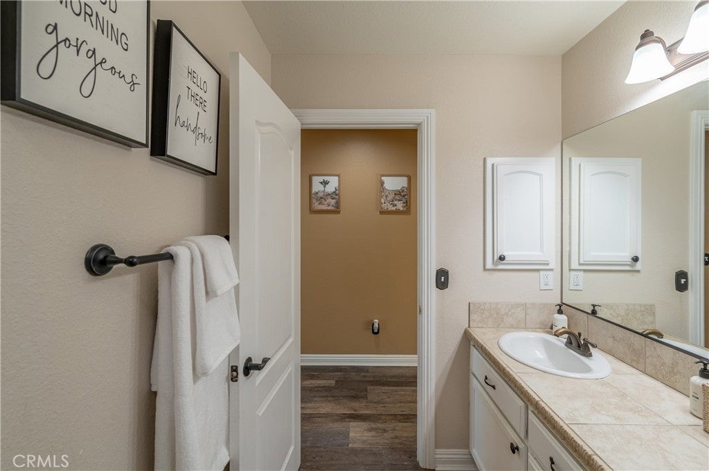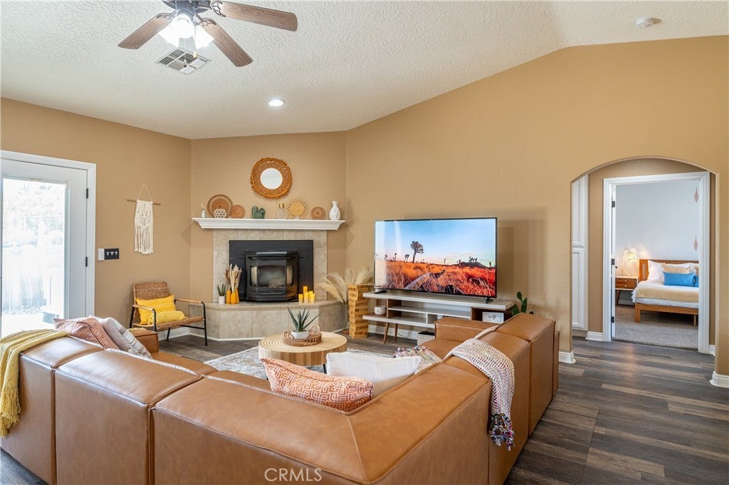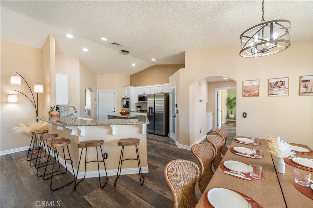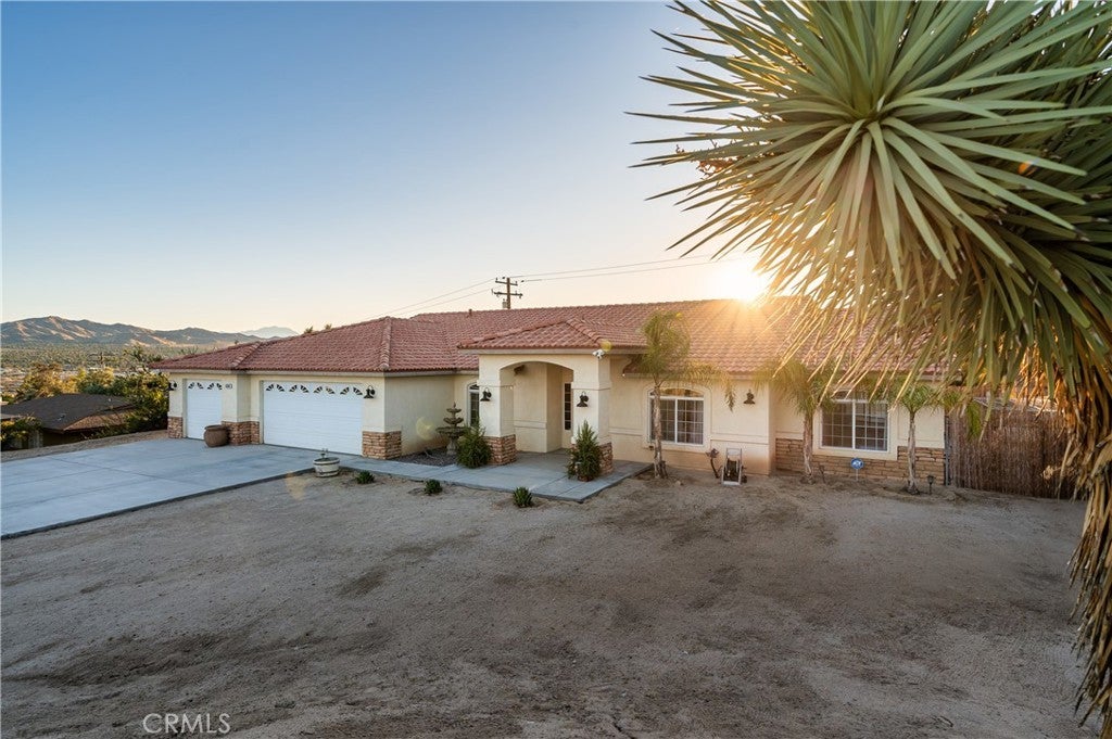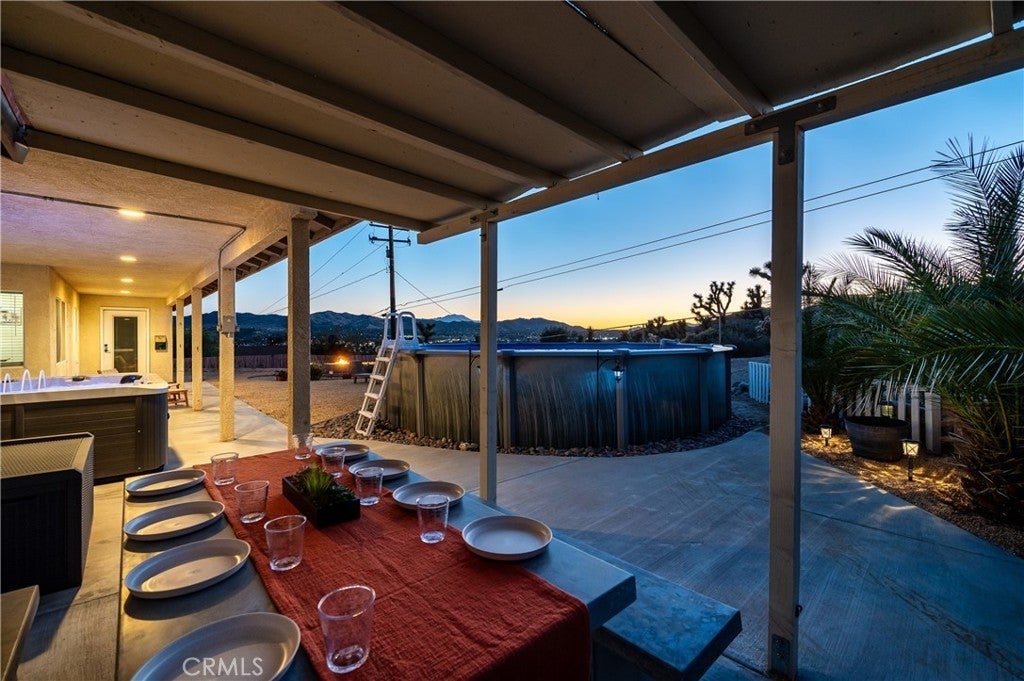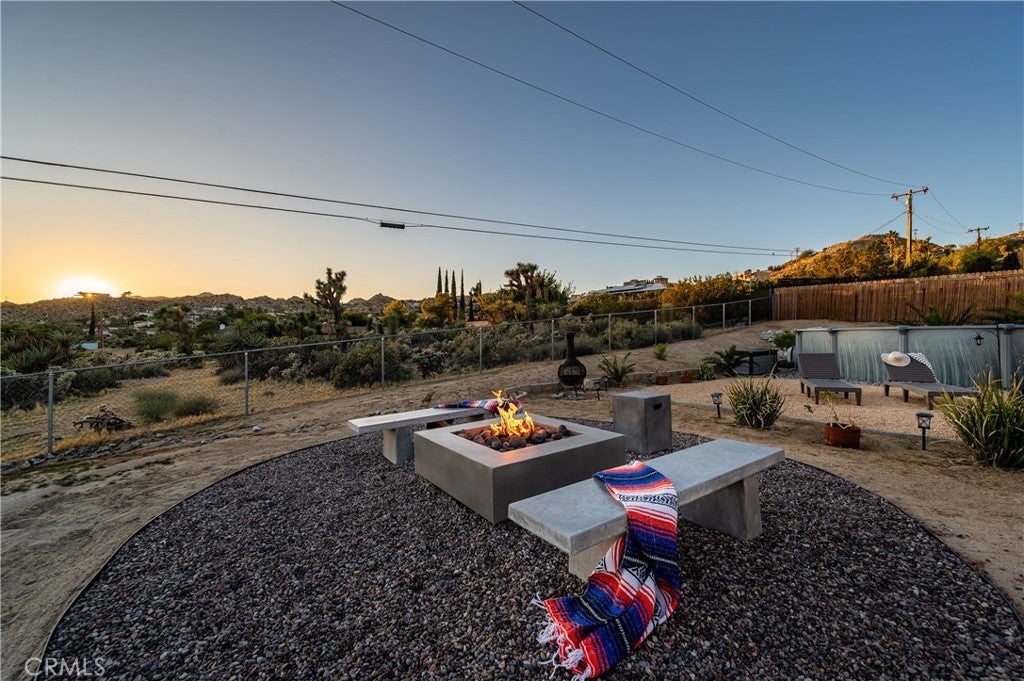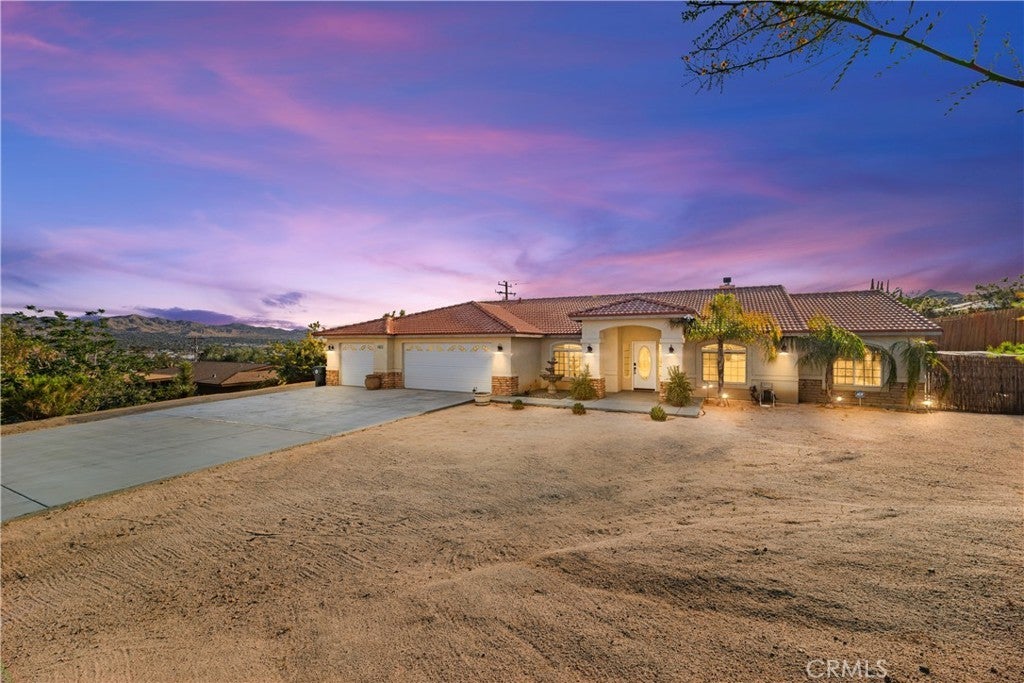 This beautifully updated home is located in the prime area and sits on a large lot. It offers stunning mountain views from the front yard and desert plants in the back creating a serene and picturesque atmosphere. The open floor plan allows for abundant natural light, while the recessed lights and combination of luxury vinyl and carpet add a touch of elegance and warmth throughout the home. The family room features a cozy fireplace. The updated kitchen boasts granite countertops and stainless-steel appliances (including a double oven), creating a sleek and modern look. The large master suite includes a walk-in closet, double vanity, shower, and soaking tub, providing a luxurious and relaxing space. Additionally, there are large guest rooms and a guest bathroom to accommodate visitors. The front yard is spacious and ideal for enjoying beautiful sunrise and stargazing. There is a covered patio and a spacious backyard, making it perfect for entertaining guests. The backyard offers the option for an above ground pool and hot tub, providing the perfect setting for relaxation and recreation. Sunsets from the backyard are beautiful. This home truly offers a combination of comfort, style, and stunning surroundings. For added convenience, the furnishings and houseware can be included in the sale if desired, making it a turn-key option for either a beautiful residence or a vacation rental.