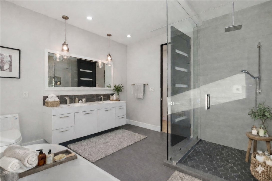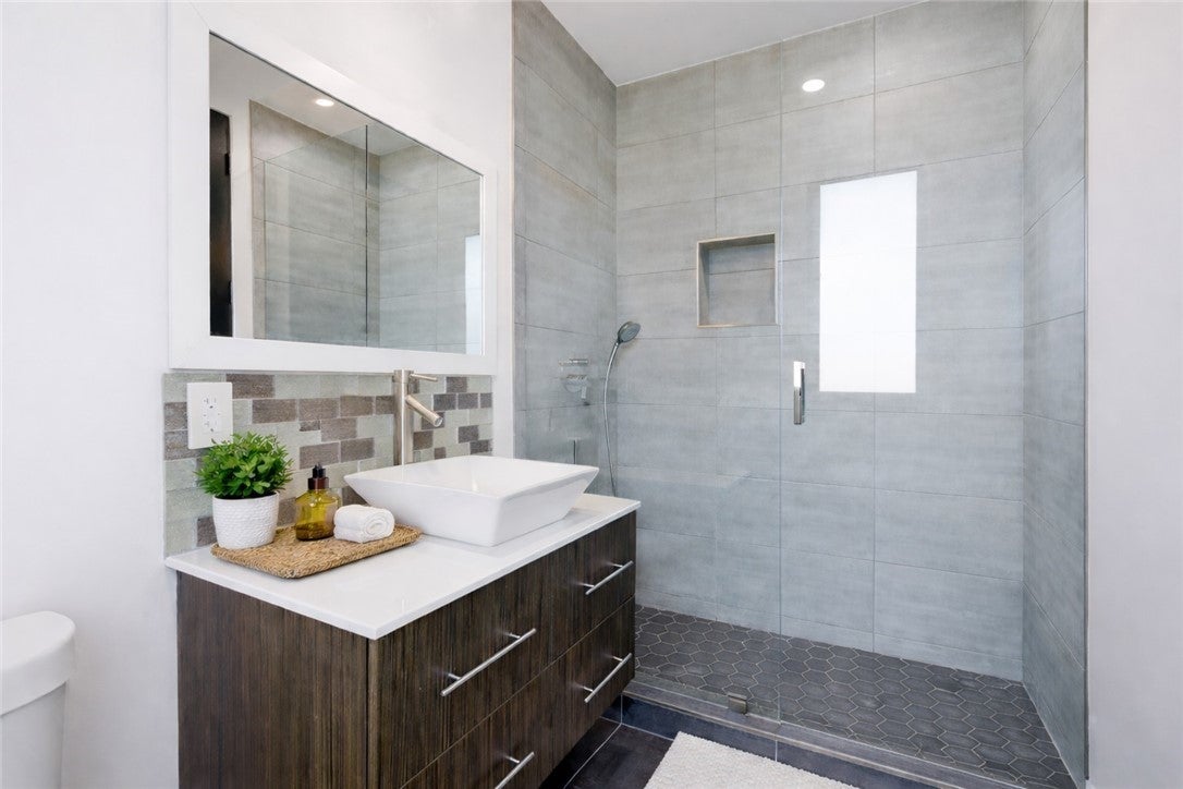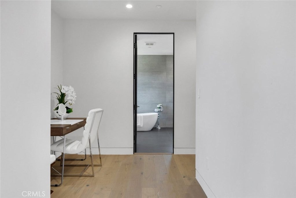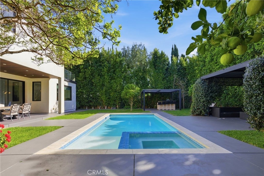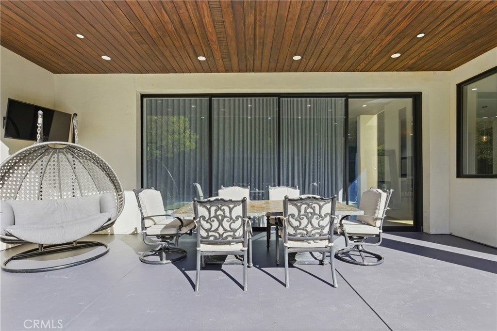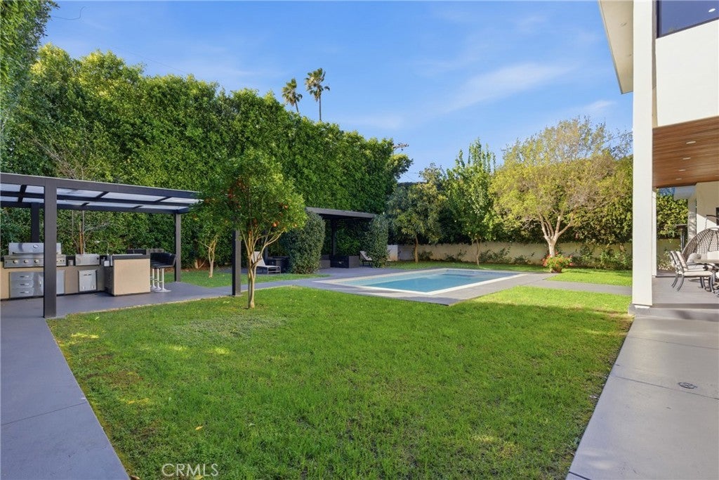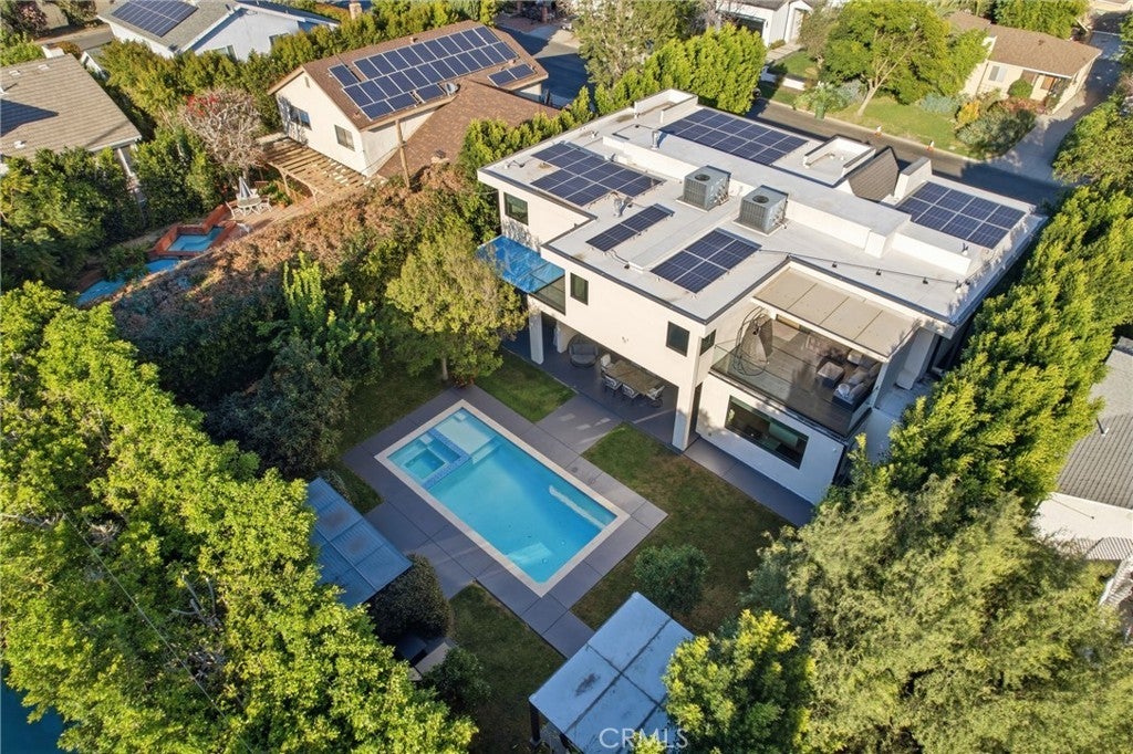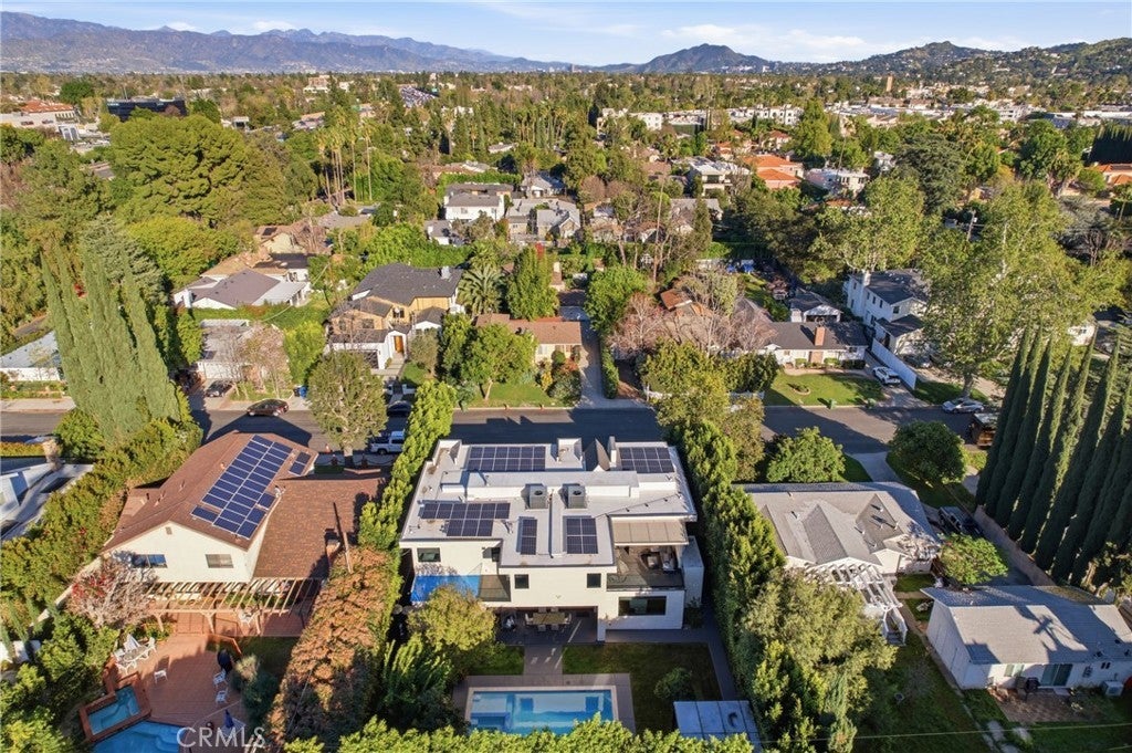 Welcome to a One-of-a-Kind Masterpiece in the Heart of Sherman Oaks. Situated on an impressive 10,580 sq.ft. lot, this exceptional residence offers 4,860 sq.ft. of beautifully designed living space with 6 bedrooms and 5.5 bathrooms. Built in 2019 with outstanding craftsmanship and meticulous attention to detail, the home features a seamless open-concept floor plan ideal for both everyday living and elegant entertaining. As you step inside, you are welcomed by soaring ceilings, a grand designer chandelier, and wide-plank oak flooring that flows throughout the home. Expansive windows fill the space with natural light and offer beautiful views of the resort-style backyard. The formal living room flows effortlessly into the dining area, creating a sophisticated space for hosting and gatherings. At the heart of the home is the chef’s gourmet kitchen, featuring top-of-the-line appliances, sleek quartz countertops, and a massive center island perfect for cooking and entertaining. Custom cabinetry provides ample storage, while a cleverly designed hidden walk-in pantry maintains the kitchen’s clean and elegant design. Adjacent to the kitchen is the spacious family room with a fireplace, creating a warm and inviting atmosphere. Beneath the staircase, a custom-designed wine cellar serves as a striking architectural feature, making a bold statement of luxury and lifestyle. The main level includes an en-suite bedroom ideal for guests or extended family, along with an additional flexible bedroom perfect for an office, media room, or gym, and a stylish hotel-inspired powder room. Upstairs, a spacious loft offers a versatile lounge and opens to a covered balcony. Each secondary bedroom features its own en-suite bathroom. The primary suite is a luxurious retreat with a fireplace, two walk-in closets, a makeup station, and a private balcony overlooking the backyard. The spa-inspired bathroom features dual vanities, a soaking tub, and a rain shower. The resort-style backyard is designed for entertaining and relaxation, featuring a sparkling pool & spa, covered patio for outdoor dining, cabana, outdoor kitchen with built-in BBQ,and surrounded by lush landscaping for privacy. Additional amenities: a solar system, indoor & outdoor speakers and security alarm. Located minutes from Ventura Blvd, Westfield Fashion mall, top-rated schools, upscale dining, and major freeways, this exceptional home offers the perfect blend of luxury living and prime Sherman Oaks location.