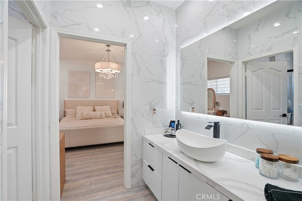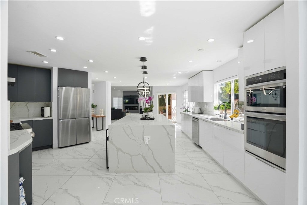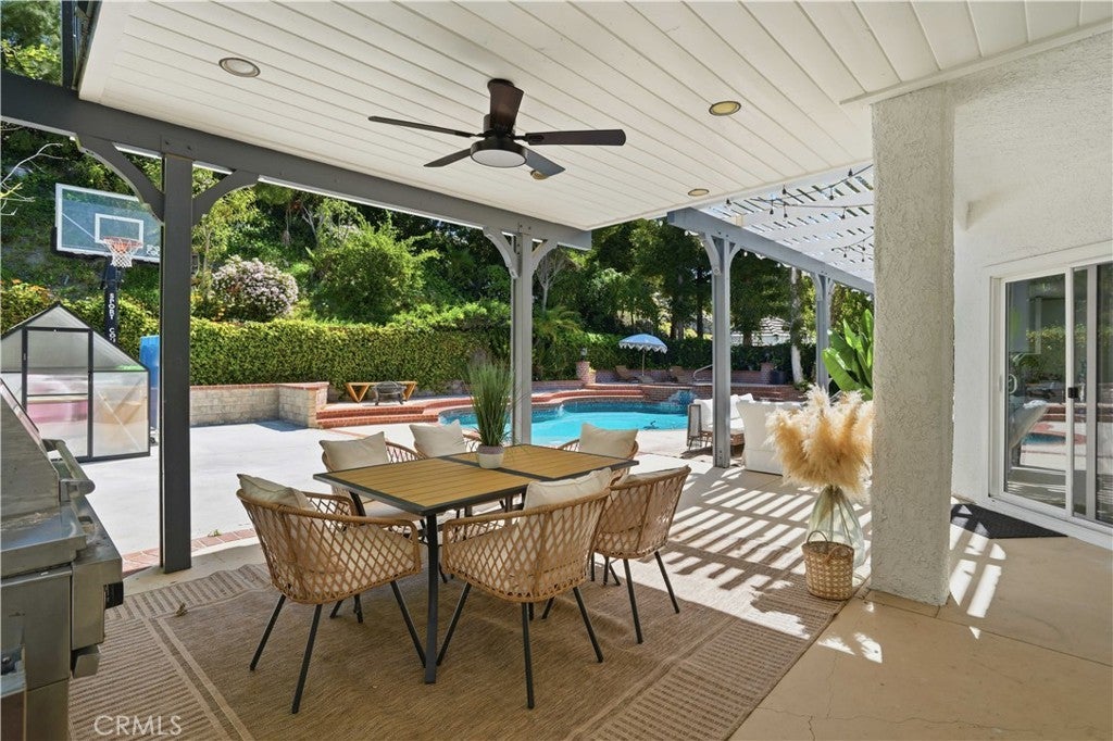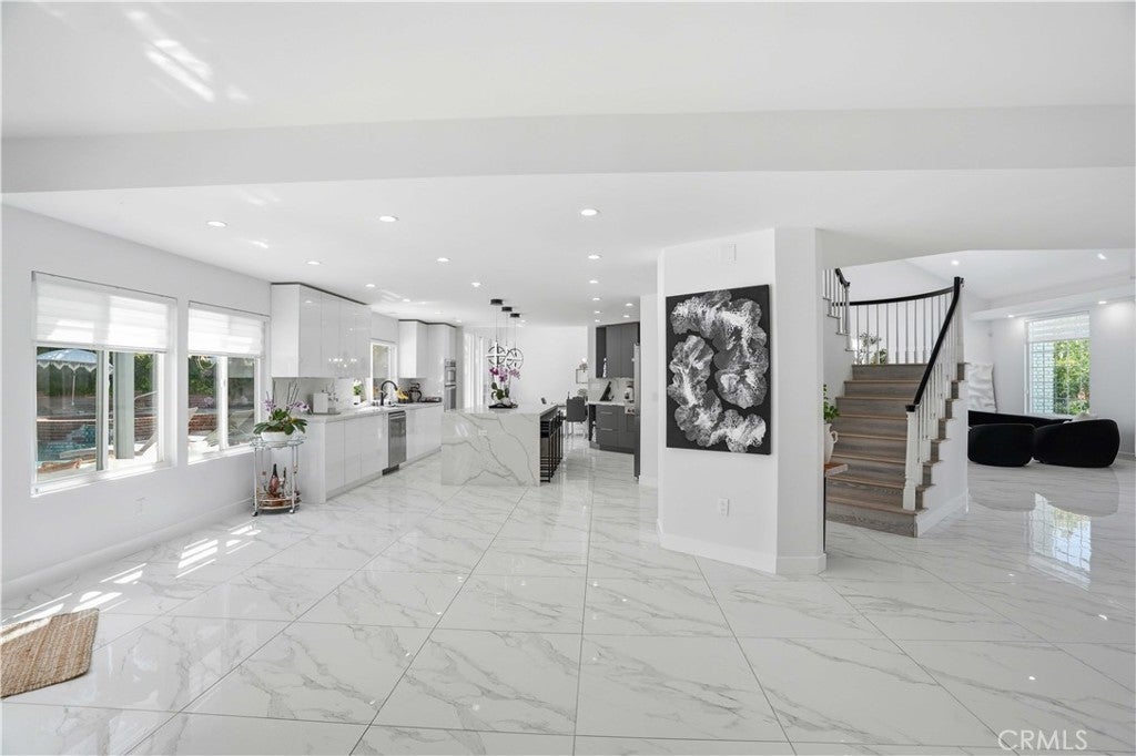 Prime West Hills remodeled estate located in the prestigious Stonegate community. This impressive 5-bedroom, 5-bathroom residence offers approximately 4,400 sq ft of elegant living space with a spacious and convenient floor plan designed for both comfort and entertaining. High vaulted ceilings and abundant natural light create a bright and welcoming atmosphere throughout the home. Custom-built closets throughout the home, including one room thoughtfully converted into a luxurious walk-in closet—easily reversible back into a bedroom. The home has been fully remodeled with a focus on luxury, comfort, and modern living. The expansive chef’s kitchen serves as the heart of the home, featuring a massive center island, walk-in pantry, breakfast area, and ample cabinetry, making it perfect for family gatherings and entertaining. Tile flooring downstairs and wood flooring upstairs add warmth and sophistication throughout the home. A grand staircase leads to the enormous primary suite, a true private retreat complete with its own sitting area and a large private balcony overlooking the backyard pool and spa. The luxurious primary suite offers the perfect space to relax and unwind, while spacious secondary bedrooms provide comfort and flexibility for family and guests. Additional highlights include recessed lighting, double-pane windows, vaulted ceilings, an elegant electric fireplace in the family room, abundant natural light, and Spacious 3-car garage offering ample storage and everyday convenience. this exceptional residence blends luxury with comfortable family living. Conveniently located near award-winning West Valley Charter Schools (K–12), Pierce College, and CSUN, and just minutes from premier shopping and dining at Westfield Topanga Mall, Topanga Social, The Village at Topanga, Topanga Promenade, and Calabasas Commons.