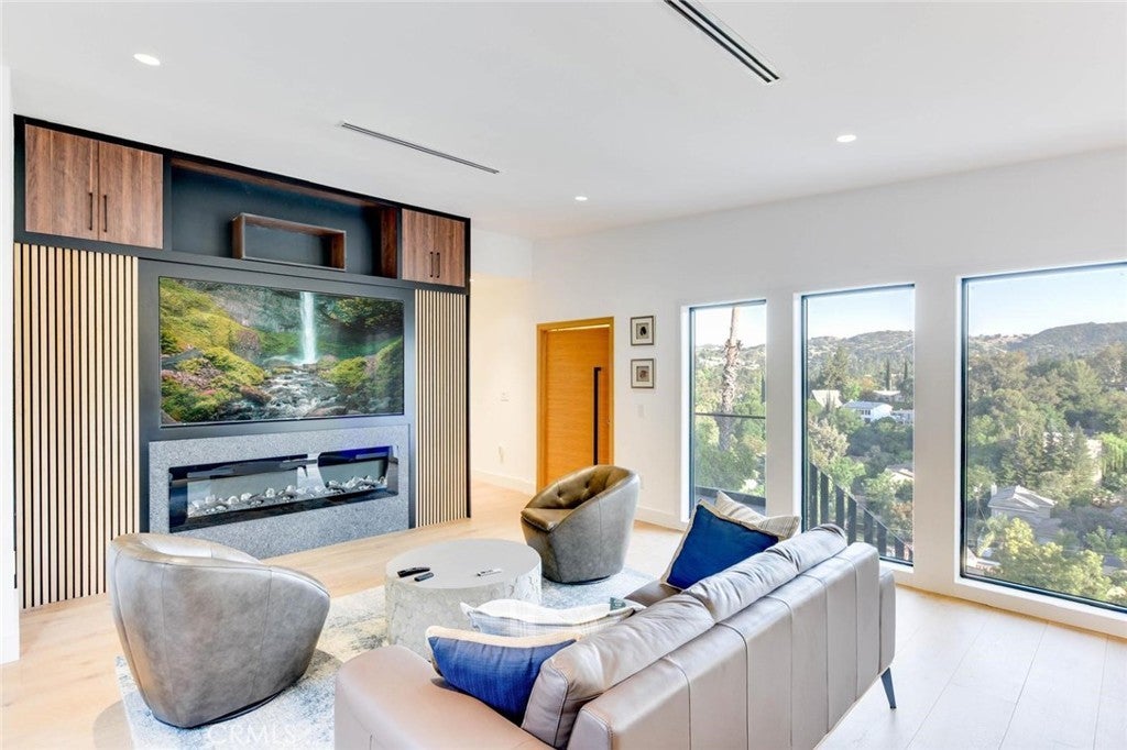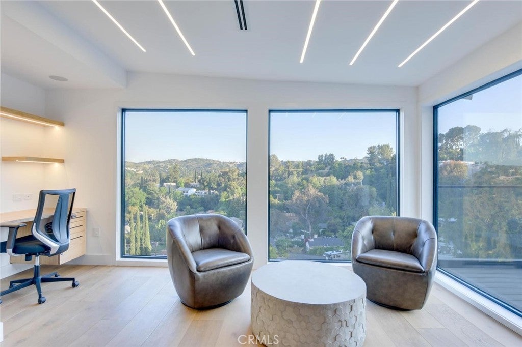 Welcome to your luxurious retreat in the prestigious hills of Woodland Hills, California. A spacious and fully furnished property boasting stunning views of the Santa Monica Mountains and conveniently located just south of Ventura Blvd., providing easy access to all that greater Los Angeles has to offer. Situated within a 1.5-mile radius of the 101 freeway, you can reach Hollywood and Downtown LA within 30 minutes, making it the perfect base for exploring the city. Additionally, you're only 5 minutes away from the upscale shopping and dining experiences at Westfield Topanga and The Village. As well as Iconic California beaches within a 20 minute or less drive. The multi-level smart home boats with it two separate living units. An upper unit containing two bedrooms, each with their own bathrooms and closets, along with a spacious living room, kitchen, office, as well as washing and drying. The lower-level unit boasts a guest suite complete with a kitchen, bathroom, and laundry machine. While both units are available, this specific listing pertains to the upper unit.