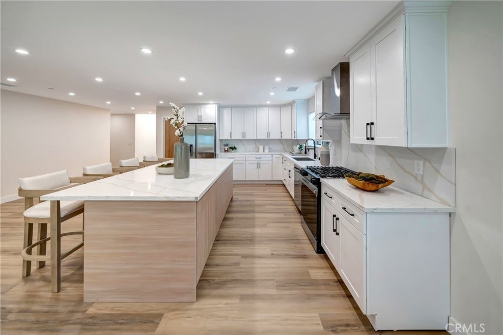Extensively remodeled and expanded with permits. Woodland Hills residence offering approximately 2,750 sq ft of living space, including about 1,600 sq ft of newly constructed addition. All remodels and additions were completed with permits. The property also features approximately 352 sq ft of permitted patio and porch space recognized by the City but not included in the MLS square footage. Open floor plan connecting the living, dining, and kitchen areas, ideal for modern living and entertaining. The kitchen features a large quartz island, custom cabinetry, stainless steel appliances, gas range, and contemporary finishes. The spacious 4-bedroom, 2.5-bathroom layout includes a primary suite with backyard access, a walk-in closet, and a spa-style bathroom with a walk-in shower. Additional bedrooms offer comfortable space and natural light. Major upgrades include new electrical system and panel, copper plumbing and gas lines, HVAC with new ducting, roof, insulation, drywall, stucco, windows and doors, fire sprinklers, and tankless water heater. Private backyard with covered patio and grassy yard. Located near Valley Circle Blvd and Vanowen St in a quiet residential neighborhood within a desirable school district, with convenient access to Warner Center, The Village at Westfield Topanga, Westfield Topanga Mall, parks, hiking trails, the 101 Freeway, and a short drive through Topanga Canyon to Malibu beaches. Certificate of Occupancy to be delivered.