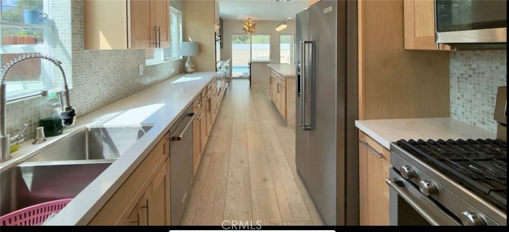 Welcome to this stunning home with permitted attached Junior ADU. Home features a very spacious living room, perfect for relaxing or entertaining. The completely remodeled kitchen is a chef's paradise, showcasing two large islands, a sleek bar area, and top of the line finishes throughout. Every bathroom has been thoughtfully upgraded with modern touches, offering comfort and style. Stackable washer-dryer located inside for your convenience. Step outside to a beautiful patio space complete with a refreshing swimming pool and a convenient outdoor shower perfect for rinsing off after a swim or enjoying a breezy open-air experience. The backyard also features a beautiful built-in BBQ area perfect for entertaining. The home offers a permitted attached junior ADU for potential rental income, or alternatively you can use the premises as a 3-bedroom and 3-bath home for your convenience. The property also offers a two-car attached garage with a private gated driveway. This home centrally located and offers easy access to shops, dining, and major freeways, making daily life so comfortable. Don't miss the opportunity to own this one-of-a-kind property where luxury meets lifestyle!