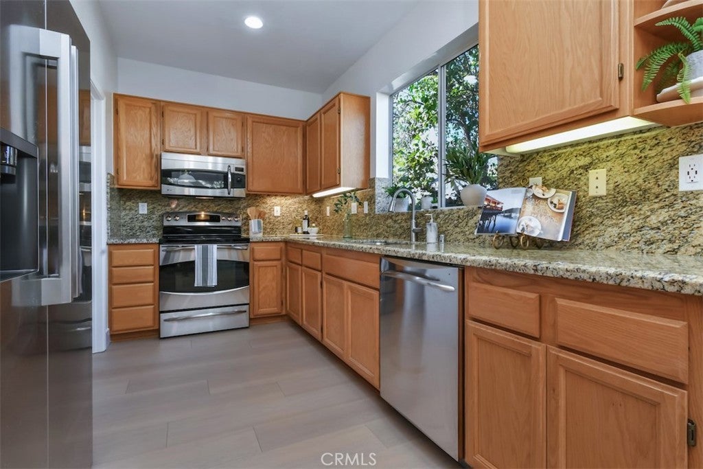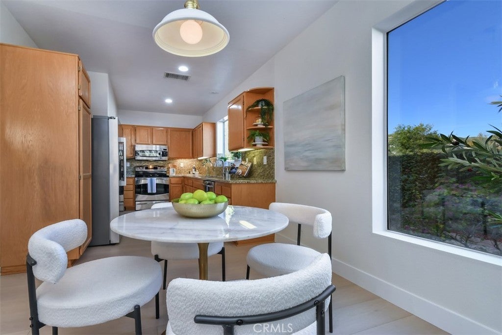 Located in the desirable Renaissance at Westlake gated community, this beautifully updated home offers comfort, privacy, and a wonderful neighborhood lifestyle. With only one neighboring property, the setting feels especially peaceful and private. The home has been thoughtfully refreshed with newer interior paint, light wide-plank luxury vinyl flooring downstairs, neutral carpet upstairs, wide baseboards throughout, a modern dining room chandelier, and refreshed landscaping that enhances the home’s welcoming curb appeal. Step inside to a bright and spacious living area filled with natural light, featuring a cozy fireplace with built-in cabinetry and a dining space that flows easily into the kitchen. The kitchen offers abundant cabinetry, a stainless refrigerator, and a charming breakfast nook where you can enjoy views of the outdoors. Upstairs, you’ll find three bedrooms with large closets and excellent storage. The backyard provides a tranquil outdoor retreat surrounded by lush greenery and attractive hardscape, with a patio perfect for relaxing, dining, or entertaining. Enjoy the convenience of nearby shops and restaurants, along with the community pool and spa just down the street. Residents also have direct access to Russell Ranch Park through the neighborhood. A wonderful opportunity to enjoy privacy, comfort, and the welcoming community of Renaissance at Westlake.