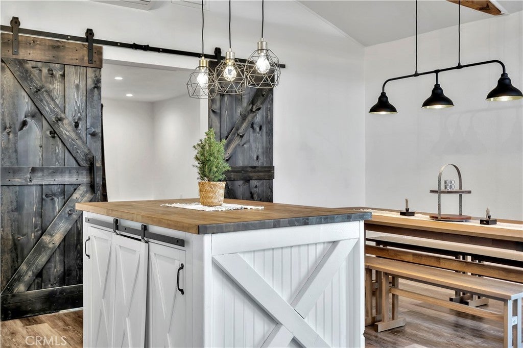 Beamed Ceilings, Breakfast Bar, Separate/Formal Dining Room, Eat-in Kitchen, High Ceilings, Open Floorplan, Recessed Lighting, Bedroom on Main Level