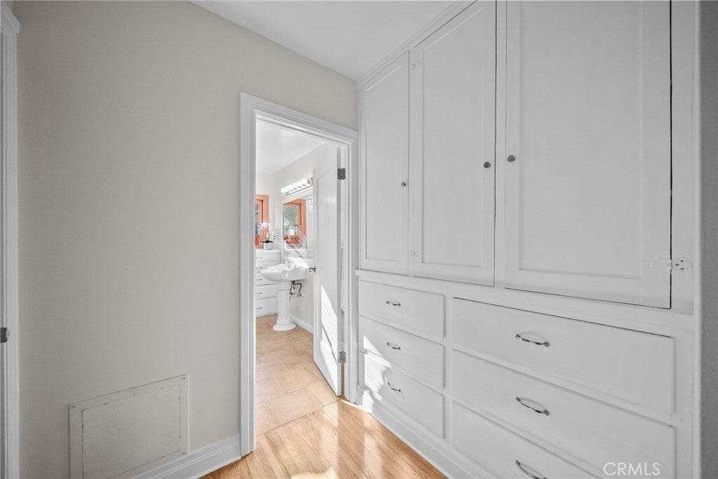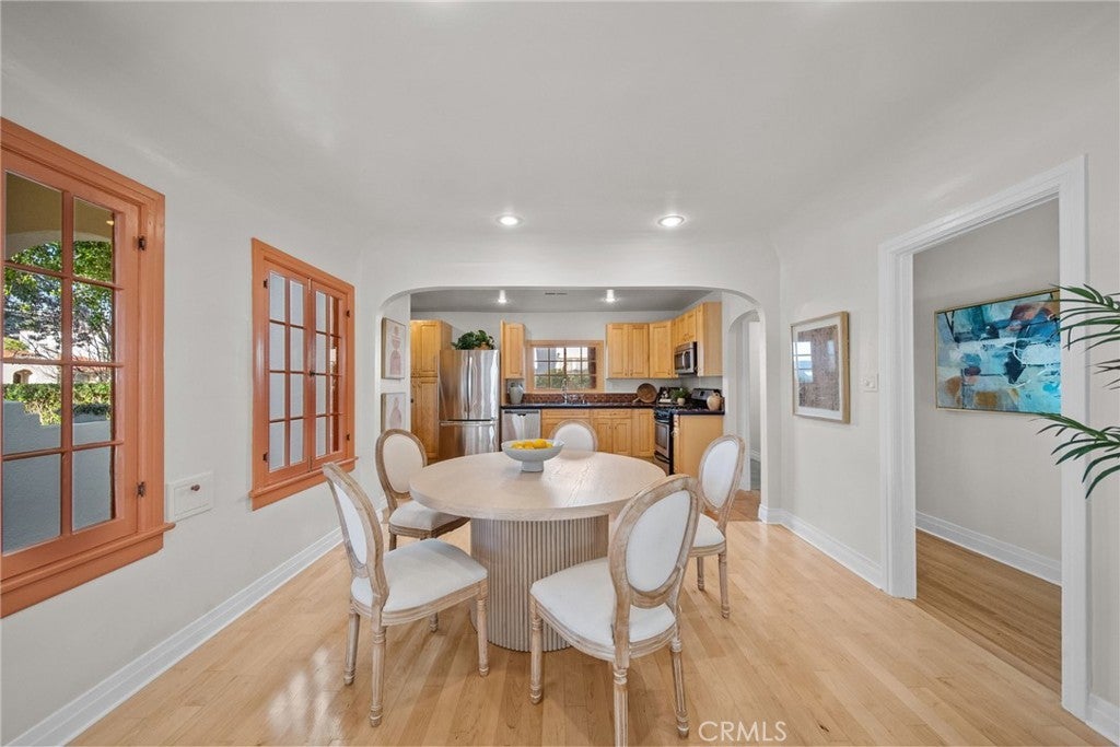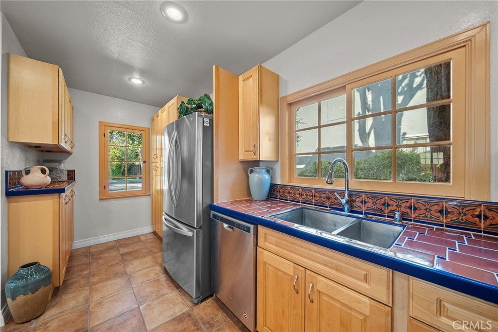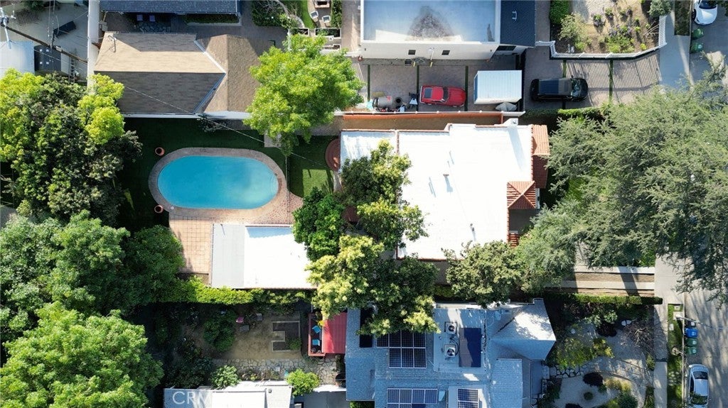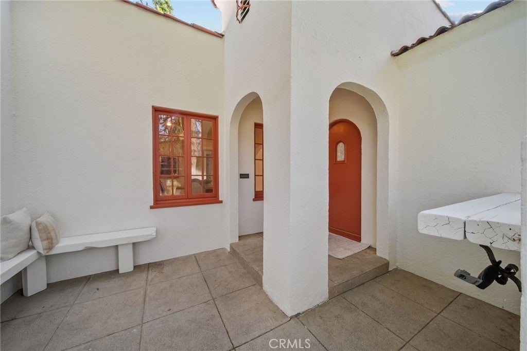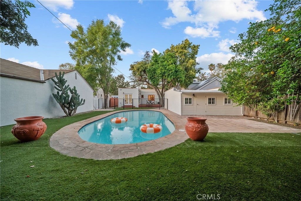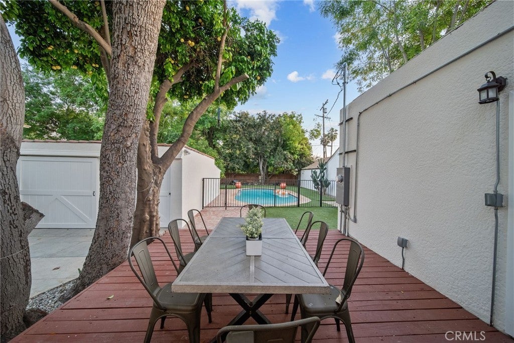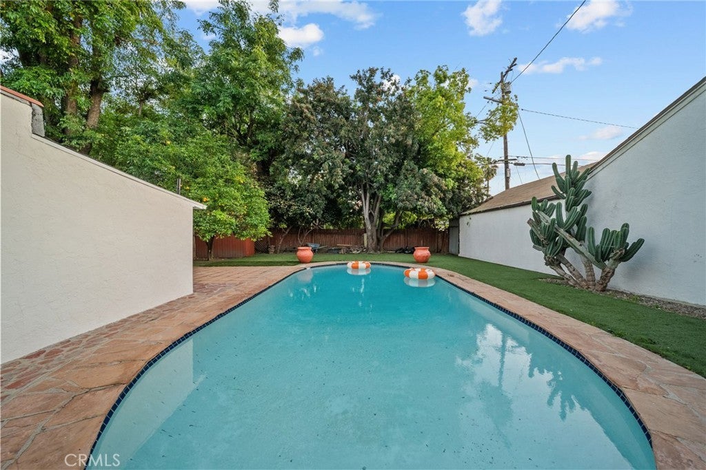 Nestled in the highly sought-after West Toluca Lake neighborhood, 11048 Blix Street is a magical 1920s Spanish residence filled with timeless charm and warmth. Set on an oversized lot of more than 8,000 square feet, the property offers rare space, privacy, and lush grounds in one of the Valley’s most desirable pockets. A welcoming front porch seating area invites slow mornings and evening conversations, while the home’s original mail slot and striking curved picture window immediately hint at the authentic character found throughout. Inside, original hardwood floors, intricate ornate wood-trimmed windows, and a beautiful Batchelder-style fireplace showcase craftsmanship rarely found today. Sunlight pours into the living spaces, creating a bright, uplifting atmosphere that gives the home its truly magical feel. The kitchen features classic tile countertops and stainless steel appliances, blending vintage charm with everyday functionality. The primary suite provides a comfortable retreat, and the thoughtful layout allows natural light to flow gracefully through nearly every room. Step outside to an enchanting backyard that feels like a private garden oasis. Surrounded by mature trees, avocado and citrus trees, sculptural cacti, and lush landscaping, the grounds capture the beauty of classic California living. A rear deck off the home is perfect for entertaining, whether hosting dinner under the trees or enjoying relaxed evenings outdoors, while the pool invites refreshing afternoons in the sun. The detached garage includes a bonus room at the rear with a toilet and sink, offering flexible space for a studio, creative workspace, or future possibilities. Lovingly maintained and rich with original character, 11048 Blix Street is a rare opportunity to own a vintage Spanish home in one of the most coveted neighborhoods—where charm, history, and a truly special sense of place come together.